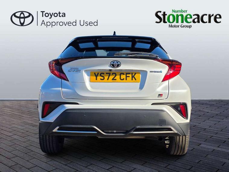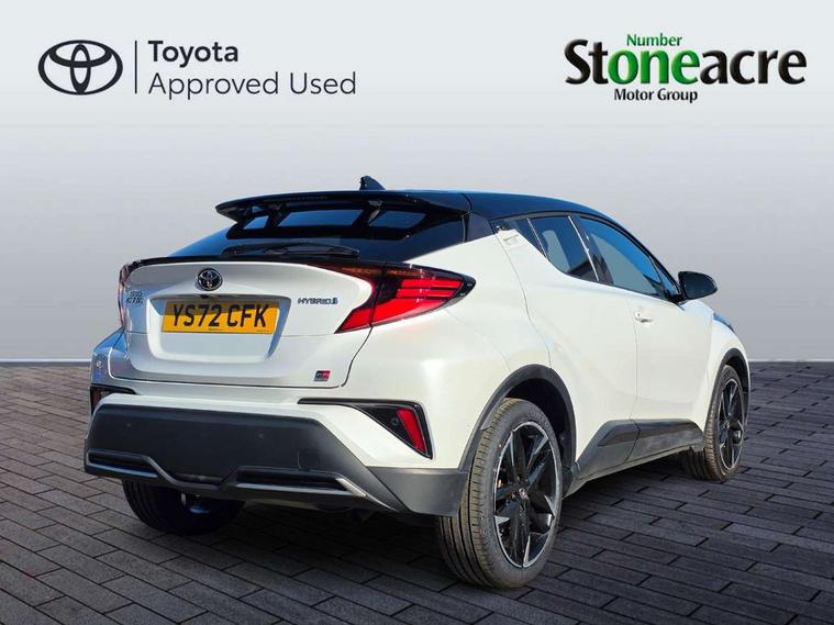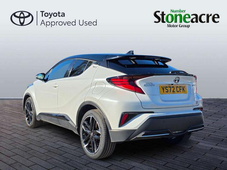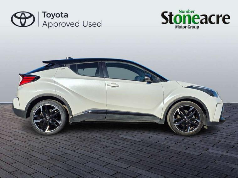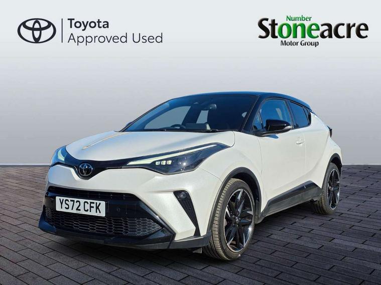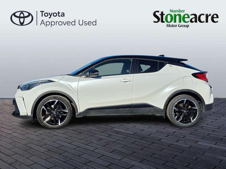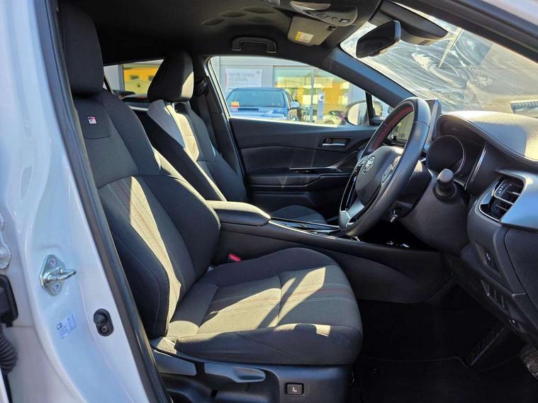 4.2" coloured TFT screen for multi-information display, Adaptive cruise control, Apple car play and Android auto, Bluetooth connectivity, E-call, Electric power steering, Hybrid system indicator, Lane departure alert with steering control, Lane trace assist, Push button tailgate release, Remote boot door release in cabin, Remote boot door release in key, Reversing camera, Road sign assist - RSA, Simple Intelligent parking assist, Smart voice assist, Touch 2 Go navigation system, Trip computer, Voice recognition, Wireless smartphone integration, Vehicle Stability Control (VSC), 6 speakers, AM/FM radio, DAB Radio (Digital Audio Broadcasting), Toyota touch 2 multimedia system with 8" display, USB connector, Wi-fi connectivity, Adaptive front light system, Adaptive LED Headlights, Anti-jam protection on power windows, Auto high beam, Auto up and down function on all power windows, Automatic headlight levelling, Automatic headlights, Automatic headlights cut-off, Black and body coloured rear bumper, Black upper front grille, Body colour door handles, Body colour door mirrors, Body coloured front bumper, Boot door release with push button, Chrome front lower bumper, Electric heated door mirrors, Follow me home headlights, Front and rear power windows, Front spoiler lip in black, Headlight cut off reminder, Honeycomb lower front grille, LED daytime running lights, LED fog lights, LED front light guide, LED High mounted stop light, LED rear brake lights, LED rear combination lights, Noise reduction layer on front windows and windscreen, Power adjustable door mirrors, Privacy glass, Rain sensor, Rear sequential indicators, Rear side wing doors, Rear spoiler, Rear tailgate, Rear window defogger, Rear window wiper, Shark fin antenna, UV-filter on driver and passenger windows, UV-filter on rear windows, Variable front intermittent wipers, 12v power outlet - front, 3 rear headrests, 3 seat bench in 2nd row, 3 spoke perforated leather steering wheel, 60/40 split folding 2nd row rear seats, Adjustable rear headrests, Adjustable speed limiter switch on steering wheel, Assist grips front and centre pillar, Audio and telephone switches on steering wheel, Black front door assist grips, Blue ambient lighting on front cup holders, Blue ambient lighting on front doors, Boot light, Chrome interior door handles, Cloth upholstery, Driver and front passenger personal light, Driver and front passenger Whiplash Injury Lessening seats, Driver and passenger seatback pockets, Dual zone automatic air conditioning, Floor mats, Front cupholders, Front head restraints, Front sports seats, Glovebox with internal light, Hard tonneau cover, Heated driver and front passenger seats, Hooks for luggage holding net, Humidifying Nanoe air purifier, Illuminated entry system, Isofix attachments on outer rear seats, Leather gearshift, Light on driver sun visor, Light on passenger sun visor, Manual telescopic steering wheel, Manual tilt steering wheel, Manually height adjustable driver seat, Manually height adjustable front passenger seat, Manually reclining driver seat, Manually reclining front passenger seat, Manually sliding driver seat, Manually sliding front passenger seat, Microphone on front personal light, Mirror on driver sun visor, Mirror on passenger sun visor, Multimedia switches on steering wheel, Pollen filter, Power adjustable lumbar support on driver seat, Shopping bag hooks, Single front passenger seat, Slow opening on lower glovebox, Voice recognition switch on steering wheel, Tech with parking sensor pack - C-HR, 16 Disk front wheel brake, 3x3 point rear seatbelts, ABS+EBD+Brake assist, Electronic parking brake, Front and rear seatbelt reminder, Front passenger airbag on/off switch, Hill start assist control (HAC), Pre collision system with pedestrian detection, Pre-tensioners and force limiters, Rear door child safety locks, SRS Airbags - Driver + Front passenger, front side, front and rear curtain and driver's knee airbags, Toyota safety sense, Tyre pressure monitoring system, Tyre pressure warning system, Acoustic vehicle alert system (AVAS), Glass-breaking alarm sensors, Immobiliser, Intrusion alarm, Intrusion sensor, Motion sensor alarm, Power door locks, Power passenger window lock, Remote central locking, Black lower dashboard, Black upper dashboard, Piano black console, Silver deco line on upper dashboard, 19" Black machined alloy wheels, Tyre repair kit,