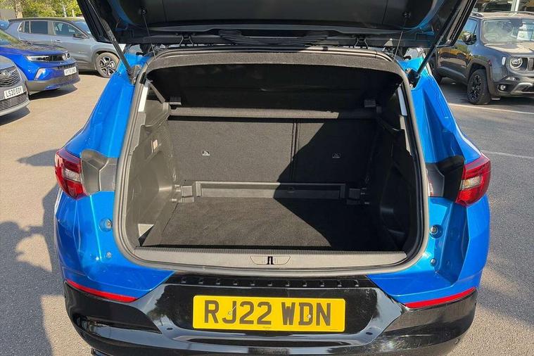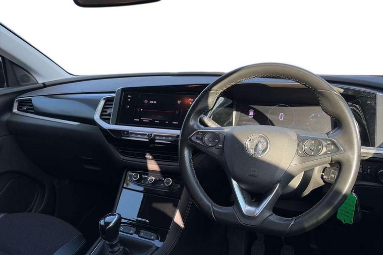 12" colour digital cluster, 180 degree rear view camera, Central facia display with digital clock, outside air temperature and audio information, Cruise control with speed limiter, Digital fuel gauge with low fuel level warning light, Digital rev counter, Digital speedometer, Digital water temperature gauge with warning light, Driver drowsiness alert system, Driver information - Total mileage, service indicator, oil life, Gearshift up/down indication light, Lane departure warning system, Lane keep assist, Lights on audible warning, Multi function trip computer - Trip odometer, vehicle range, average speed and fuel economy, instantaneous fuel economy and driving time, Multimedia navi pro with 10" colour touch+ sat nav+AM/FM/DAB radio, bluetooth audio streaming/mobile phone portal, Apple carplay/Android auto, USB, Speed sensitive electric power assisted steering, Speed sign recognition, Vauxhall connect including Ecall and connected services, Six speaker - four front + two rear, Steering wheel mounted audio/phone/cruise controls, 3rd brake light, Automatic lighting control, Automatically dimming anti dazzle rear view mirror, Black door mirrors, Black side window trim, Body colour door handles, Carbon black door claddings, Collapsible windscreen wipers, Dark tinted rear side and tailgate windows, Door mirror puddle light, Door to door illumination, Electrically adjustable and heated power door mirrors (wide-angle on drivers side) with automatic timed cut-off, Electrically operated front and rear windows with safety auto reverse and one touch up/down facility, Front/rear bumper and wheel arches in carbon black exterior color, GRANDLAND Carline name badge in - High gloss black, Hazard warning lights, Heated rear screen with timed cut off, High beam assist, High gloss black protective front and rear skid plates with C shape bumper inserts, High gloss black roof rails, High level centre rear brake light, Intermittent rear window wash/wipe, LED daytime running lights, LED Headlights, LED tail lights, Manual headlight beam levelling, Rain sensor windscreen wipers, Rear side wing doors, Rear spoiler, Reversing light, Shark fin aerial, Side protection mouldings, Side window demist vents, Soundproof insulated windscreen, Tinted windows, Upper and lower bumper design, Vauxhall brand griffin badge in front and rear in high gloss black, Vauxhall plate door sill cover, Vizor front grille, Welcome lighting, Windscreen demist vents, 12V electrical accessory socket in front, 3 bench rear seats in 2nd row, 3 spoke flat bottom leather steering wheel with satin chrome effect bezel, 4 way electric driver lumbar support, 4 way manual adjustable driver seats with height, reach and backrest, 60/40 split folding rear seat, Advanced predictive logic control system using a sun sensor, Ambient centre console downlighter, Anti submarining ramps in front seats, Automatic air direction and fan speed with manual override, Black premium leather-effect side bolsters, Charcoal filter, Chrome effect interior door handles, Cosmo 1 Harlekin curitiba seats, Covered storage compartment in centre console and in driver armrest, Driver ergonomic active front seat, Driver's centre armrest, Dual zone electronic climate control, Four adjustable facia vents, Front door pockets with 2.6 litre capacity, Front passenger seat, Front passenger seat cushion extension, Front passenger sport style seat, Grey headliner, Height adjustable headrests, Illuminated controls, Illuminated driver/passenger sunvisors, Illuminated luggage area + Ambient lighting in front doors, Interior courtesy light operated by door switches, ISOFIX on front passenger and rear outer seats, Luggage compartment cover, Reach + rake adjustable steering column, Rear centre seat head restraint, Rear door pockets with 1.8 litre capacity, Rear passenger compartment heating ducts, Rear reading lights, Two drinks holders in centre console, Ventilated glovebox with lid, 6 Airbags - Driver and passengers front airbag, two front side impact airbag, full size curtain airbags for driver, Anti-lock braking system (ABS), Automatic emergency braking system, Child proof locks on rear doors, CSC - Cornering stability control, Deactivation switch for front passenger front and side impact airbags, Deflation detection system, Deformation zones front and rear, Dual seatbelt pretensioners on front seats, EBD - Electronic brakeforce distribution, Electronic parking brake, Electronic stability program (ESP) including traction control, Energy absorbing steering column, Engine drag torque control, Hill start assist, Hydraulic Brake Assist (HBA), Inertia reel lap and diagonal seatbelts for all seats, Load limiters on outer rear seatbelt retractors, Rear restraint seat belt pretensioner, Reinforced passenger safety cell, Side impact protection beam, Smart seatbelt reminder for front and rear seats, Tyre pressure monitoring system, Deadlocking system, Electronically protected audio equipment, Engine deadlock immobiliser, Freewheeling door locks, Key left in ignition audible warning, Locking wheel nuts, One rigid one flap-key coloured, Remote control central locking activation switch on driver door, Remote control primary foldable and additional foldable key, Remote security alarm system, Self powered alarm horn, Single horn, Theft deterent body security content and electircal child lock system, Theft deterent electrical, Visible vehicle identification number, Black door panels with black premium leather effect inserts, Dax decor facia panel with palladium medium finish, 18" 5 twin spoke high gloss black alloy wheels, Tyre inflation kit,