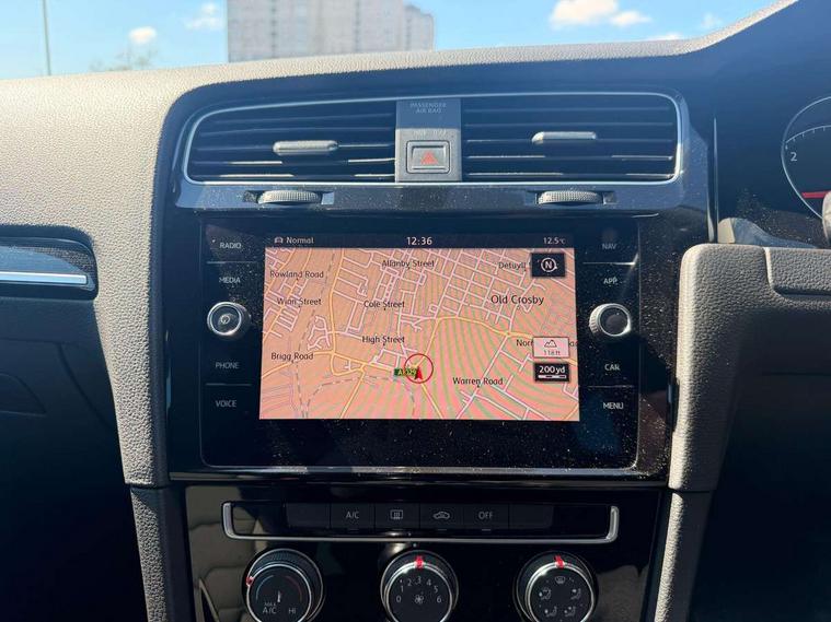 'Lights On' Reminder warning buzzer, 8" touch screen, Adaptive Cruise Control with pedestrian detection and speed limiter, App-Connect, Bluetooth hands free telephone connection, Brake pad wear indicator warning light, Driver alert system, Driver profile selection, Exterior temperature gauge, Front assistant collision mitigation, Instrument cluster in white, Multifunction computer, PAS - speed related, Rev counter, Trip and service interval display, Ultrasonic front and rear optical and audible parking sensors, Warning buzzer and light for front seatbelts unfastened, Diesel particulate filter, Lowered sports suspension, XDS electronic differential lock, CD/MP3/WMA, USB and SD card reader, aux-in, Composition media system, DAB Digital radio, Auto dimming rear view mirror, Automatic coming/leaving home lighting function, Automatic headlights, Black front air intake and radiator grille with chrome insert, Black rear diffuser, Body colour bumpers, Body colour door handles, Body colour door mirrors, Chrome grille surround, Electric front windows, Electric rear windows, Electrically adjustable and heated door mirrors, Heat insulated tinted glass 65% light absorbing from B pillar back, Heated rear windscreen, LED daytime running lights, LED front fog lights with static cornering light function, LED rear lights, Rain sensor, Rear roof spoiler, Rear windscreen washer and wiper with interval delay, 12V socket in luggage compartment, 3 rear headrests, 3 spoke steering wheel, 60/40 split folding rear seat, Bag hook in luggage compartment, Boot lashing points, Cooled glovebox, Courtesy light delay, Cover for storage compartment in centre, Dust/pollen filter, Front + rear carpet mats, Front centre armrest with storage box and rear air vents, Front passenger drawer stowage, Front passenger seat height adjust, Front seat back storage pockets, Grab handles, Height adjustable driver's seat, Height/reach adjust steering wheel, Illuminated vanity mirrors, Isofix preparation for 2 rear child seats, Load through provision with rear centre armrest and cupholders x2, Luggage compartment cover, Luggage compartment lighting, Multifunction leather steering wheel with leather gear knob/handbrake grip, Overhead storage box, Pearl grey headlining, Storage box in luggage compartment, Storage compartments in doors, Sun visors, Variable boot floor, height adjustable and removable, Ambient lighting pack - Golf, Convenience Pack - Golf, Mirror pack - Golf, 3 point height adj front seatbelts + pretensioners, 3 rear 3 point seatbelts, ABS, Automatic post collision braking, Child locks on rear doors, Driver/Front Passenger airbags, Driver/Passenger whiplash optimised head restraints, Drivers knee airbag, Electronic parking brake with auto hold, ESP with EDL + ASR, Front and rear curtain airbags, Front passenger airbag deactivation, Front side airbags, Pre crash system, Tyre pressure monitor, Alarm with interior protection, Electronic engine immobiliser, Remote central locking with 2 remote folding keys, Chrome-plated light switch surround, Piano black centre console, Tumbler decorative inserts, Steel space saver spare wheel,