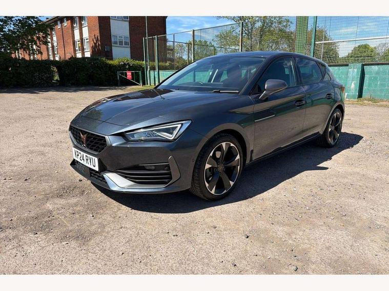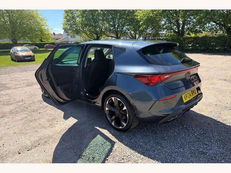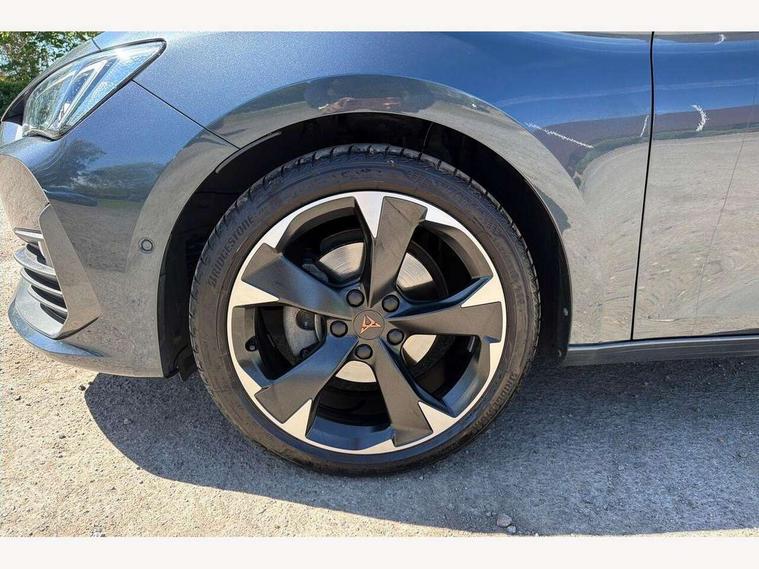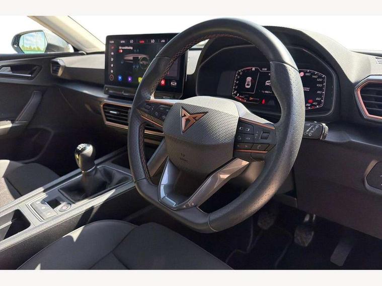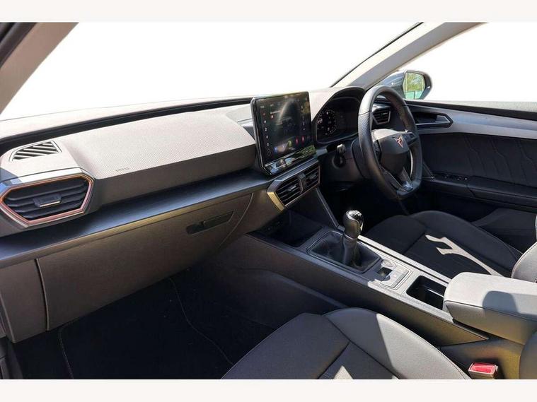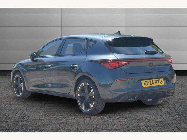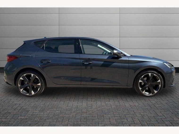 CUPRA drive profile selection with (Comfort/Sport/Individual), throttle response and gearshift mode, Digital cockpit, E-call, Electro mechanical speed sensitive power steering, Four x USB Type C ports (2 in front and 2 in rear), Front assist with forward collision warning braking reaction to vehicles, pedestrians and cyclists, Full link smartphone integration with Mirror Link, wireless Apple CarPlay and wired Google Android Auto, Lane assist, Lockable tailgate, Park assist (inc front/rear parking sensors), Rear view camera, RPM, trip computer, outside temp gauge, instrument light brightness, low fuel warning light, lights on reminder, gearshift indicator, Service interval indicator, Start/stop system with regenerative braking, Wireless phone charger, Sports suspension, Auxiliary input socket, Auto dimming rear view mirror, Body colour door handles, Body coloured bumpers, Cupra sports bumpers, Dark tinted rear windows, Electric front/rear windows, Electrically adjustable, heated and folding door mirrors, LED front fog lamps with cornering function, LED headlights with dynamic turn signals, tail lights, rear fog lights with rear coast to coast lighting, Rain sensing wipers, Rear diffuser with twin exhaust pipe on each side, Rear side wing doors, Rear wash/wipe, Separate daytime running light with automatic headlight control and coming home feature, Third brake light, 12v power supply in centre console, 3 seat bench in 2nd row, 5 headrests, 60/40 split rear bench seat with armrest, Ambient lighting with glovebox, footwell and single monocolour, Cupra Leather flat bottomed, perforated steering wheel, Driver/passenger manual seat height adjustment, Folding boot cover, Front and rear reading lights X 4, Front centre armrest, Front seats manual lumbar adjustment, Grey headlining, Height/reach adjust steering wheel, Illuminated interior front door sills, ISOFIX points in outer rear seats with top tether anchorage points, Jack and tool kit, PVC/Cloth upholstery with copper stitching, Single front passenger seat, Sports seats, Sunvisors with illuminated mirror, Three zone climate control, Media system plus with navigation pack - Leon Cupra, Safety and driving pack (M) - Cupra leon, 3 point seatbelts on all rear seats, ABS, Brake control system - ESC and brake booster, Child proof door locks, Cupra black brake calipers, Driver and front passenger airbags with front passenger airbag de-activation, front side and curtain airbags, Electronic parking brake, Extended safety system - seat belt tensioner, window closure and hazard lights, Hill hold control, Rear disc brakes, Seat belt reminder for front and rear seats, Tiredness recognition system, Tyre pressure monitoring system, Anti theft alarm system with interior monitoring in cab, backup horn and towing protection, KESSY Advanced - Keyless start, keyless entry, Locking wheel bolts, Chrome and copper interior detailing, 18" Machined sport black and silver alloy wheels with 92Y tyres,