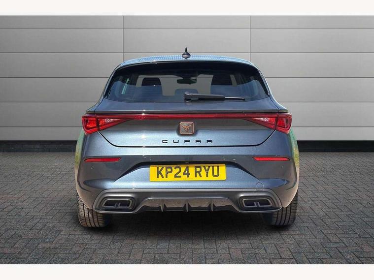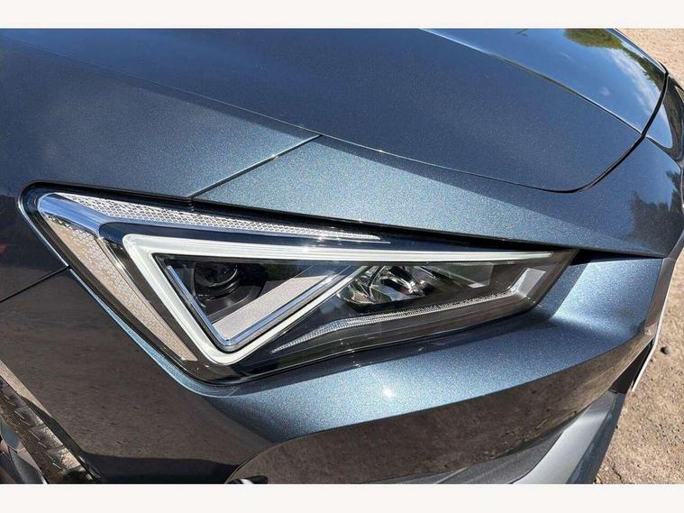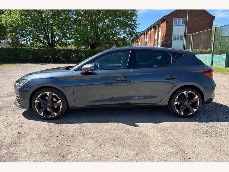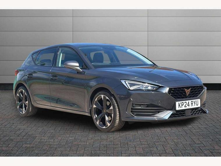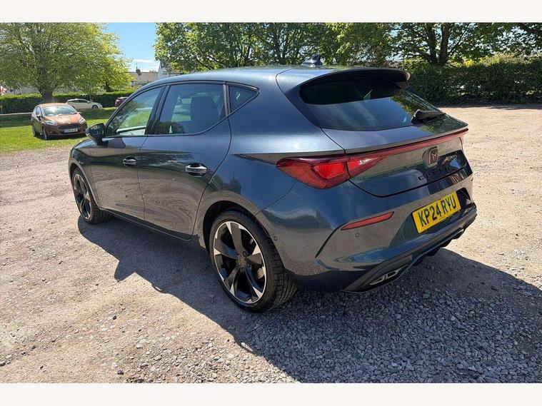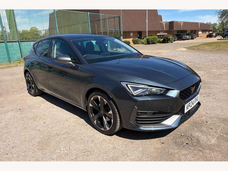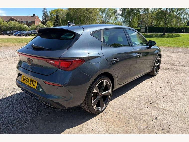 CUPRA drive profile selection with (Comfort/Sport/Individual), throttle response and gearshift mode, Digital cockpit, E-call, Electro mechanical speed sensitive power steering, Four x USB Type C ports (2 in front and 2 in rear), Front assist with forward collision warning braking reaction to vehicles, pedestrians and cyclists, Full link smartphone integration with Mirror Link, wireless Apple CarPlay and wired Google Android Auto, Lane assist, Lockable tailgate, Park assist (inc front/rear parking sensors), Rear view camera, RPM, trip computer, outside temp gauge, instrument light brightness, low fuel warning light, lights on reminder, gearshift indicator, Service interval indicator, Start/stop system with regenerative braking, Wireless phone charger, Sports suspension, Auxiliary input socket, Auto dimming rear view mirror, Body colour door handles, Body coloured bumpers, Cupra sports bumpers, Dark tinted rear windows, Electric front/rear windows, Electrically adjustable, heated and folding door mirrors, LED front fog lamps with cornering function, LED headlights with dynamic turn signals, tail lights, rear fog lights with rear coast to coast lighting, Rain sensing wipers, Rear diffuser with twin exhaust pipe on each side, Rear side wing doors, Rear wash/wipe, Separate daytime running light with automatic headlight control and coming home feature, Third brake light, 12v power supply in centre console, 3 seat bench in 2nd row, 5 headrests, 60/40 split rear bench seat with armrest, Ambient lighting with glovebox, footwell and single monocolour, Cupra Leather flat bottomed, perforated steering wheel, Driver/passenger manual seat height adjustment, Folding boot cover, Front and rear reading lights X 4, Front centre armrest, Front seats manual lumbar adjustment, Grey headlining, Height/reach adjust steering wheel, Illuminated interior front door sills, ISOFIX points in outer rear seats with top tether anchorage points, Jack and tool kit, PVC/Cloth upholstery with copper stitching, Single front passenger seat, Sports seats, Sunvisors with illuminated mirror, Three zone climate control, Media system plus with navigation pack - Leon Cupra, Safety and driving pack (M) - Cupra leon, 3 point seatbelts on all rear seats, ABS, Brake control system - ESC and brake booster, Child proof door locks, Cupra black brake calipers, Driver and front passenger airbags with front passenger airbag de-activation, front side and curtain airbags, Electronic parking brake, Extended safety system - seat belt tensioner, window closure and hazard lights, Hill hold control, Rear disc brakes, Seat belt reminder for front and rear seats, Tiredness recognition system, Tyre pressure monitoring system, Anti theft alarm system with interior monitoring in cab, backup horn and towing protection, KESSY Advanced - Keyless start, keyless entry, Locking wheel bolts, Chrome and copper interior detailing, 18" Machined sport black and silver alloy wheels with 92Y tyres,