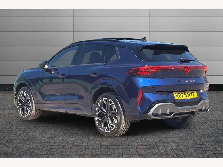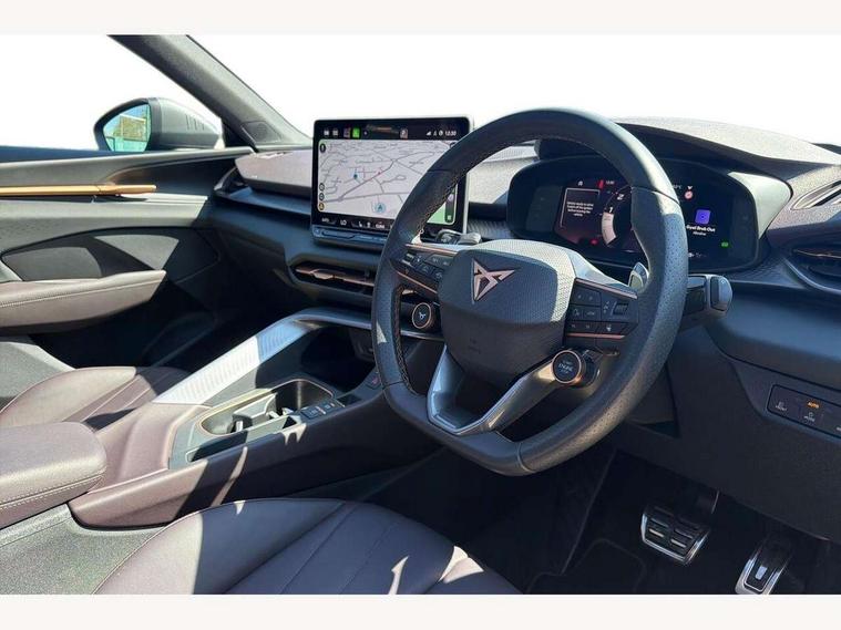 10.25" digital cockpit and configurable dashboard, Adaptive cruise control with follow-to-stop and speed limiter, Advanced driver alert system, Advanced lane assist with semi-automatic vehicle control in a medical emergency and traffic jam assist, Driving profile selection (DCC- Comfort, performance, CUPRA, Individual, Dynamic road sign display, E-call, Electric tailgate with virtual pedal, Emergency steering support with turn assist, Front and rear parking sensors, Front assist (Forward collision warning with automatic braking) with multifunction camera and front cross traffic assist, Head up Display, Intelligent park assist, Media system with Nav - 12.9" touch display, voice control, full link phone (wired/wireless), DAB and Steering wheel mounted controls, Rear traffic assist, Side and exit assist, Speed sensitive power steering, Start/stop system with regenerative braking, Top view camera (front camera, rear camera, 2 side cameras), Wireless phone charger, Adaptive chassis control with a 2-valve shock absorber, Auto dimming rear view mirror, Black roof rails, CUPRA 3D rear lights with ceremony & swiping indicator and illuminated logo, Dark tinted rear windows, Daytime running lights with automatic headlight control and Coming and Leaving home function, Door mirrors with memory function and lowing function on passenger mirror, Electric front/rear windows, Electrically adjustable, heated and folding door mirrors, Front fog lamps with cornering function, Heat reflecting windscreen, High beam assist, Rain sensing wipers, Rear fog light on one side, back up light on both sides, Rear side wing doors, Rear wash/wipe, Third brake light, Welcome lights (within exterior mirror housing), 3 seat bench in 2nd row, Black roof lining, Cupra sports pedals, Driver seat memory function, Electrically adjustable front seats including lumbar support, Four x USB Type C ports (2 in front and 2 in rear), Front and rear head restraints, Front and rear reading lights X 4, Front centre armrest, Heated front seats, Heated leather wrapped multi function sports steering wheel with tiptronic, Illuminated interior front door sills, Isofix, Leather upholstery, Operating voltage 12V, Single front passenger seat, Smart wraparound interior lighting, Sunvisors with illuminated mirror, Three zone climate control with control panel in rear, Unsplit rear seat bench, split folding backrest, with centre armrest, Variable luggage/load compartment floor, Pure performance pack - Terramar, 3 point seatbelts in front with pretensioner and electric height adjustment, 3 point seatbelts on all rear seats, Brake control system - ESC and brake booster, Child proof door locks, Driver and front passenger airbags, Electronic parking brake, Front and rear disc brakes, Front interaction airbag, Front passenger airbag deactivation switch, Front side airbags with curtain airbags, Pre-crash front and rear seat belt tensioner, window closure and hazard lights, Tyre pressure monitoring system, Visual and acoustic seat belt reminder, electric contact in front and rear, Anti theft alarm, Keyless locking and starting system with keyless access, Locking wheel bolts, Black decorative trims, Chrome interior detailing, Performance tyres in polmer coating, Tool kit,