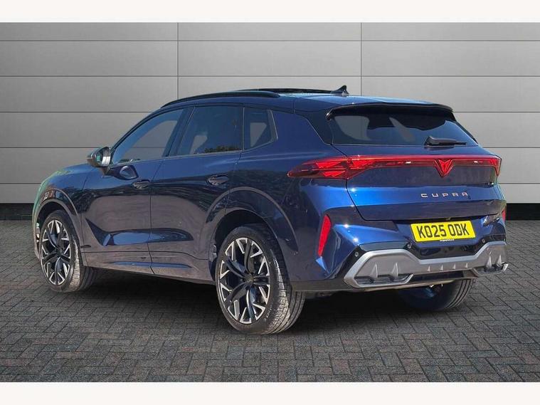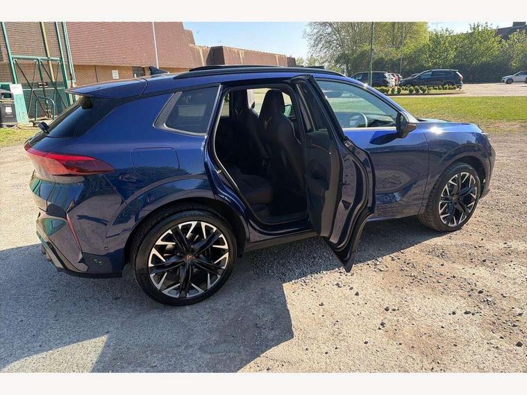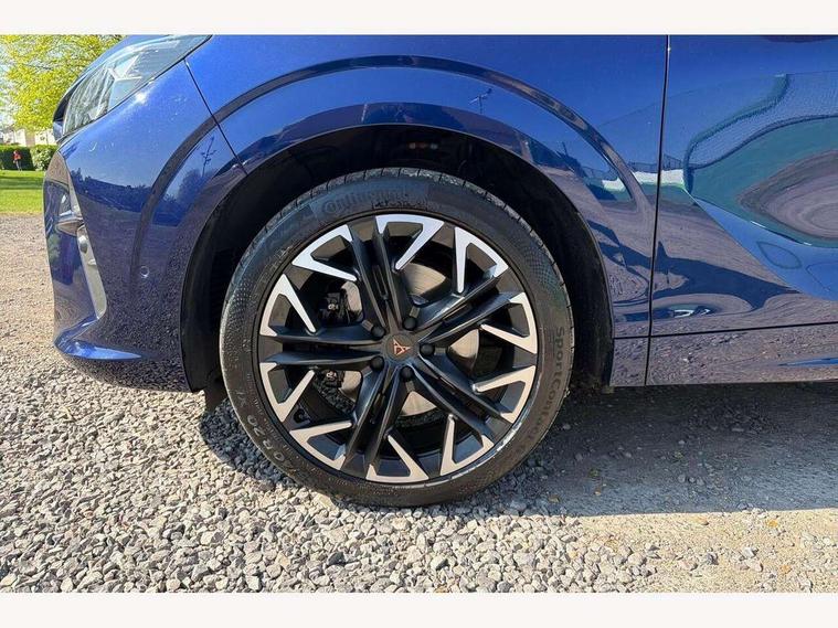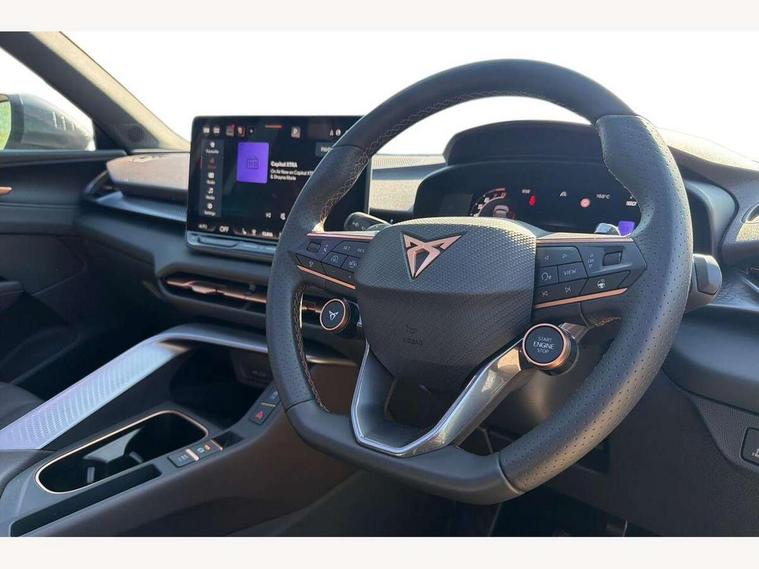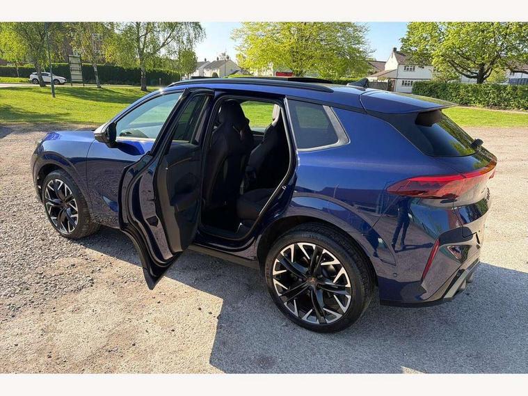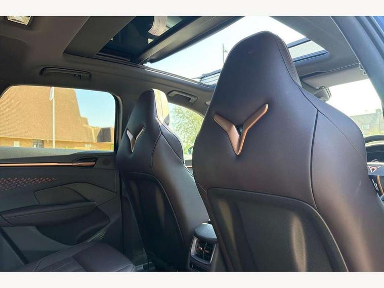 10.25" digital cockpit and configurable dashboard, Adaptive cruise control with follow-to-stop and speed limiter, Advanced driver alert system, Advanced lane assist with semi-automatic vehicle control in a medical emergency and traffic jam assist, Driving profile selection (DCC- Comfort, performance, CUPRA, Individual, Dynamic road sign display, E-call, Electric tailgate with virtual pedal, Emergency steering support with turn assist, Front and rear parking sensors, Front assist (Forward collision warning with automatic braking) with multifunction camera and front cross traffic assist, Head up Display, Intelligent park assist, Media system with Nav - 12.9" touch display, voice control, full link phone (wired/wireless), DAB and Steering wheel mounted controls, Rear traffic assist, Side and exit assist, Speed sensitive power steering, Start/stop system with regenerative braking, Top view camera (front camera, rear camera, 2 side cameras), Wireless phone charger, Adaptive chassis control with a 2-valve shock absorber, Auto dimming rear view mirror, Black roof rails, CUPRA 3D rear lights with ceremony & swiping indicator and illuminated logo, Dark tinted rear windows, Daytime running lights with automatic headlight control and Coming and Leaving home function, Door mirrors with memory function and lowing function on passenger mirror, Electric front/rear windows, Electrically adjustable, heated and folding door mirrors, Front fog lamps with cornering function, Heat reflecting windscreen, High beam assist, Rain sensing wipers, Rear fog light on one side, back up light on both sides, Rear side wing doors, Rear wash/wipe, Third brake light, Welcome lights (within exterior mirror housing), 3 seat bench in 2nd row, Black roof lining, Cupra sports pedals, Driver seat memory function, Electrically adjustable front seats including lumbar support, Four x USB Type C ports (2 in front and 2 in rear), Front and rear head restraints, Front and rear reading lights X 4, Front centre armrest, Heated front seats, Heated leather wrapped multi function sports steering wheel with tiptronic, Illuminated interior front door sills, Isofix, Leather upholstery, Operating voltage 12V, Single front passenger seat, Smart wraparound interior lighting, Sunvisors with illuminated mirror, Three zone climate control with control panel in rear, Unsplit rear seat bench, split folding backrest, with centre armrest, Variable luggage/load compartment floor, Pure performance pack - Terramar, 3 point seatbelts in front with pretensioner and electric height adjustment, 3 point seatbelts on all rear seats, Brake control system - ESC and brake booster, Child proof door locks, Driver and front passenger airbags, Electronic parking brake, Front and rear disc brakes, Front interaction airbag, Front passenger airbag deactivation switch, Front side airbags with curtain airbags, Pre-crash front and rear seat belt tensioner, window closure and hazard lights, Tyre pressure monitoring system, Visual and acoustic seat belt reminder, electric contact in front and rear, Anti theft alarm, Keyless locking and starting system with keyless access, Locking wheel bolts, Black decorative trims, Chrome interior detailing, Performance tyres in polmer coating, Tool kit,
