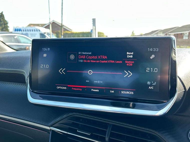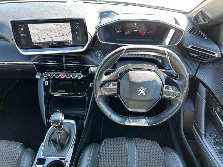 10" Capacitive colour touchscreen with connected 3D navigation, Bluetooth telephone facility, Driver attention warning, Exterior temperature indicator with ice warning, Front and rear parking sensors, Lane keep assist, Mirror screen with mirror link, apple carplay and android auto, Multi function trip computer, Passive blind spot detection, PEUGEOT i-Cockpit with compact steering wheel, PEUGEOT i-Cockpit with configurable 3D headup instrument panel, PEUGEOT SOS and assistance, Push button start, Smart phone docking station, Speed limit recognition and recommendation, Visio Park 1 with 180 degree Colour reversing camera, 2 front USB socket with USB-C, 2x USB sockets in rear, 6 speakers radio with mp3 compatible, DAB Digital radio, Voice recognition for radio, navigation and telephony features, 2 X Rear number plate lights, Automatic hazard light activation upon heavy brake application, Automatic lights, Automatic windscreen wipers, Body coloured exterior door handles, Dark tinted rear side and tailgate windows, Diamond black rear spoiler (roof), Diamond Black roof, Electric front windows + one touch + anti-pinch, Electric rear windows with one touch/anti-pinch, Electrically adjustable, heated and power folding door mirrors, Follow me home headlights, Frameless electrochrome interior rear view mirror, Front windscreen wiper with magic wash cleaning system, Full LED headlights with smartbeam assist, Gloss black finish on B pillar, Gloss black rear cluster connecting strip, Gloss black wheel arch extensions, Gloss black window surround, GT Line model designation badging on C pillar, GT Line model designation badging on tailgate, Headlights left on audible warning, LED daytime running lights with 3 claw headlight with distinctive tooth design, LED side indicator lights integrated into door mirrors, Model designation badges front and rear, Nera black door mirror shells, Radiator grille - Dark chrome chequered and gloss black edge trim, Rear bumper with gloss black finish, Rear full LED 3D peugeot signature claw effect lights with daylight function, Rear lower bumper diffuser effect trim in gloss black, Rear reversing lights, Rear windscreen wiper triggered automatically in reverse gear, Stainless steel door sill scuff plates, Tailgate with heated rear windscreen and wiper blade, Twin chrome exhaust tailpipes, 1/3 to 2/3 split folding rear seats, 12V socket, 8 Colour personalisable ambient lighting, Aluminium pedals and foot rest, Driver and front passenger seat manual adjustment in longitudinal and back rest angle, Driver and front passenger seat mechanical height adjustment, Driver and front passenger sport seats, Dual zone electronic climate control, Electric power steering with reach and rake adjustable steering column, Front and rear carpet mats in black with lime green stitch detail, Front centre armrest with storage compartment, Front LED interior light with 2 reading spotlights and rear interior light with timer, High centre console with 2 cup holders, ISOFIX child seat mounting points on passenger seat, Lime green contrast stitching to armrest, front centre console, door panels and dashboard facia, Map pockets on the backs of the front seats, Mistral full grain perforated leather steering wheel with aikinite stitch detail and satin chrome 'GT' emblem, Piano keys gloss black plated toggle switches to access main functions of the vehicle, Piano keys gloss black plated toggle switches to access touchscreen functions, Roof lining - Mistral black, Satin chrome gear lever, Seatbelt unfastened on the move audible and visual alert for front and rear seats, 2x 2nd row ISOFIX child seat mountings, 3 point seatbelts on all rear seats, 3 rear 3 point seatbelts, 3x3 point rear seat belts, 3x3 point rear seatbelts, ABS (Anti-lock Braking System) with EBD (Electronic Brakeforce Distribution) and EBA (Emergency Braking Assistance), Active safety brake with night function/cyclists/pedestrians, Child locking functionality on rear doors, Driver and passenger airbags with Passenger airbag deactivation system, Driver/front passenger side airbags, Electric parking brake, ESP with Hill Assist, Front and rear curtain airbags, Front and rear disc brakes, Front optimised safety headrests and 3 x rear retractable headrests with height adjustable, Front three point retractable seatbelts with force limiters, Tyre pressure sensor, Automatic door locking when moving off, Deadlock, Electronic code immobiliser, Thatcham Cat.1 alarm, Carbon effect Dashboard, front and rear door panel finish, 17" Camden diamond cut two tone alloy wheels, Space saver spare wheel,