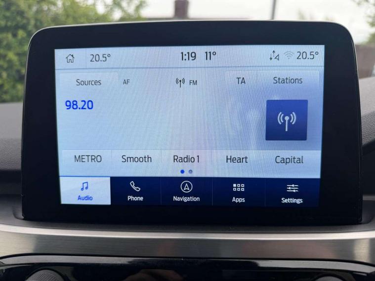 12.3" digital colour instrument cluster, Ford easy fuel, Ford SYNC 3 with 8" TFT LCD touchscreen, App Link, andriod auto/apple carPlay, emergency assistance and navigation with Ford pass connect, Front and rear parking sensors, Hands free power tailgate, Lane keeping aid with lane departure warning, Power assist steering, Rear view camera, Selectable drive modes, Service interval indicator, Standard suspension, Twist beam rear suspension, B&O premium audio system with 10 speakers and subwoofer, 2 USB ports, DAB radio/CD, Auto dimming rear view mirror, Auto headlamps with high and low beam, Auto wipers, Front LED fog lamps, LED daytime running lights, LED rear lights, Power folding heated door mirrors with puddle lights, Power front/rear windows with global close, Privacy glass, Quickclear heated windscreen, Rear side wing doors, Rear spoiler, Rear wiper, Silver roof rails, Third brake light, Twin exhausts, 10 way power adjustable drivers seat, 2nd row sliding seats with 60:40 split, 8 way manual passenger seat including lumbar support and height adjust, Ambient lighting, Centre console with electronic parking brake, Electronic automatic temperature control (EATC), Front and rear floor mats, Front and rear head restraints, Partial premium touch sensico leather upholstery with black cloth inserts, Rear charging point, Single front passenger seat, Sports seats, 3x3 point rear seatbelts, Airbags - front driver/passenger, front and rear curtain, Drivers knee airbag, Electronic stability control (ESC) and ABS, Ford MyKey Gen 2 safety system, Manual child proof rear door locks, Post collision braking, Pre collision assist with autonomous emergency braking, Rear seat Occupancy alert, Tyre pressure monitoring system, Engine immobiliser, Keyless entry and Ford power start button (Keyless start), Locking wheel nuts, Remote powered central double locking doors, Thatcham category 1 alarm, 18" 5x2 spoke magnetic and machined finish alloy wheels,