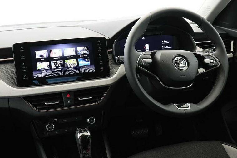 Advanced driver attention and drowsiness monitor, Bluetooth, e-Call (emergency call), Front assist system, PAS, Rear parking sensors, Speed limiter, Tailgate, Traffic sign recognition, Virtual Cockpit - 10.25" digital display, Voice control system, Wireless smartlink, 4 USB C ports, 8 Speakers, 9.2" Skoda navigation display, DAB radio, Auto dimming rear view mirror, Automatic headlamp activation with Coming home and Leaving home feature, Automatic high/low beam, Automatic intermittent wipers, Body colour bumpers, Body colour door mirrors and handles, Chrome moulding around grille, Chrome window frames, Front and rear electric windows, Heated rear window, LED 3rd brake light, LED brake lights, LED daytime running lights, LED front turning lights, LED high beam, LED low beam, Light sensors, Privacy glass, Rear LED fog light, Rear side wing doors, Rear wiper, Tinted windows, 12V socket in luggage compartment, 3 seat bench in 2nd row, Ambient lighting in white/red, Black / Copper armrest stitching, Cargo elements, Chrome inner door handles, Copper hotstamping, Door inserts in accent black, Driver and passenger sun visors with vanity mirror, Dual zone climate control, Front and rear roof lights, Front centre armrest, Front head restraints, Glasses storage in roof liner, Height adjustable driver seat, Height adjustable passenger seat, Ice scraper, Illuminated glove compartment, Inner circulation control with pollen filter, ISOFIX for front passenger seat, Isofix preparation for back seats, Leather gearknob and handbrake lever, Lodge cloth upholstery, Luggage net under rear parcel shelf, Manual lumbar support for front seats, Net package and top tether hooks in boot space, Pearl grey ceiling, Pocket on the back of both front seats, incl. mobile phone pockets, Rear centre armrest, Single front passenger seat, Textile floor mats, Third rear headrest, Ticket holder, Top tether for front passenger seat, Umbrella in driver's door, 3x3 point rear seatbelts, ABS, Child locks, Curtain airbags and front side airbags, Disc brakes, Driver and front passenger airbags, ESP, Hill hold control, Manual leather parking brake, One tone horn, Passenger airbag switch off function, Seatbelt reminder for driver and front passenger, Tyre pressure monitoring system, Anti theft alarm system with interior monitoring, backup horn and towing protection, Anti-theft wheel bolts, Remote central locking with 2 remote folding keys, SAFE function for remote central locking, Decorative inserts,