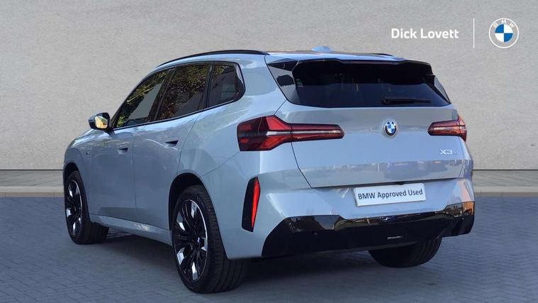 Active guard professional, Attentiveness assist, Automatic operation of tailgate, BMW ConnectedDrive online services, BMW iDrive, BMW Live cockpit plus, BMW Online services, BMW Teleservices, Brake pad wear indicator, Condition based service, Drive off assistant, Flat tyre monitor, Language version English, My Mode - Personal, Efficient, Sport, Relax, Expressive, Parking assistant, Reversing assist camera, Servotronic system, Variable sport steering, Dynamic stability control, Multiple control arm rear axle, Steptronic transmission with gearshift paddles, Two-joint strut-type front axle with tension strut, DAB tuner, Personal eSim, 4 tailpipe tips, B-pillar trim panel in black high-gloss, BMW badge on front and rear, BMW M-specific front/rear bumpers and side sills, BMW M-specific radiator grille with horizontal bars in Dark Silver and M logo, Body colour mirror caps, Daytime running lights, Door handles flush to the surface with lock barrel on driver's side is illuminated and in vehicle colour, Dynamic brake lights, Electric adjustable and heated door mirrors, Electric window trap release and convenient opening/closing feature, Headlight beam throw control, Heated rear window, Heated windscreen washer jets, High beam assistant, LED 3rd brake light, LED rear lights, LED tail lights, LED turning indicators, Locking of the doors, M high-gloss shadowline, M-specific Exterior mirrors, Mirror base and mirror blade in satinised aluminium, Mirror triangle in black high-gloss, Rain sensor with automatic headlight activation, Rear side wing doors, Rear wiper, Reversing light, Side window frame in black high-gloss, Windscreen wipers, 12v power socket in front centre console and luggage compartment, 2 x USB Type C ports for charging and data transmission (front centre console) and 2 x USB Type C ports for charging (rear centre console), 3 rear headrests, 3 seat bench in 2nd row, 3 zone automatic air conditioning, 40:20:40 split folding rear seat with loading system, Ambient lighting, Anthracite headlining, Electric adjustable seats with memory function, Floor mats in velour, Footrest and pedals in black plastic, Four grab handles integrated in roof lining, Front armrest with integrated control panel, Front centre console trim in black high-gloss, Front head restraints, Front passenger seat, Front sports seats, Glove compartment, i-Size / ISOFIX attachment points on both outer rear seats, with covers in black, Interior door handles in dark chrome, Luggage compartment separating net, M sport leather steering wheel, Multifunction steering wheel, Rear side armrests integrated into door trim, Selector lever with toggle operation, Steering column adjustment, Sun visors with illuminated vanity mirrors, Three upper retaining strap clips integrated into the rear panels of the seat backrests, Through loading system, Two front cupholders and two in the rear center armrest, Wireless charging tray, Connected pro package - X3, Driving assistant package - X3, Driving assistant plus pack - X3, Interior and exterior mirror package - X3, 3 point seatbelts, Airbag deployment is controlled with respect to the intensity and scope, Anti-lock braking system (ABS), Automatic hold function, BMW emergency call, Brake assist, Brake drying, Brake energy regeneration, Braking readiness, Central airbag, Child locks on rear doors, Cornering brake control (CBC), Crash Sensor - activation of central locking release, hazard warning light and interior lighting, Driver and front passenger front and side airbags, Dynamic brake control, Electromechanical parking brake, Front and rear disc brakes, Head airbags, Integrated braking system, Post Crash Collision Warning with braking function, Trailer stability control, Tyre pressure sensor, Warning triangle, Alarm system, Closing system with central locking, Comfort access system with BMW digital key plus, Locking wheel bolts, Start/stop button with keyless motor start with acoustic drive, Tyre repair kit plus,