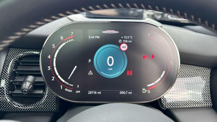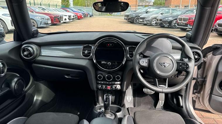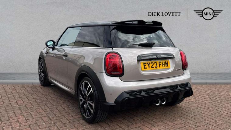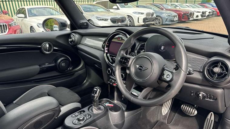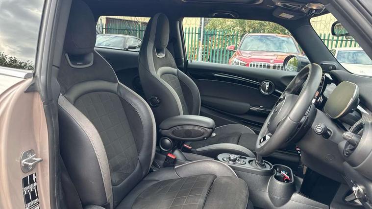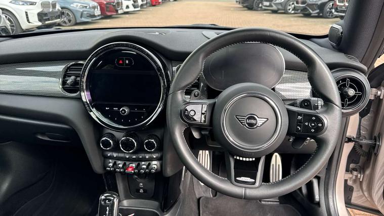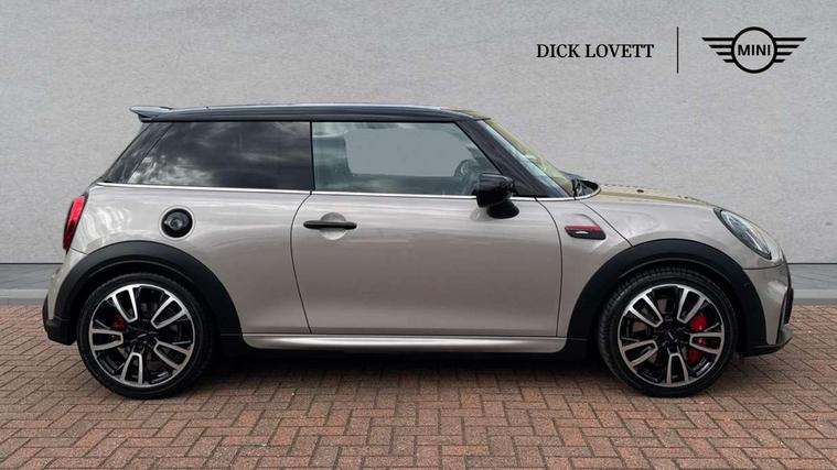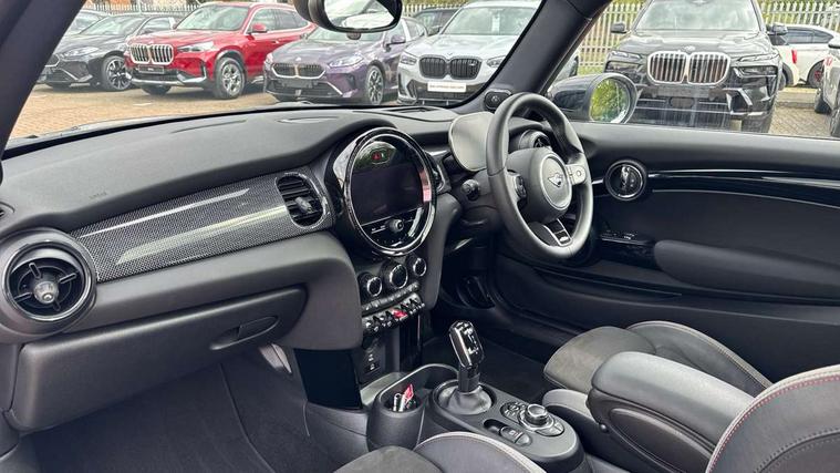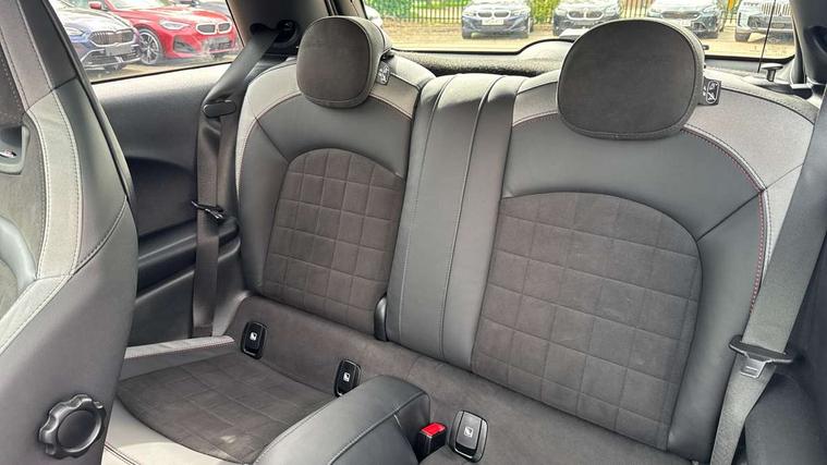 Apple CarPlay, Automatic start/stop function with brake energy recuperation, Compatible mobile phone bluetooth with audio streaming, Cruise control with brake assist, Electro-mechanical speed dependant steering assistance, Flexible car sharing preparation, Instrument cluster, MINI Driving Modes - centre toggle switch to control driving setting (sport, mid and green), Mini E-call, MINI TeleServices, On board computer, Rear park distance control, Service interval indicator, Double Vanos system, Eight speed steptronic sport transmission, with gearshift paddles, Fully variable valve control, High precision injection, Performance Control, 8.8" touchscreen with LED ring, FM tuner and DAB digital radio, 3rd brake light, Automatic headlight activation switch, Bonnet scoop, Dynamic brake lights, Electric front windows, Heated rear window, Heated windscreen washer jets, JCW Aerodynamic kit - Front and rear bumpers with sporty JCW styling and part-painted side sills with MINI John Cooper Works door sill finishers, John Cooper Works logo above an individual grille strut in Chilli Red, John Cooper Works rear spoiler, LED headlight with closed ring and daytime driving lights, Radiator grille piano black border with honeycomb structure in black matt, Rain sensor window wipers, Rear fog lights, Rear LED lights with union jack design, Rear window wiper, Side scuttle panel with integrated indicator, Side scuttle with MINI John Cooper Works logo in black high-gloss with red border, Sun/heat protection glass, Two central exhaust tailpipes with chrome finisher, White indicator lenses, 12V Accessory socket in centre console, 2 seat bench in 2nd row, 4 lashing eyes in luggage compartment, 60/40 split folding rear seat, Anthracite headliner including grab handles and clothes hooks, Carbon black colour line - Knee roll and door armrest, Chrome interior highlights, Cupholders, Front and rear isofix with front passenger airbag deactivation, Front floor mats in velour, Glove compartment, Height and length steering column adjustment, Interior lighting with 12 different colours across the dashboard, underneath door bezel with illuminated laser-engraved design on central display, JCW Sport seats with integrated headrests, adjustable thigh support and John Cooper Works logo, Leatherette gearshift lever and handbrake gaiters, LED reading lights, vanity mirror lights, front foot well light and spotlight on front seats, Manual air conditioning, Mechanical seat adjustment - forward/back & backrest for front seats and driver seat height adjust, Multifunction steering wheel, Passenger seat height adjuster, Rubberised stainless steel pedals, Single front passenger seat, Storage compartments in doors, Storage pocket on back of front seats, Sunvisors with vanity mirrors, Tool kit, Walknappa leather steering wheel with grey seam and John Cooper Works badge on Piano Black lower steering wheel spoke, Navigation pack without Apple Carplay - Mini Hatchback, Piano black exterior pack - JCW, 3 point seatbelts on all four seats, 4-piston fixed-calliper brakes front, 6 Airbags - front, side, head and seat belt tensioners, Anti-lock braking system (ABS), DSC - Dynamic Stability Control, Front and rear disc brakes, Red brake callipers with John Cooper Works logo, Single tone fanfare horn, Tyre pressure monitoring system, Alarm system with tilt sensor, monitoring doors, bonnet interior and tailgate, Electronic vehicle immobiliser, Start/stop toggle with keyless go,