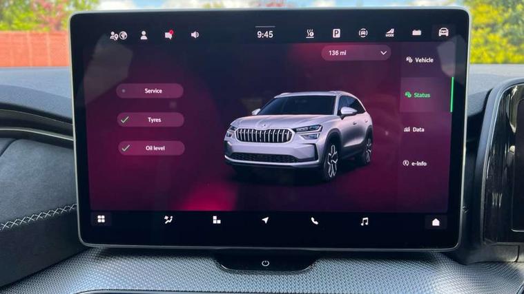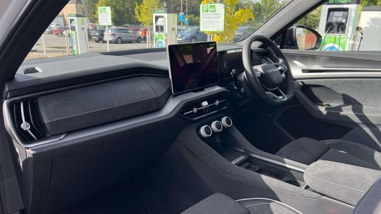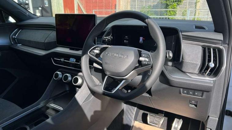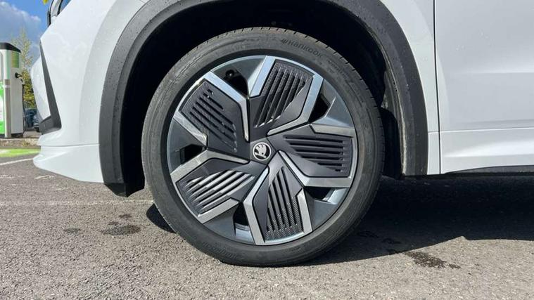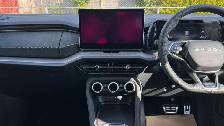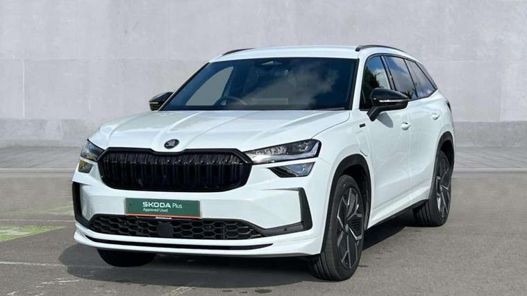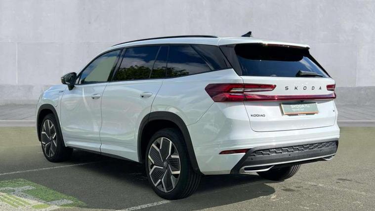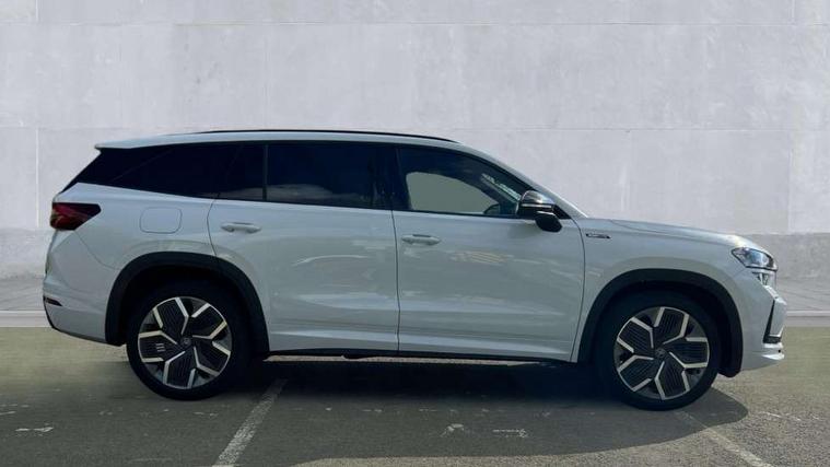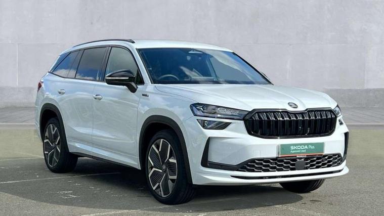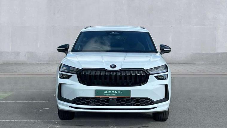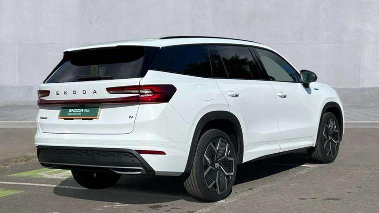 13" satellite navigation touchscreen display, Blind spot detection with door exit warning, Bluetooth system, ChatGPT functionality, Driver alert - Fatigue and drowsiness monitor, Dry display cleaner, Emergency call, Front and rear parking sensors, Front cross traffic assist, Lane assist, PAS, Rear traffic assist, Tailgate unlocking from outside, Traffic sign recognition, USB C Port x 2 in front centre console, Virtual Cockpit - 10.25" digital display, Voice control system, Wireless charging for two smartphones (15W) with cooling function, Wireless SmartLink for Apple CarPlay and Android Auto, 32A charging cable, Stop/start function, 2x USB-C in the rear, DAB Digital radio, Aero front windscreen wipers with intermittent function, Auto dimming rear view mirror, AWL (all weather lighting) and all weather light with cornering function, Black diffuser and decorative tailpipe with a unique dark chrome finish, Black roof rails, Black sports styling including front grille and window surrounds, Black wheel arch surrounds, Body colour door handles, Cornering light and poor weather light, Electric folding /adjustable/separted heated/folding door mirrors, auto dimming with boarding sports and memory function, Electric front and rear windows, Exterior black decorative trims, Front and rear sports bumpers including lower rear chrome strip, Front grille with horizontal light strip, Gloss black door mirrors, Gloss black window frame and D pillar, Heat insulating glass in windshield, Heated rear window, Ice scraper in fuel tank cap, LED daytime running lights, LED matrix headlights with AFS and LED fog lights, LED rear light with welcome effect and dynamic turn signals, LED third brake light in rear spoiler, Light assistant with automatic headlight control and coming home feature, Logo projection in door mirrors, Multiple matrix beam, Privacy glass, Rear roof spoiler, Rear side wing doors, Rear window wiper, Red decorative strip between rear LED lights, Safety reflectors on front and rear doors, Sportline badge on front fenders, Tailgate lettering in Black, Unique dark chrome design logo on alloy wheels, Window control switches with black trim, Windscreen wipers with rain sensor, Without engine designation, 1.5l bottle holder points in all door, 1x centre rear reading light, 3 configurable smart dials with 32mm coloured display, 3 seat bench in 2nd row, 3 spoke multi-function heated leather sports steering wheel with paddle shift, 4 foldable roof handles with rear coat hooks, Aluminium pedals, Ambient interior lighting - Dashboard, front-door stowage compartments, front and rear door panels and footwell lighting, Automatic gear selector on steering column, Chrome interior door handles, Driver/front passenger reading lights, Fabric headlining, Fixed bench 40:60:40 split folding backrests, Front and rear floor mats, Front centre armrest with jumbo box storage compartment, cup holder and 12V socket, Front sport seats, Height adjustable front headrests, Interior black decorative trims, Isofix child seat fittings in outer rear seats and front passenger with top tether, iV badging on boot, Manually adjustable steering column, Pollen filter, Rear centre armrest with cupholders, Rear seat boot backrest release, Single front passenger seat, Skoda lettering on steering wheel, Storage pocket including mobile phone pockets on the backs of the front seats, Sunvisors with illuminated vanity mirrors, Three rear height adjustable headrests, Ticket holder on A Pillar, Tri zone climate control, Umbrella in door panel x1 made from sustainable materials, Upper and lower glovebox with card holder and coin compartment, USB C port by rear view mirror for charging only (15W), Acoustic package - Kodiaq, Performance package - Kodiaq, Sportline design selection pack - Kodiaq, Auto door release and activation of warning lights in the event of an accident, Driver and front passenger airbag with knee airbag and front passenger airbag deactivation, Electric child locks, Electronic parking brake, ESC (incl. ABS+EMD+MSR+ASR+EDL+HBA+DSR+RBS+ESBS+MCB+TSA+XDS), Front assist with braking reaction to vehicles, pedestrians and cyclists, Front disc brakes, Fuel cut off safety device, Height adjustable front 3 point seatbelts + pretensioners, Hill hold assist, Junction assist with automatic emergency braking, Rear disc brakes, Safety vest holder in door, Seat belt reminder for all seats, Three point rear seat belts, Two tone horn, Tyre pressure monitor, Alarm with interior monitoring and tilt sensor with safe function, Anti-theft wheel bolts, Immobiliser, Remote central locking with 2 keys, 20" Rila anthacite polished alloy wheel with black matte aero covers, Breakdown kit, Tool kit,