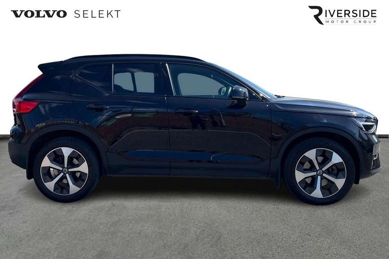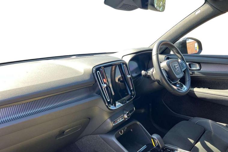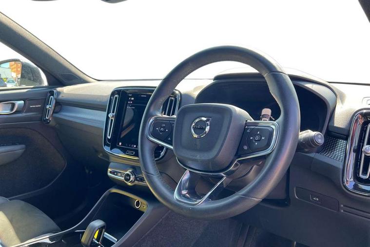 12.3" Progressive Driver Display, 360 degree surround view parking camera with side proximity sensors, 9" centre console portrait touch screen, Adjustable steering wheel force, Bluetooth hands free telephone kit, E-call, Front park assist, Google automatic services - Nav with google maps, apple carplay/android auto, voice recognition with google assistant, Hands free power tailgate, Lane keep assist with driver alert control, Oncoming Lane Mitigation, Rear park assist, Speed limiter, Speed sensitive steering, Wireless/Inductive Mobile Phone Charging, Dynamic chassis, DAB Digital radio, Premium Sound by Harman Kardon, Dolby Pro Logic II Surround Sound, Dirac Unsion, 12 speakers/600W and subwoofer, Steering wheel mounted remote controls, Active bending pixel LED headlights with adaptive shadow technology, Active high beam incorporating daytime running lights, Adaptive brake lights with high level LED brake lights, Auto dimming interior mirror, Automatic headlamp levelling, Dark tinted windows for rear door side windows and cargo compartment, Front aluminium tread plates, Front and rear electric windows, Headlight cleaning system, High gloss black front and rear skid plate, High gloss black mesh front grille with high gloss black surround, High gloss black window trim, Home safe and approach lighting, Integrated roof rails in high gloss black, LED front fog lights, Power glass tilt and slide panoramic sunroof with sun curtain, Puddle lights, Rain sensor with automatic windscreen wiper activation, Rear side wing doors, Rear wiper, Roof antenna, Roof spoiler, Visible VIN plate, 12V socket in front tunnel console and cargo compartment, 2 zone electronic climate control with clear zone air quality system and pollen filter, 3 seat bench in 2nd row, 3 Spoke tailored steering wheel with chrome trim, 60/40 versatile split folding rear seat, A-pillar parking ticket holder, Ambient front door and instrumental panel lighting, Centre console cupholders and storage, Flexible load floor and grocery bag holder, Floor mats, Front door pocket and front cupholder illumination, Front footwell illumination, Front headrests, Front reading light and theatre lighting, Front seat cushion extensions, Front tunnel pocket, Glovebox bag hook, Heated front seats, Height adjustable passenger seat, Height/reach adjustable steering column, High gloss centre tunnel deco, Illuminated glovebox, Illuminated luggage compartment, Illuminated tailgate, Illuminated vanity mirrors, Integrated waste bin, Isofix attachments on rear seats, Load protection net, Multi directional lumbar support, Power driver seat with memory + exterior mirrors memory, Power folding rear headrests, Power passenger seat, Rear armrest / integral cup holders / storage tray, Rear reading and courtesy lights, Single front passenger seat, Underfloor cargo storage, Climate pack without heated front seats - XC40, Driver assist pack - XC40, 3x3 point rear seatbelts, City safety with steering support with Pedestrian + cyclist + front collision warning with full auto brake and rear auto brake, Drivers knee airbag, Dual stage driver/passenger airbags, Electronic parking brake with auto hold, First aid kit, Front and outer rear seatbelt reminder and pretensioners, Front seats SIPS airbags, Hill descent control, Hill start assist, Inflatable curtain, Passenger airbag cut-off device, Power child locks on rear doors, Road sign information display, Run off Road Mitigation, Run off Road Protection, SIPS (Side Impact Protection System), Slippery road and hazard light alert, Stability and Traction Control with Spin control, Engine Drag Control and Corner Traction Control, Tyre pressure monitoring system, Vehicle deceleration control with Anti-lock Brake System, Electronic Brake Distribution and Emergency Brake Assist, Warning triangle, WHIPS whiplash protection system - front, Anti-theft alarm including immobiliser/volume sensor + level sensor, Key integrated remote control central locking + fuel flap with deadlocking system and auto open/close power windows, Keyless drive includes keyless entry and keyless start, Locking wheel nuts,