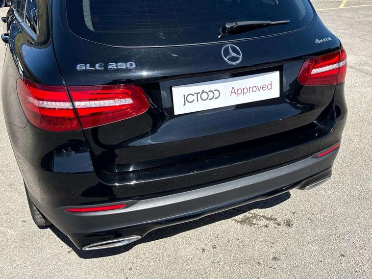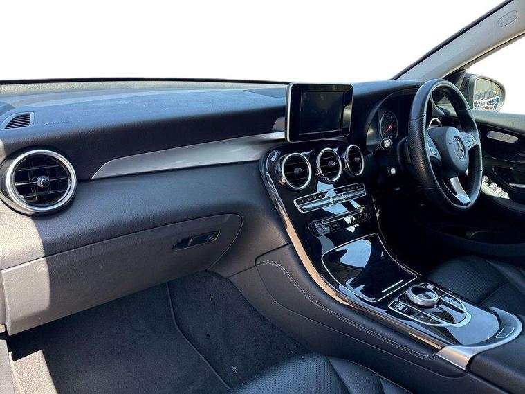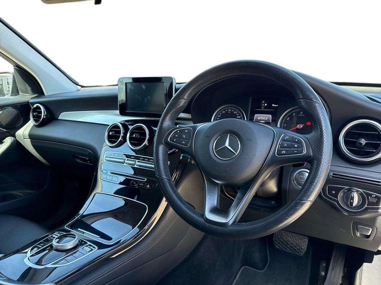 Attention assist, Bluetooth interface for hands free telephone, Collision prevention assist plus, Crosswind Assist, Cruise control with speedtronic variable speed limiter, DYNAMIC SELECT with a choice of driving modes (ECO, Comfort, Sport, Sport+ and Individual), Garmin Map Pilot navigation system with SD card, touchpad and voice control, High resolution 7 inch multimedia colour display, Instrument cluster with 5.5-inch TFT multi-function display, Mercedes connect me with remote online services, Multi function trip computer, Outside temperature gauge, Power opening/closing tailgate, Remote boot release, Reversing camera, Service indicator (ASSYST), Smartphone integration with Apple CarPlay and Android auto, Speed sensitive steering, 66 litre fuel tank, Agility control comfort suspension, 5 speakers, Frontbass loudspeakers, Mercedes Audio 20 radio/single CD + telephone keypad, USB connection, Adaptive brake lights, Aerodynamic rear spoiler, Automatic headlights, Body coloured bumpers, Electric windows one touch open/close, Exhaust tailpipe finisher, Front and rear apron in black, High gloss black beltline and window surround, High gloss black door mirrors, Intelligent LED headlight system with active cornering lights with adaptive high beam assist plus, LED daytime running lights, LED Headlights, LED rear lamps, Matt black roof rails, Privacy glass (to rear of B post), Radiator grille with 2 louvres in high gloss black, Rain sensor windscreen wipers, Range adjustable headlights, Rear wiper, Tinted glass all round, 2 cupholders in front centre console, 2 way rear head restraints, 3 spoke leather steering wheel, 4 way adjustable front head restraints, 4 way electric lumbar support for driver and front passenger, 40:20:40 split folding rear seats, Auto Mercedes-Benz child seat recognition sensor, Automatic climate control, Electric front seat height adjustment, Front armrest with storage box, Front door sills with Mercedes Benz lettering, Gearshift paddles, Heated front seats, Height/reach adjustable steering column, Lockable/illuminated glovebox, Multifunction steering wheel, Rear top tether child seat ISOFIX attachment, Sunvisors with illuminated vanity mirrors, Velour floormats, Interior lighting pack - GLC, 3 rear 3 point seatbelts, ABS with Brake Assist, Active bonnet, Adaptive brake system, ASR, Black seat belts, Child proof door locks, Drivers knee airbag, Dual stage driver/passenger airbags, Electronic parking brake, ESP curve dynamic assist, Front and rear seatbelt reminder, Front passenger seat occupancy sensor, Front side airbags, Hill hold function, Tyre pressure monitoring system, Warning triangle and first aid kit, Window airbags, Alarm system/interior protection/immobiliser, Automatic door locking, Keyless start, Remote central locking, High gloss black with aluminium trim, 20" 5 Spoke light alloy wheels in Bi-colour, Tyre inflation kit,