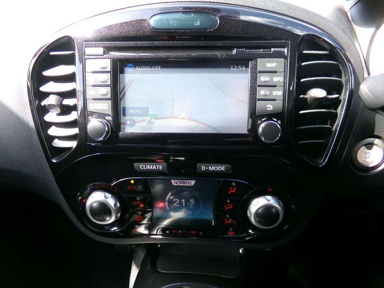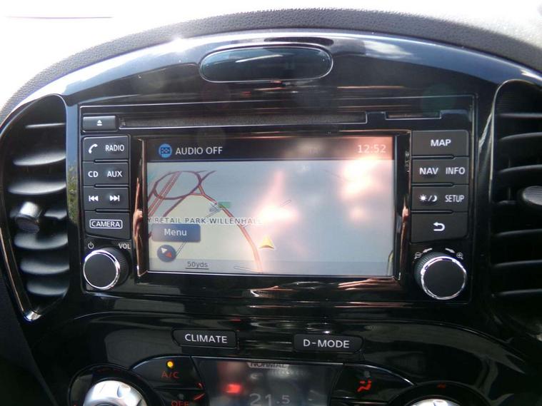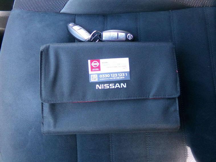 Bluetooth system, Colour rear view camera, Cruise control + speed limiter, Electric speed sensitive power steering, Nissan connect sat nav system, Push button starter, Service interval indicator, Trip computer, 6 speakers, Aux input, DAB Digital radio, Steering wheel mounted audio controls, Stereo radio/CD player and MP3 facility, USB port, 2 speed wipers+variable intermittent wipe, Automatic headlights, Body colour bumpers, Body colour door handles, Electric door mirrors, Electric folding door mirrors, Electric front/rear windows, Front fog lights, Heated door mirrors, LED daytime running lights, Privacy glass, Rain sensor, Rear wiper, 12V socket, 60/40 split folding rear seat, Artificial leather/suede upholstery, Climate control, Front armrest, Front cupholders x 2, Front door pockets with bottle holders, Front head restraints, Front seat belt pre-tensioners with load limiters, Gear shift indicator, Glovebox, Height adjustable driver's seat, Internal chrome door handles, Isofix child seat preparation, Leather steering wheel and gear knob, Luggage area under floor storage box, Map reading lamp, Passenger seat back pocket, Pollen filter, Rear headrests, Rear tonneau cover integrated into tailgate, Sports seats, Steering wheel rake adjustment, ABS + EBD + EBA, Child locks on rear doors, Driver and passenger airbags, Driver and passenger side airbags, ESP + traction control, Front and rear curtain airbags, Height adjustable front seatbelts, Passenger airbag deactivate switch, Three 3 point rear seatbelts, Tyre pressure monitoring system, VDC Dynamic Vehicle Control, Warning triangle and first aid kit, Alarm, Immobiliser, Intelligent Key, Remote central locking, 17" Sport alloy wheels, Tyre repair kit,