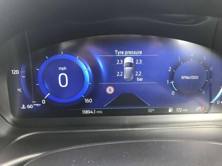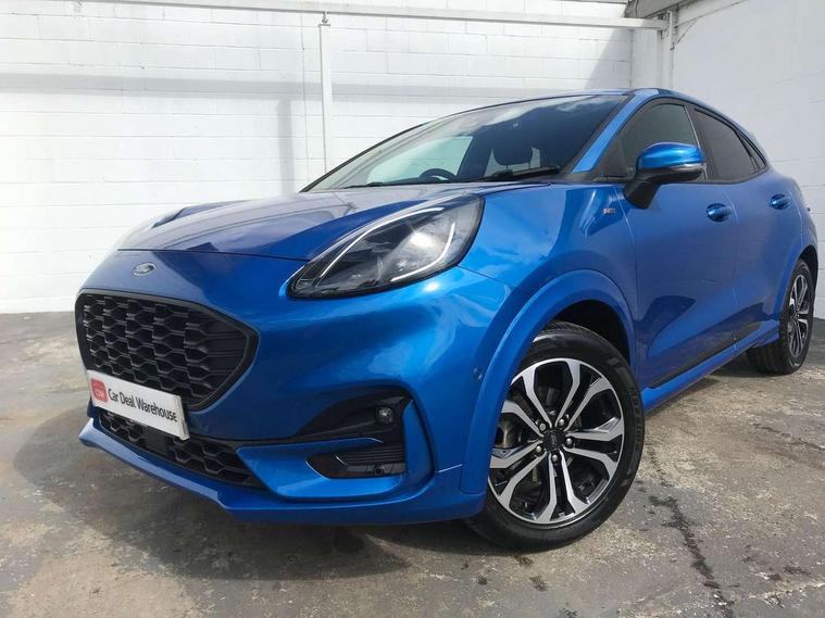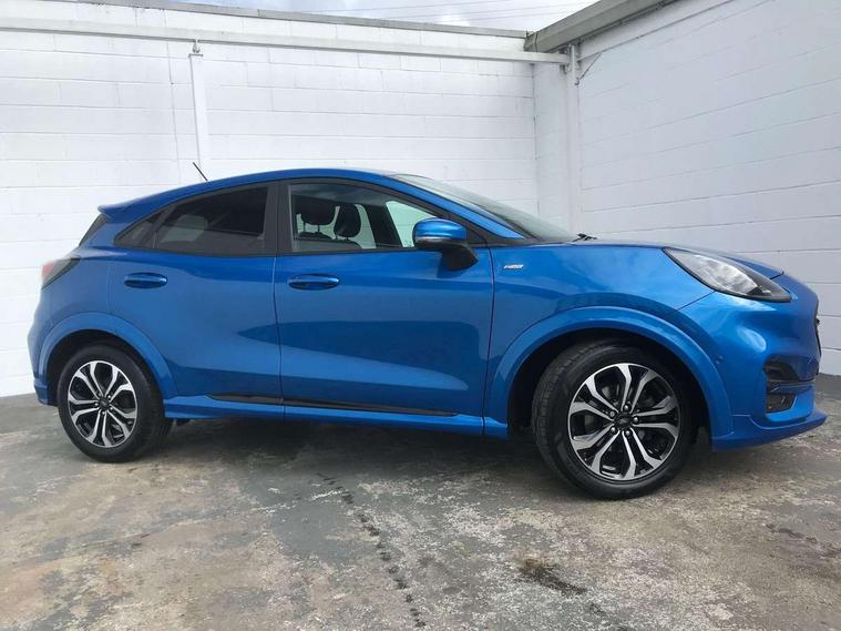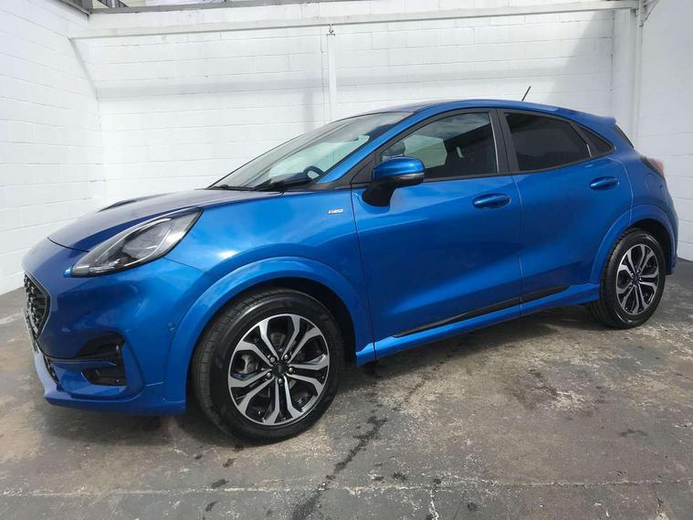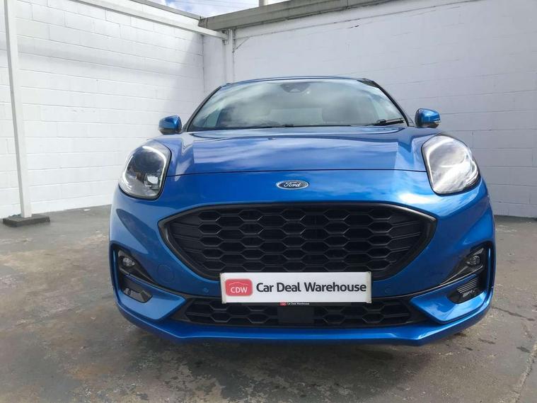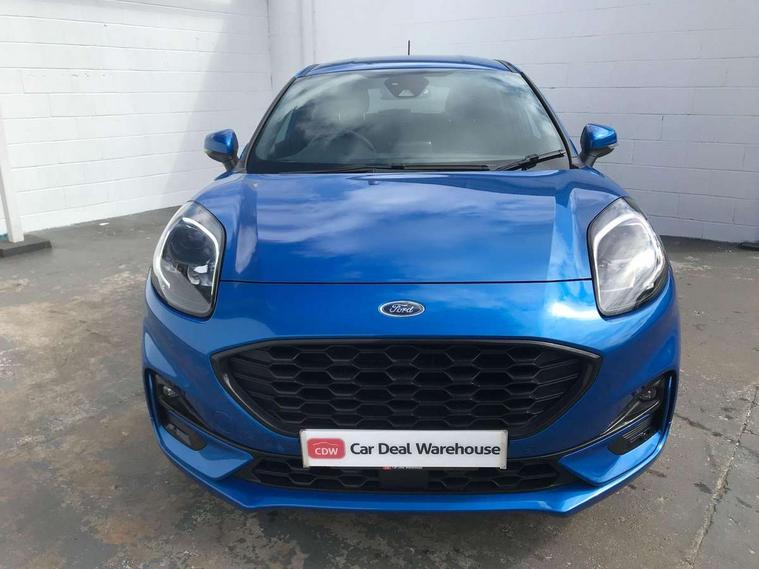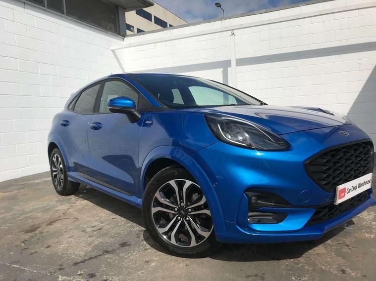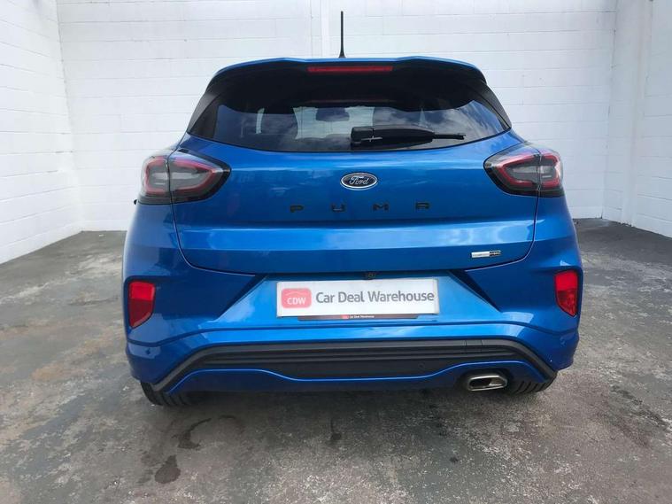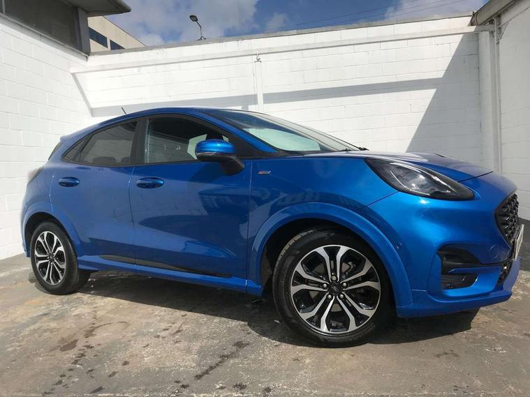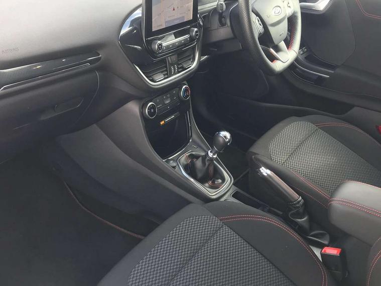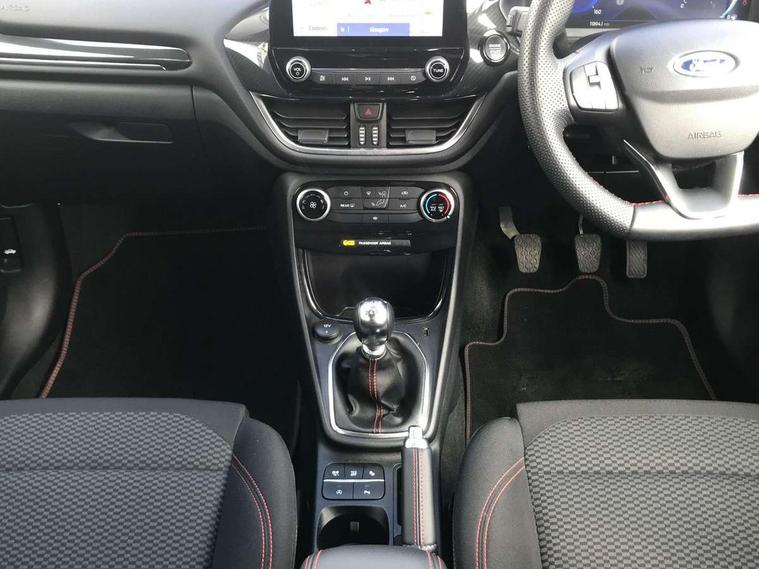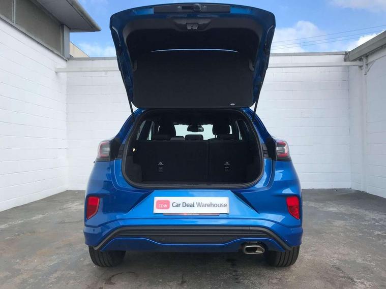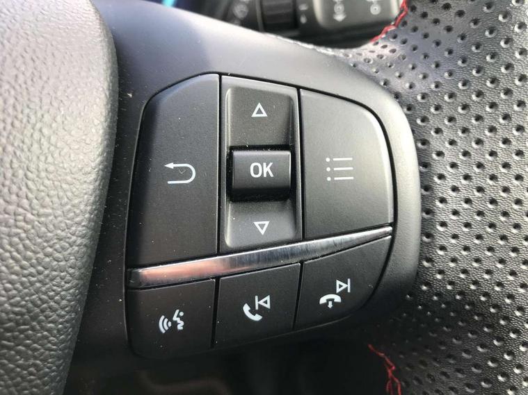 Driver impairment monitor, Emergency call service, Ford easy fuel, Full digital 12.3" instrument cluster, Lane keeping aid with lane departure warning, Power assist steering, Power start button, Rear parking sensor, Selectable drive modes(Normal, Eco, Sport, Slippery and Trail), Speed sign recognition, Sport suspension, Automatic headlights with auto high beam, Automatic rain sensing wipers, LED rear lamps, Power foldable heated door mirrors with puddle lamps, Projector headlamps with LED day time running lights and front fog lamps, Quickclear heated windscreen, Rear side wing doors, Rear wiper, ST-Line body styling kit with unique grille and large body colour rear spoiler, Third brake light, 3 seat bench in 2nd row, Centre console with armrest and stowage, Ford megabox extended bootspace, Front and rear head restraints, Front floor mats, Manual 2 way passenger seat adjustment, Manual 4 way driver seat adjust with lumbar adjustment, Single front passenger seat, ST- Line cloth trim with red stitching, ST-Line flat bottomed sensico leather steering wheel with leather handbrake and aluminium gear knob, Ford SYNC 3 navigation pack - Puma, 3 rear seatbelts, Child safety lock, Electronic stability control (ESC) and hill start assist, Pedestrian/cyclist detection & post-collision braking, Pre collision assist system, Tyre pressure monitoring system (TPMS), Thatcham alarm,