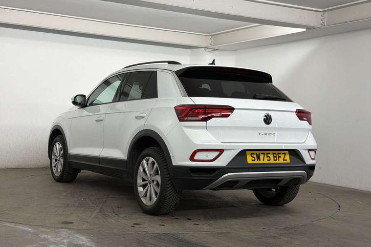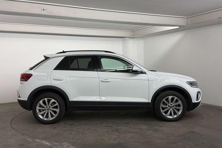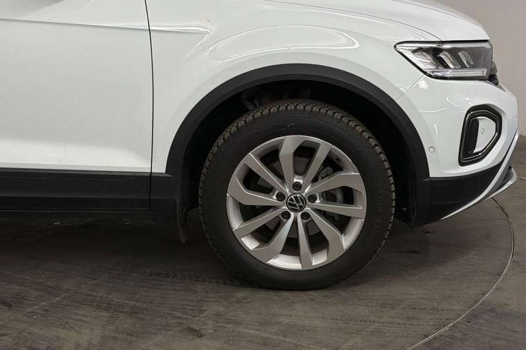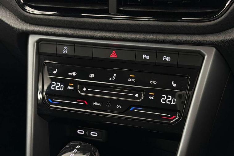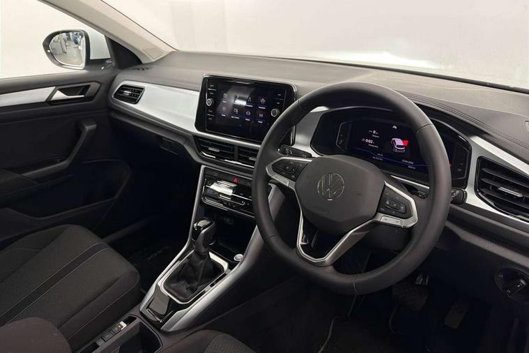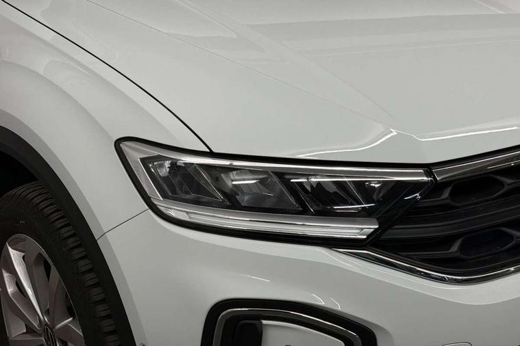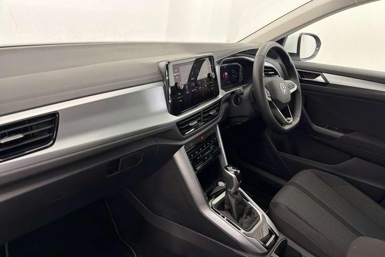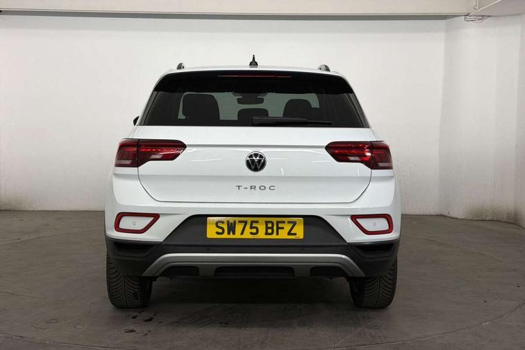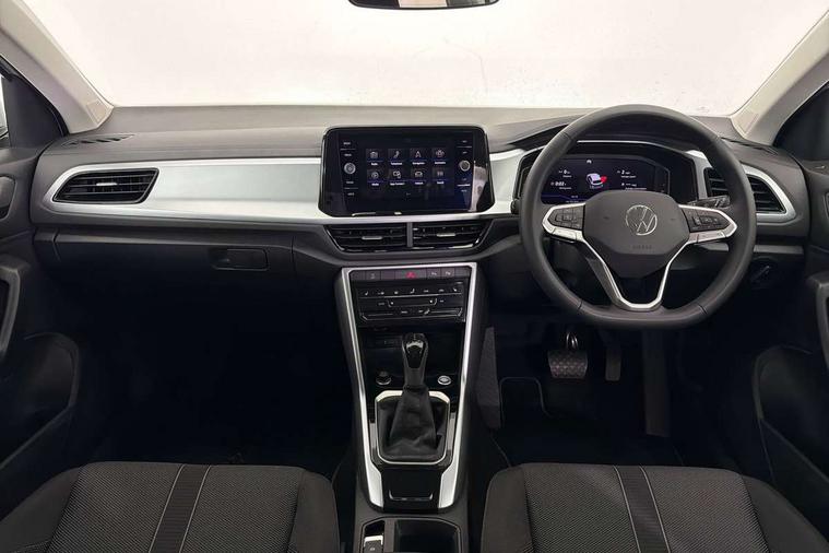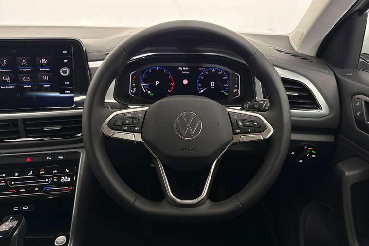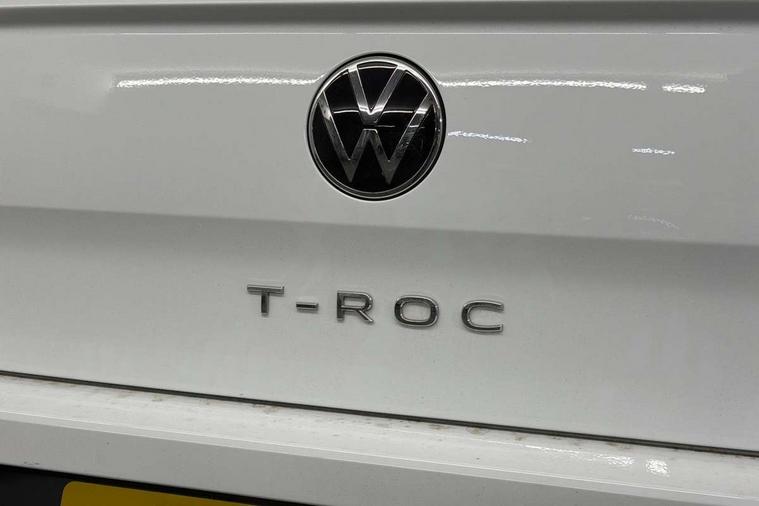 Advanced driver attention and drowsiness monitor, Dynamic road sign display, Emergency call service, Lane keeping system Lane Assist, Mobile phone interface, Modified key software - reduce switch off time for key status change to Long no motion, Online services, Park assist including front and rear parking sensors, Power assisted speed sensitive steering, Rear view camera, Service interval indicator, Tailgate/trunk lid release from outside, Think blue trainer driver tips and journey analysis, Warning sound and light for front seatbelts unfastened, Wireless app connect, Battery regeneration during braking, Front shock absorption, Rear shock absorption chassis with increased ride height, Start/stop function with battery regeneration, DAB Digital radio, Diversity antenna for FM reception, Music playback - MP3, WMA and AAC files, SD card slot, Simultaneous pairing of 2 compatible mobile devices, Title and cover art display, We Connect and We Connect Plus functionality, Auto dimming interior rear view mirror, Automatic hazard lights activation under emergency braking, Automatic headlight control with LED separate daytime running lights with coming/leaving home function, Black roof rails, Body coloured bumpers and radiator grille with chrome trim and front fog lamps with chrome bezel, Body coloured exterior mirror housings and door handles, Electrically adjustable and heated door mirrors, Extended roof spoiler, Exterior mirrors aspherical on driver side, convex on front passenger side, External USB type C socket and charging sockets, Front windscreen wiper with intermittent wipe and 4 position delay, Heated rear window, LED 3rd brake light, LED rear combination lamps, LED rear number plate lights, Power windows with comfort operation and circuit breaker, Privacy glass for rear side windows and rear window, Rain sensor, Rear exhaust tailpipe, Rear fog light on one side and reversing lights on both sides, Rear side wing doors, Rear wash/wipe with intermittent wipe setting, Remote electrically foldable door mirrors, puddle lights and reverse activated passenger's door mirror, 12V power socket in centre console, 3 rear head restraints, 3 seat bench in 2nd row, 4 load lashing points in luggage compartment, Air care climatronic air conditoning system with active combination filter and 2-zone temperature control, Black stitching for floor mats, Ceramique roof liner, Cloth upholstery, Door and side trim panel in cloth, Drawer under drivers seat, Driver/front passenger seat height adjustment, Front centre armrest, Front comfort sports seats, Front cupholders x 2, Front reading light, Front seat back storage pockets, Glove compartment door with light, Instrument lighting, white adjustable panel illumination, Interior ambient lighting and surround lighting, Interior light delay, Isofix child seat preparation, Leather gearshift handle, Load-through provision with cup holder when folded down ('Unsplit rear seat bench, split folding backrest, with centre armrest), Luggage compartment lighting, Lumbar support for driver's and front passengers seat, Non-folding front passenger seat backrest, Single front passenger seat, Storage compartment in left and right luggage area, Storage compartment in rear doors, Storage compartments in driver and front passenger doors, Sunvisors with illuminated vanity mirrors, Variable boot floor, height adjustable and removable, Driver assistance pack without proactive passenger protection - T-Roc Life/Match, 3 point height adj front seatbelts + pretensioners, 3 point seatbelts in outer rear with ECE label, ABS, Child locks on rear doors, City emergency braking and pedestrian monitoring, Driver and front passenger airbag with front passenger airbag deactivation, Driver and front passenger safety-optimised head restraints, Drivers seatbelt reminder, Electronic parking brake, Electronic Stability Control (ESC) inc EDL (Electronic Differential Lock) and ASR (Traction Control), Front and rear passengers curtain airbag system including front side airbags, Front disc brakes, Hill start assist, Predictive pedestrian protection, Rear disc brakes, Two tone horn, Tyre pressure loss indicator, Volkswagen roadside assistance, Alarm with interior protection, Keyless locking and starting system keyless access with safelock, Pewter matt decorative inserts for intrument panel, centre console and door panels at the front, Trims for alloy wheels,