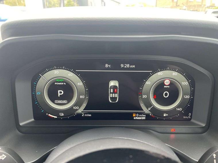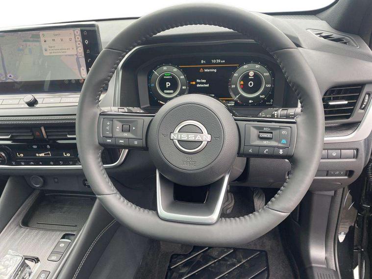 360 degree Intelligent around view monitor with moving object detection, Advanced windscreen head up display, Blind spot warning, Drive assist custom mode, Drive modes (sport, normal, eco), Driver drowsiness and attention warning, e-Pedal step, Electric speed sensitive power steering, Emergency and breakdown call, Emergency lane keep assist, Emergency Stop Signal (ESS), Engine start/stop button, EV mode switch, Event data recorder, Front and rear parking sensors, Full Digital 12.3" TFT Digital Combimeter, Google virtual personal assistance, Hands free power tailgate, Idle stop/start system, In-car WIFI hotspot, Intelligent Cruise control (ICC), Intelligent driver alert system, Intelligent forward collision warning, Intelligent lane intervention, Intelligent speed assist, Lane departure warning system, Nissan connect 12.3 inch touchscreen infotainment system, Nissan connect navigation with google maps, Nissan connect services 2.0 (Google Automotive System), Outside temperature sensor, Propilot assist with Navi-Link, ProPilot park, Rear cross traffic alert, Remote control services - door locks, lights, horn and car locator, Reversing detection, Traffic jam pilot, Traffic sign recognition with legal speed adjustment, Trip computer, Wireless Apple CarPlay/Android Auto, Wireless charging pad, Limited slip differential, 2 front USB-C ports, 2 rear USB-C ports, 6 speakers, AM/FM audio system with DAB, Bluetooth audio streaming, Auto dimming frameless rear view mirror, Auto rear wiper when reversing, Body colour mirror caps, Body coloured door handles, Bodyside mouldings, Chrome side window finisher, e-POWER badging, Electric auto folding door mirrors, Electrically adjustable and heated door mirrors with LED turn indicator, Follow me home headlights, High beam assist, Intelligent auto headlights, LED 3rd brake light, LED daytime running lights, LED headlights with adaptive driving beam, LED rear lights, LED sequential turn lights, One touch front and rear electric windows with remote opening and closing, One touch passenger window, Partially body coloured bumpers, Rain sensing wipers, Rear privacy glass, Rear roof spoiler, Rear side wing doors, Rear styling plate, Reverse tilting door mirrors, Shark fin antenna, Silver roof rails, Splash free rain sensing wipers, Super RED rear LED lights, Super UV and infrared cut glass, Thermaclear heated windscreen, 12v power socket in dashboard and luggage, 3 bench rear seats in 2nd row, 3 rear headrests, 60/40 split folding rear seat bench, Chrome interior door handles, Dark headlining, Driver and passenger sunvisors with illuminated vanity mirrors, Driver seat back pocket, Dual zone automatic climate control with pollen filter, e-POWER shifter, Electrically adjustable driver seat, Electrically adjustable lumbar support for driver, Fixed Glass roof with electric sunshade, Front centre console and armrest, Front cupholders, Front door with bottle holders, Heated front seats, Heated steering wheel, Height adjustable front headrests, Height adjustable passenger seat, Luggage board system, Luggage space lighting, Manual adjustable lumbar support for passenger, Multifunction steering wheel, Passenger seat back pocket, Quilted/PVC upholstery, Rear door bottle holders, Rear seat armrest with 2 cupholders, RGB ambient light (Full area coverage), Single front passenger seat, Smooth leather steering wheel, Tilt/telescopic adjustable steering wheel, Two rear isofix child seat anchorage points with top tether, 3x3 point rear seatbelt pretensioners + load limiters, ABS with EBD and brake assist, Autonomous emergency braking, Child locks on rear doors, Curtain and front side, far side airbags, Driver and passenger airbags, Driver, passenger and 2nd row rear seat belt reminder, Electric handbrake with auto hold function, Front seatbelt pretensioners + load limiters, Height adjustable front seatbelts, Hill start assist, Intelligent blind spot intervention, intelligent front emergency braking, Intelligent rear automatic braking, Tyre pressure monitoring system, Vehicle dynamic control, Engine immobiliser, Intelligent key with walk away lock and approach unlock functions, Remote central door locking with deadlocking, Thatcham alarm, 19" Diamond cut alloy wheels, Tyre puncture repair kit,