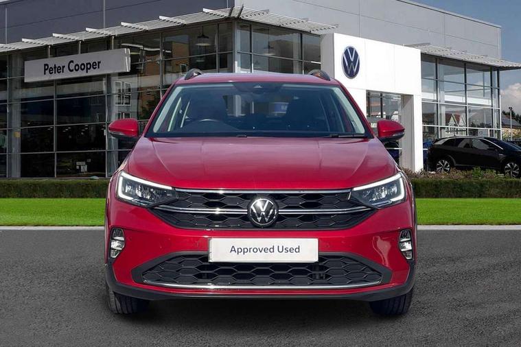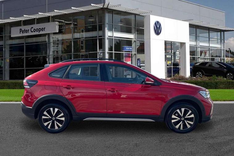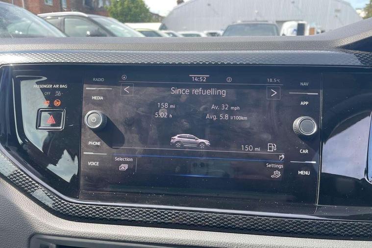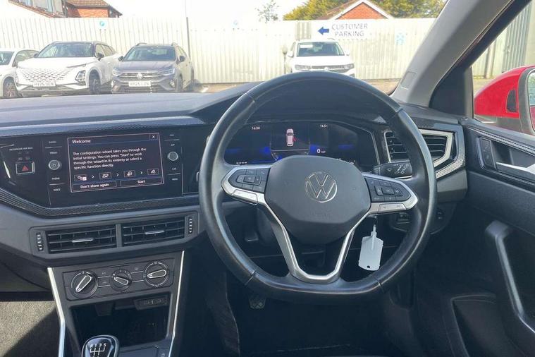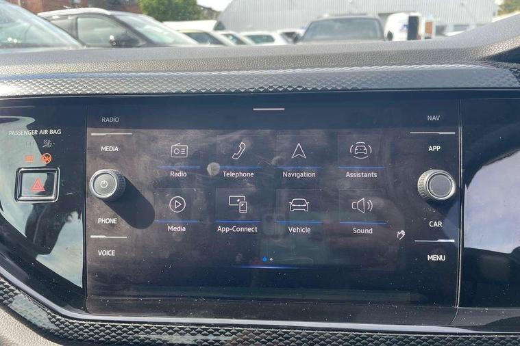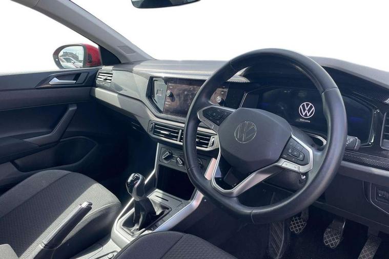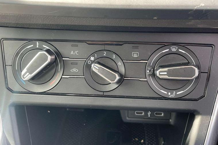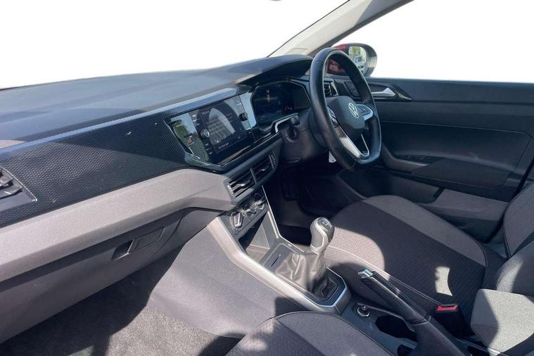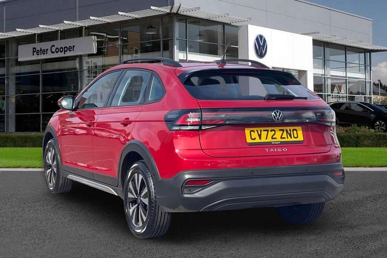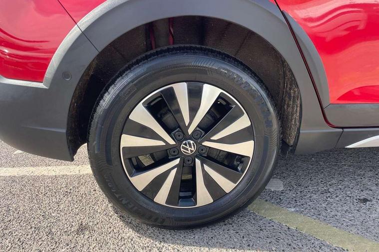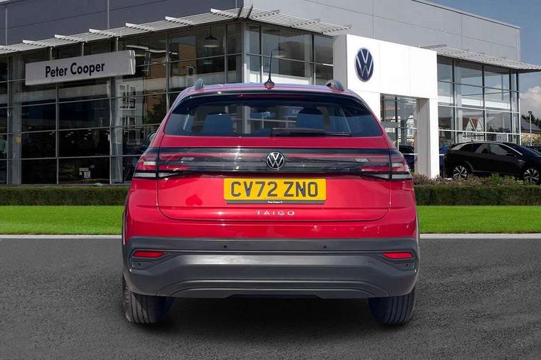 Driver alert system, e-Call (emergency call), Power Steering, Travel assist including emergency assist, Washer fluid level indicator, Wireless Charging including Bluetooth, Start-stop system with battery regeneration (recuperation - energy recovery during braking), WeConnect plus, Ambient lighting with logo projection, Aspherical driver's exterior mirror, Auto headlights, Body coloured bumpers, Body coloured exterior mirror housings and door handles, Electric windows, External USB type C socket and charging sockets, Front fog lamps with cornering function, Headlight range control, Heat insulating glass windscreen, LED headlamps, LED rear combination lamp, LED third brake light, Left convex exterior mirror, Power folding adjustable/heated exterior mirrors and front passenger exterior mirror lowering function, Rear fog light on one side, reversing light on both sides, Rear side wing doors, Rear wash/wipe with intermittent wipe setting, 'Slash/ Austin' Cloth upholstery, 12V socket in centre console, 2 front reading lights, 3 rear head restraints, 3 seat bench in 2nd row, Black carpets, Child seat anchor for child seat system i-Size, 2x top tether and child seat anchor in front on front passenger side, Door and side trim panels in titan black, Driver and front passenger seat height adjustment, Front centre armrest, Handbrake lever handle in leather, Height and reach adjustable steering wheel, Leather trimmed gear knob, Leather wrapped multifunction steering wheel, Luggage compartment floor, Luggage compartment light, Lumbar support for driver's and front passengers seat, Seat covers in titanium black, Single front passenger seat, Split folding backrest with centre armrest and unsplit rear seat bench, Storage compartment under front seats, Sun visors with illuminated vanity mirrors, Chrome Package - Taigo, Drivers assistance pack - Taigo, Light and Sight pack including High beam assist - Taigo, 2 x 3-point seatbelts/outer rear seats with ECE label, 3-point seat belts in front with pretensioner and height adjustment, 3-point seatbelt for centre rear seat, Driver and front passenger airbags with front passenger airbag de-activation, front side and curtain airbags, Driver and front passenger safety-optimised head restraints, Electronic stability control, Extended and predictive pedestrian/ cyclist protection, Front and rear disc brakes, Front curtain and side airbags with center airbag, Hill start assist, Manual rear child locks, Single tone horn, Tyre pressure loss indicator, Anti-theft alarm system with interior monitoring, backup horn, and towing protection, Anti-theft wheel bolts, Lava stone black gloss/matt decorative inserts in dash and front door panels, Low rolling resistance tyres,