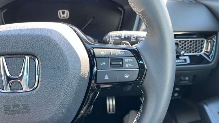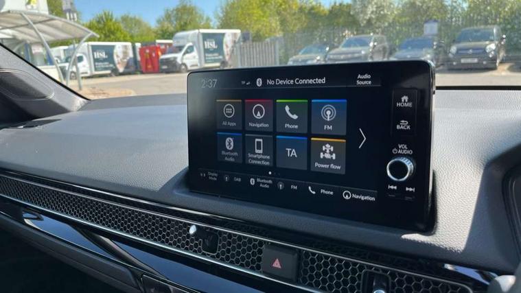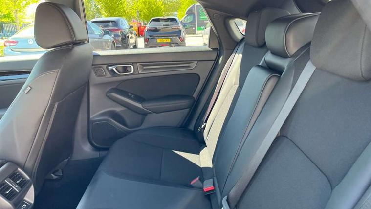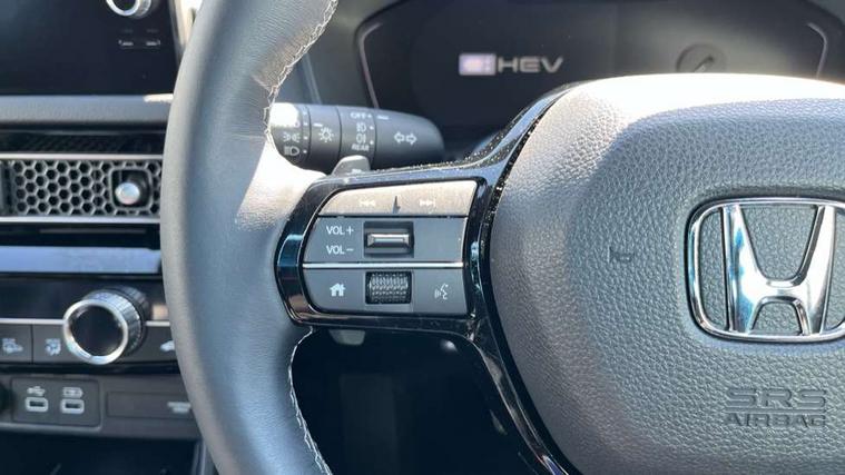 7" Multi information display screen, Adaptive cruise control, Adaptive motion for electric power steering, Adjustable speed limiter, Agile handling assist, BLIS (Blind Spot Information System) with Cross Traffic Monitor, Bluetooth hands free telephone connection, Driving modes, Economy mode, Electric power steering wheel with variable gear ratio steering, Emergency call service, Emergency stop signalling system, Forward collision warning, Front and rear parking sensors, Honda CONNECT with Navigation 9" touchscreen, AM/FM/DAB, Apple Carplay and Android Auto, live traffic info, Honda sensing, Idle stop, Intelligent speed limiter, Lane departure warning system, Lane keep assist, Low speed following, Power meter, Rear parking camera, Road departure mitigation, Smartphone wireless charging plate, Tailgate, Traffic jam assist, Traffic sign recognition, Wireless apple carplay, Vehicle stability assist, 'Shark fin' mobile antenna, 2x USB Front socket (1 data & 1 charge), 8 Speakers, Digital Audio Broadcast (DAB) Tuner, Front tweeters, Steering wheel mounted audio controls, Aspherical driver door mirrors, Auto dimming rear view mirror, Auto headlight adjuster, Auto headlights, Automatic coming/leaving home lighting function, Automatic rain sensing wipers, Black window frames, Body colour door handles, Electric adjustable heated door mirrors, Electric front and rear windows, Electrically folding door mirrors, Headlight extension black, High beam assist, High level LED brake light, LED daytime running lights, LED front fog lights, LED front turn type, LED Headlights, LED rear lights, Low gloss black window garnish, Material finish grille, Pop up hood, Privacy glass, Rear side wing doors, Rear wiper, Single hidden exhaust pipe, Variable front intermittent wipers, 3 seat bench in 2nd row, 60/40 split folding rear seat, Cargo accessory power socket, Cargo net hooks, Driver and front passenger seat armrests, Driver's electric lumbar adjustment, Driver's seat height adjustment, Dual climate control air conditioning system, Fabric/synthetic leather upholstery, Front accessory power socket, Front map lights, Front/rear courtesy lights, Glovebox light, Heated front seats, Hybrid emblem, Isofix points/i size, Leather steering wheel, Meter Illumination white, Passenger seat back pocket, Platinum chrome interior door handles, Rear air vents, Rear head restraints, Rear reading lights, Rear seat centre armrest, Single front passenger seat, Stainless steel sports pedals, Sunvisors with illuminated vanity mirrors, Tilt/telescopic adjustable steering wheel, Tonneau cover, Trunk light, USB Rear number 2 x charge, White ambient roof light, 3x3 point rear seatbelts, ABS+EBD+Brake assist, Airbags - driver and front passenger, Airbags - Knee (AS), Airbags - Knee (DR), Anti-whiplash front headrests, Brake hold function, Collision mitigation braking system, Collision mitigation throttle control, Deflation detection system, Driver SRS airbag (single stage inflation), Electronic parking brake with auto hold, Front and rear curtain airbags, Front and rear seat belts with emergency locking retractor (ELR), Front centre airbag, Front side airbags, Hill start assist, Low speed brake system, Manual child lock in rear doors, Passenger airbag deactivate switch, Rear airbags, Regenerative braking/deceleration paddle control, Immobiliser, Mirrors and windows key fob, Remote central locking with 2 jack knife keys, Security alarm, Selectable door unlock, Smart entry + Smart start, Superlocking, Tilt sensors, Ultrasonic security sensor, Tyre repair kit,