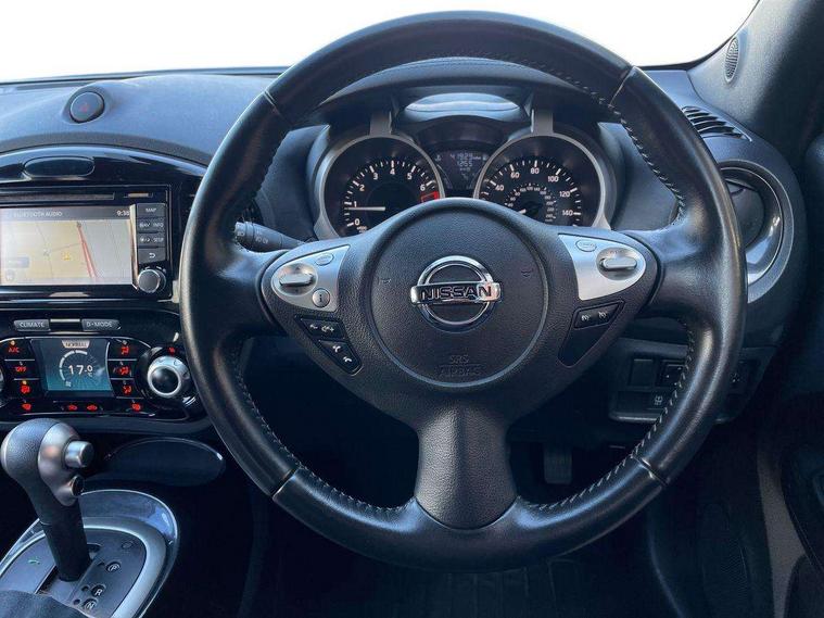 Around View Monitor, Blind spot monitoring, Bluetooth system, Colour rear view camera, Cruise control + speed limiter, Door/boot open warning light, Dusk sensor, Electric speed sensitive power steering, Exterior temperature gauge, Lane departure warning system, Low fuel level warning light, Moving object detection, Nissan connect sat nav system, Push button starter, Service interval indicator, Trip computer, 6 speakers, Aux input, Bose personal sound system, DAB Digital radio, Steering wheel mounted audio controls, Stereo radio/CD player and MP3 facility, USB port, Automatic headlights, Body colour bumpers, Body colour door handles, Body colour door mirrors, Dark chrome grille, Electric door mirrors, Electric folding door mirrors, Electric front/rear windows, Heated door mirrors, Heated rear windscreen, LED daytime running lights, LED front fog lights, LED indicators in door mirrors, Privacy glass, Rain sensor windscreen wipers, Rear wiper, 12V socket, 3 height adjustable rear headrests, 60/40 split folding rear seat, Climate control, Driver/passenger reading lights, Driver/passenger sunvisors and vanity mirrors, Front armrest, Front cupholders x 2, Front door pockets with bottle holders, Front head restraints, Front seat belt pre-tensioners with load limiters, Gear shift indicator, Glovebox, Heated front seats, Height adjustable driver's seat, Interior courtesy lights, Internal chrome door handles, Isofix child seat preparation, Leather steering wheel and gear knob, Leather upholstery, Luggage area under floor storage box, Map reading lamp, Passenger seat back pocket, Pollen filter, Rear tonneau cover integrated into tailgate, Sports seats, Steering wheel rake adjustment, ABS + EBD + EBA, Child locks on rear doors, Driver and passenger airbags, Driver and passenger side airbags, ESP + traction control, Front and rear curtain airbags, Height adjustable front seatbelts, Passenger airbag deactivate switch, Three 3 point rear seatbelts, Tyre pressure monitoring system, VDC Dynamic Vehicle Control, Warning triangle and first aid kit, Alarm, Immobiliser, Intelligent Key, Remote central locking, 17" Urban alloy wheels, Tyre repair kit,