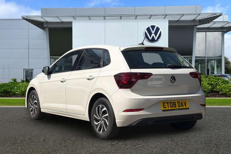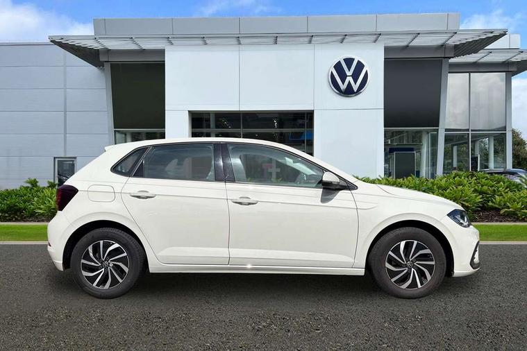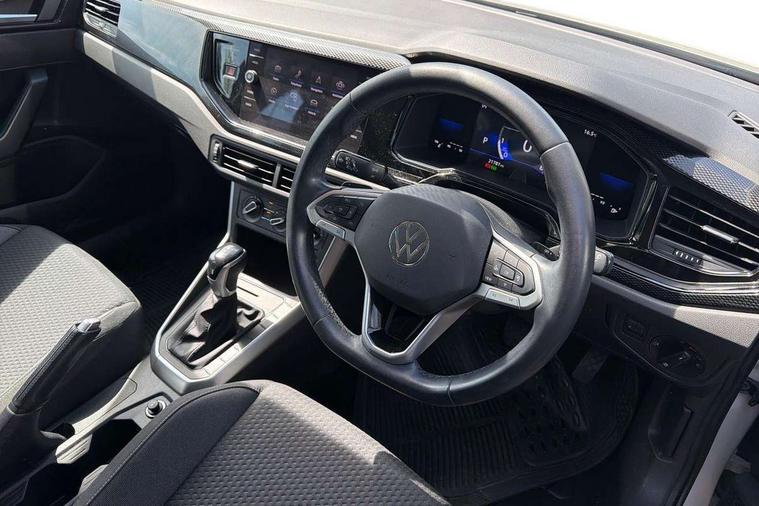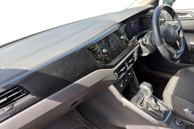 Adaptive cruise control with follow-to-stop and speed limiter, Bluetooth mobile phone interface, Driver alert system, Emergency call service, Front assist system, Power assisted speed sensitive steering, Preparation for We connect and We connect plus, Speedo and rev counter, electronic odometer, trip, service interval display and fuel gauge, Standard rear axle, Travel Assist - Lane keeping system and traffic jam assist, Travel assist including emergency assist, Trip computer, Warning signal and warning light for front and rear seatbelts not fastened, Washer fluid level indicator, Wireless app connect, Front wheel drive, Rear shock absorpion, Start-stop system with battery regeneration (recuperation - energy recovery during braking), DAB Digital radio, Diversity antenna for FM reception, Front and rear 6 speakers, Automatic dimming interior rear view mirror, Body colour bumpers, Body colour door handles, Body colour door mirrors, Chrome plated radiator grille inserts, air vent surrounds and light switch surrounds, Electric front windows, Heat insulating glass in side and rear windows, Heat insulating glass windscreen, Power folding adjustable/heated exterior mirrors and front passenger exterior mirror lowering function, Rain sensor, Rear electric windows, Rear fog light, Rear side wing doors, Rear windscreen washer and wiper with interval delay, Third brake light, 12V power socket in centre console, 2 front and 2 rear reading lights, 2 USB-C ports in the front, 2 USB-C charging sockets on the center console in the rear, 3 rear head restraints, 60/40 split folding rear seat and rear seat bench not split, Ceramique headliner, Door and side trim panel, Driver and front passenger seat height adjustment, Driver/passenger sunvisors with illuminated vanity mirrors, Front centre armrest, Front seat backrest storage pockets, Front standard seats, Handbrake lever handle in leather, Hartley/Thomas cloth upholstery, Isofix child seat preparation easy-fit (for two outer rear seats, and front passenger seat) compatible with I-size, Leather trimmed gear knob, Luggage compartment cover, Luggage compartment floor, Luggage compartment lighting, Single front passenger seat, Standard pedal cluster, Three spoke leather wrapped multifunction steering wheel with shifting paddles, Light and vision pack - Polo, 3 point height adj front seatbelts + pretensioners, 3x3 point rear seatbelts, ABS, Driver and front passenger airbag with front passenger airbag deactivation, Drivers and front passengers safety optimised head restraints, ESC (Electronic stability control) + EDL (Electronic Differntial lock) and ASR (Traction control), Extended and predictive pedestrian/ cyclist protection, Front curtain and side airbags with center airbag, Front disc brakes, Hill hold control, Manual child lock in rear doors, Rear drum brakes, Single tone horn, Tyre pressure loss indicator, Alarm with interior protection, Anti-theft alarm system with interior monitoring, backup horn, and towing protection, Anti-theft wheel bolts, Electronic engine immobiliser, Lava stone black gloss/matt decorative inserts in dash and front door panels, Low rolling resistance tyres,