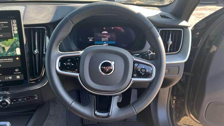 11.2" centre console touch screen, 12.3" Progressive Driver Display, 360 degree surround view parking camera with side proximity sensors, Adaptive cruise control, Adjustable steering wheel force, Android auto (Wired), Apple carplay (wired), Bluetooth handsfree system, Driver alert control with lane keeping aid, Emergency services call system, Front and rear park assist, Google Automotive Services, Intelligent speed assistance, Oncoming Lane Mitigation, PAS, Power operated tailgate with handsfree opening and closing, Service interval indicator, Speed limiter, Speed sensitive steering, Trip computer, Volvo cars services with app, Volvo on call with App, Wireless/Inductive Mobile Phone Charging, 8 speed automatic transmission with start/stop + manual change functions, DAB Digital radio, Premium Sound by Harman Kardon, dirac unison, dolby pro logic II surround sound, 13 speakers/600W output and fresh air subwoofer, Steering wheel remote infotainment controls, Adaptive brake lights with high level LED brake lights, Auto dimming interior + exterior mirrors, Automatic headlight levelling system, Automatic LED Headlights + Active high beam incorporating daytime running lights, Dark tinted windows for rear side windows and cargo area, Electric adjustable/heated/auto power folding door mirrors, Electric front+rear windows, Front aluminium tread plates, Heated front windscreen, High gloss black door mirrors and window surround, High gloss black front and rear bumper decoratives, High gloss black front grille, Surround, Strikethrough and Ironmark, High gloss black rear model, engine and volvo logo badges, Home safe and approach lighting, Integrated roof rails in high gloss black, Puddle lights, Rain sensor with automatic windscreen wiper activation, Rear side wing doors, Rear wiper, Roof antenna, Roof spoiler, Tinted windscreen, Visible VIN plate, 12V socket in front tunnel console and luggage compartment, 3 seat bench in 2nd row, 3 Spoke tailored steering wheel with chrome trim, 4 Zone electronic climate control, A-pillar parking ticket holder, Air purifier particulate matter (PM) 2.5 filter, B Pillar ventilation, Bright metal luggage scuff plate, Centre console cupholders and storage, Charcoal floor mats, Contour sports seats with nappa soft leather/textile upholstery, Front and rear courtesy lights, Front and rear door pocket illumination, Front cupholder illumination, Front footwell illumination, Front reading lights, Front seat cushion extensions, Glovebox compartment with illumination, Head restraints for all seats, Heated front seats, Heated steering wheel, Height/reach adjustable steering column, Illuminated luggage compartment, Illuminated vanity mirrors + ticket holder, Inner door release handle illumination, ISOFIX attachment on outer rear seats, Load cover, Load protection net, Multi directional lumbar support, Power driver seat with memory + exterior mirrors memory, Power height adjustable passenger seat, Power passenger seat with memory, Rear armrest with cupholder, Rear footwell and front and rear side step illumination, Rear reading lights, Rear seat concealed storage, Single front passenger seat, Tailgate illumination and ambient door lighting, Underfloor stowage compartment, Versatile split folding rear seat - 60/40, Driver assist pack without Adaptive cruise control - XC60, 5 three point seatbelts, City safety with steering support with Pedestrian + cyclist + front collision warning with full auto brake and rear auto brake, Drivers knee airbag, Dual stage driver/passenger airbags, Electronic parking brake with auto hold, First aid kit, Front seats SIPS airbags, Hill descent control - Off-road drive mode, Hill start assist, IC (Inflatable Curtains) - Full Length, Passenger airbag cut-off device, Power child locks on rear doors, Road sign information display, Run off Road Mitigation, Run off Road Protection, Seatbelt reminder and pretensioners, SIPS (Side Impact Protection System), Slippery road and hazard light alert, Stability and Traction Control with Spin control, Engine Drag Control and Corner Traction Control, Tyre pressure monitoring system, Vehicle deceleration control with Anti-lock Brake System, Electronic Brake Distribution and Emergency Brake Assist, Warning triangle, WHIPS whiplash protection system - front, Anti-theft alarm including immobiliser/volume sensor + level sensor, Key integrated remote control central locking + fuel flap with deadlocking system and auto open/close power windows, Keyless Drive (includes Keyless Entry and Keyless Start), Locking wheel nuts, Private locking for tailgate, 21" 5 Double spoke high gloss black alloy wheels, Summer tyres,