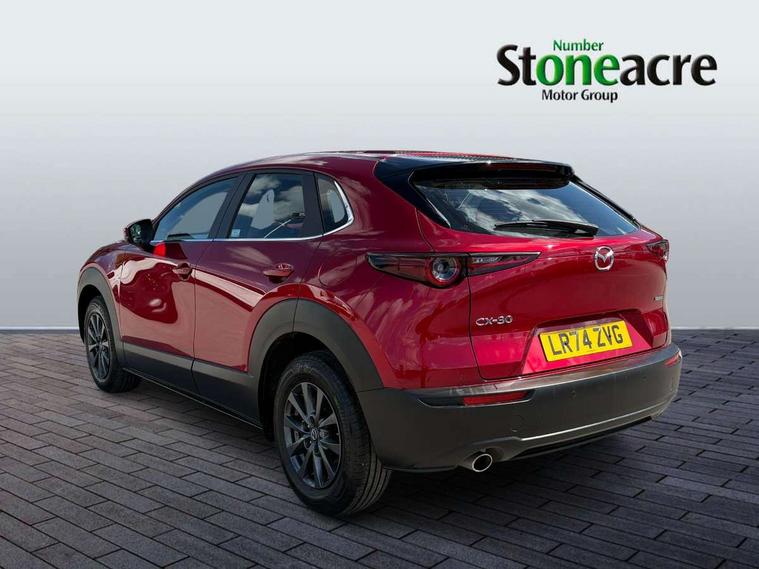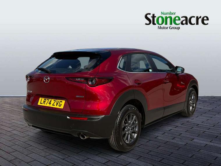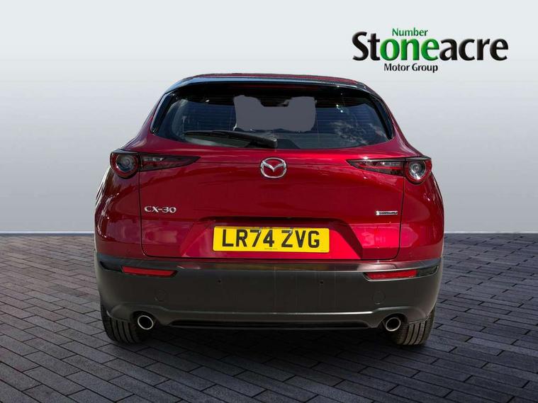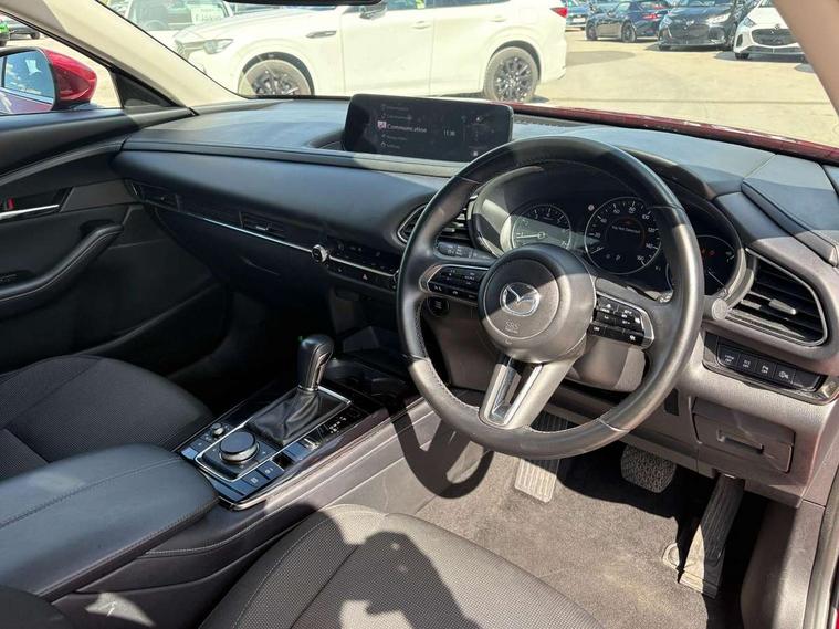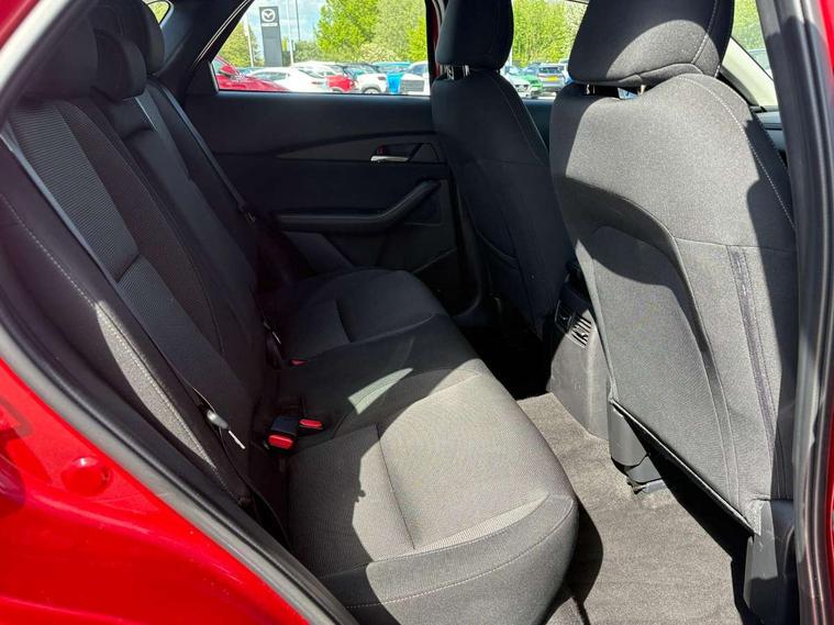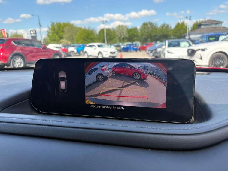 10.25" display with Mazda Connect infotainment, 7" TFT Colour driver instrument panel display, Adaptive cruise control (Mazda radar cruise control) features stop and go, Blind spot monitoring with rear cross traffic alert, Drive mode selector, Driver attention alert system, E-call with GPS, Emergency stop signalling system, Engine start/stop button, Front and rear parking sensors, Integrated bluetooth, Integrated Mazda navigation system, Intelligent speed assist, Lane keep assist system (LAS) with Lane departure warning system (LDWS), Mazda connected services, PAS, Qi wireless charging, Reversing camera, Service indicator, Tailgate, Traffic sign recognition, Trip computer, Windscreen projected colour active driving display (HUD), Wireless Apple CarPlay/Android Auto, Cylinder Deactivation, i-stop, 2 USB charging ports in front inner central armrest, AM / FM / DAB radio with 8 speakers, Multimedia Commander including separate volume dial, Steering wheel mounted audio/bluetooth controls, B-pillar and C-pillar garnishes in satin black finish, Auto dimming driver's door mirror, Auto dimming rear view mirror, Auto headlight levelling, Body coloured, electrically adjustable, heated auto power folding door mirrors with integrated indicators, Chrome finish signature wing in front grille, Coming/leaving home lighting function, Dual chrome exhaust, Dusk sensing headlights, Electric front/rear windows with one touch auto up/down, Front kodo turn signal, Gloss black rear roof spoiler, LED headlights with halogen daytime running lights and high beam control, LED rear combination lights, Rain sensing front wipers with adjustable speed and intermittent wipe, Rear fog lights, Rear side wing doors, Rear wiper, Satin black front grille, Third brake light, 12V power outlet in centre console, 3 seat bench in 2nd row, 60/40 split fold down rear seats, Chrome interior trim accents with steering wheel centre bezel, surround of engine start / stop button and glove box handle, Cloth upholstery with interior accents, Dark cloth door panel inserts, Dashboard, door cards and front centre armrest in black cloth, Driver and front passenger visors with covered vanity mirror and driver ticket holder, Driver seat manual slide, recline, height and seat tilt adjust, Driver, front passenger and two rear door storage, Driver, Front passenger and two rear grab handles with coathooks, Dual zone climate control air conditioning with rear air vents, Folding rear centre armrest with two cup holders, Front and rear (x3) head restraints, Front and rear LED lighting, Front armrest, Front centre storage with two cupholders, Front passenger seatback pockets, Front passengers seat manual slide, recline and height adjustment, Gear shift indicator, Glovebox illumination, Heated front seats with 3 stage setting, ISOFIX child seat anchorage points attached on outer rear seats, Leather wrapped gear shift knob, Leather wrapped steering wheel with telescopic and tilt adjustment, LED luggage compartment lighting, Light roof headlining and pillars, Roof mounted sunglasses holder, Single front passenger seat, 3 point ELR front seat belts x2 with pretensioners, 3 point ELR rear seat belts, Anti-lock braking system (ABS), Drivers knee airbag, DSC - Dynamic Stability Control, Electronic parking brake with auto disengage function and auto hold function, Front and rear curtain airbags, Front dual stage driver and single stage front passenger airbags, Front passenger airbag cut-off switch, Front side airbags, Front smart city brake support, G-Vectoring control plus, Hill launch assist, Manual child lock in rear doors, Mild Hybrid system with regenerative braking, Seatbelt reminder for driver/front passenger and rear seats, Traction control system (TCS), Tyre pressure monitoring system (TPMS), Remote central locking with deadlocking and automatic door lock when driving, Smart keyless entry, Thatcham accredited alarm and immobiliser, 16" Grey metallic alloy wheels, Emergency tyre repair kit,