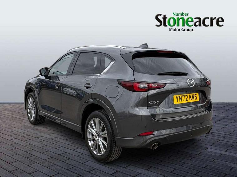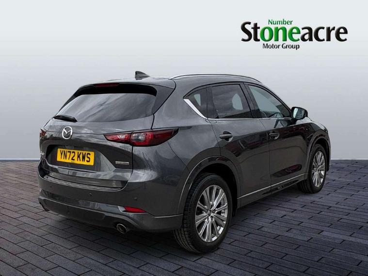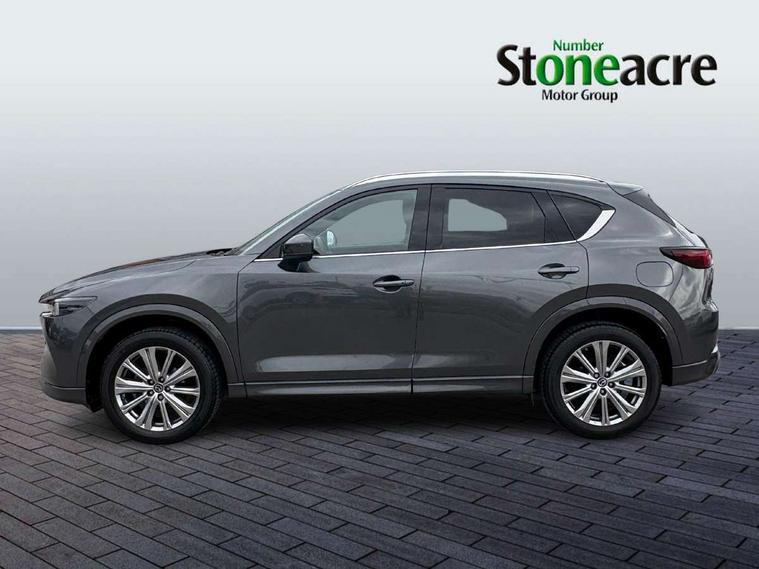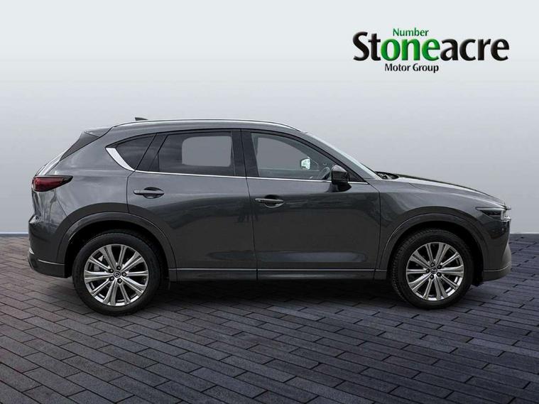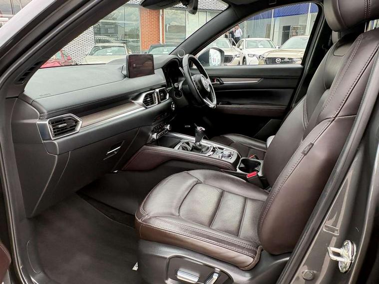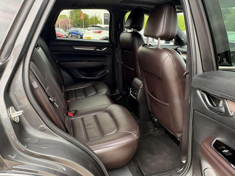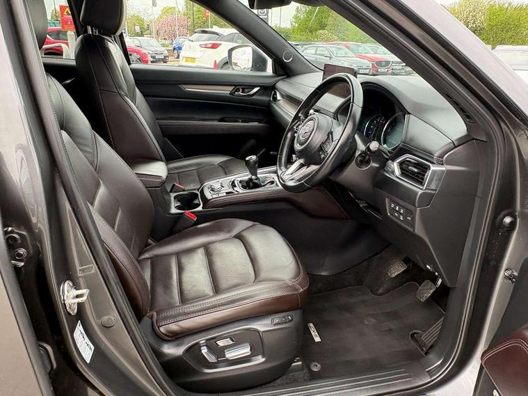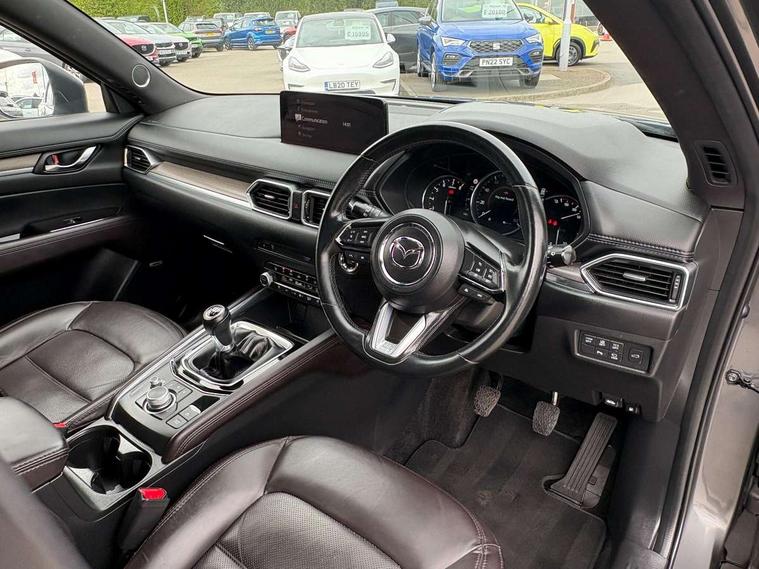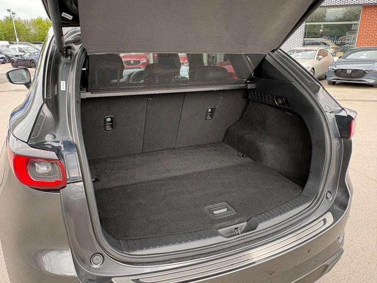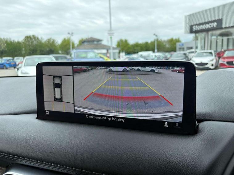 10.25" display with Mazda Connect infotainment, 360 degree surround camera, 7" colour TFT display, Apple car play/Android Auto, Blind spot monitoring with rear cross traffic alert, Bluetooth connectivity with voice control, Collision prevention assist, Connected services, Cruising Traffic Support, Driver attention alert system, Electric power steering, Emergency stop signalling system, Engine start/stop button, Forward collision warning, Front and rear parking sensors, Integrated navigation system, Intelligent speed assist, Lane departure warning system, Lane keep assist, Power liftgate, Qi wireless phone charging, Radar cruise control, Service indicator, Traffic sign recognition (TSR), Trip computer, Windscreen projected colour active driving display (HUD) with memory, Cylinder Deactivation, i-stop, 2 USB sockets in rear, 2x USB sockets in front, AM/FM radio, Bluetooth audio streaming, Bose premium sound system with 10 speakers, DAB Digital radio, Multimedia Commander including separate volume dial, Steering wheel mounted audio controls, Adaptive LED Headlights, Automatic headlights, Body colour door mirrors, Body colour roof spoiler, Body coloured front and rear lower bumper mouldings, Body coloured tire arch and side mouldings, Bright finish signature wing, Coming/leaving home lighting function, Door mirror integrated indicators, Dual large chrome tailpipes, Dusk sensitive headlamps, Electric front/rear windows with one touch auto up/down, Frameless auto dimming interior rear view mirror, Front grille in gloss black finish, Gloss black B and C pillars garnish, Gloss black front grille accent, High beam assist, Intermittent rear wash/wipe, LED auto levelling, LED daytime running lights, LED front fog lights, LED third brake light, Power folding and heated door mirrors, Power tilt/slide sunroof, Privacy glass (rear side windows only), Rain sensing front wipers, Real wood inlay dashboard panel, Rear side wing doors, Scuff plates, Shark fin antenna, Signature LED rear combination lights, Vinyl with real wood inlay door trim panel, Windscreen wiper de-icer, 12v electrical power outlet, 3 seat bench in 2nd row, 3 stage heated front seats, 40:20:40 Karakuri fold-flat seat system, 6 way electric adjustable passenger seat, 8 way electric driver seat with lumbar support + memory, Black roof lining, Cargo room flat floor board with waterproof undertray, Driver seat power slide, recline and height adjustment, Driver, Front passenger and two rear grab handles with coat hooks, Driver/passenger front seatback pockets, Driver/passenger sunvisors + illuminated vanity mirrors (drivers with ticket holder), Dual zone climate control, Folding centre armrest with 2 cup holders, Front and rear door pockets, Front centre storage with two cupholders, Front passenger seat power slide, recline and height adjustment, Front seat ventilation, Gear shift indicator, Heated outer rear seats, Heated steering wheel, Humidity sensor, Illuminated glovebox, Interior dome light with integral spotlight, ISOFIX child seat anchorage points attached on outer rear seats, Karakuri tonneau cover, Leather gear knob, Leather steering wheel with unique stitching and chrome centre bezel, Luggage compartment LED lighting, Luggage compartment power outlet, Nappa leather upholstery, Rear air vents, Rear headrests, Rear seat recline, Roof mounted sunglasses holder, Single front passenger seat, Three height adjustable head restraints, Tilt/height adjustable steering wheel, White interior LED illumination lighting, 3 point front seatbelts with pre-tensioners, 3 rear 3 point seatbelts, ABS, Advanced Smart City Brake Support - SCBS, Child locks on rear doors, Driver and front passenger side airbags, DSTC-Dynamic Stability and Traction Control, Dual front airbags, Electronic brake force distribution, Electronic parking brake with auto hold, ESP, Front and rear curtain airbags, Front passenger airbag deactivation, G-Vectoring control, Hill hold assist, Rear smart city brake support, Seatbelt reminder front and rear, Single stage passenger airbags, Smart brake support with forward obstruction warning, Tyre pressure monitoring system, Automatic door locking when moving off, Deadlock, Immobiliser, Power door locks, Remote central locking, Smart keyless entry, Thatcham Cat.1 alarm, Upper dashboard and door cards wood trim, 19" exclusive design bright alloy wheels, Tyre repair kit,