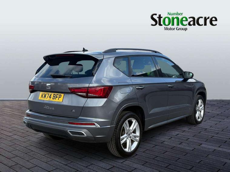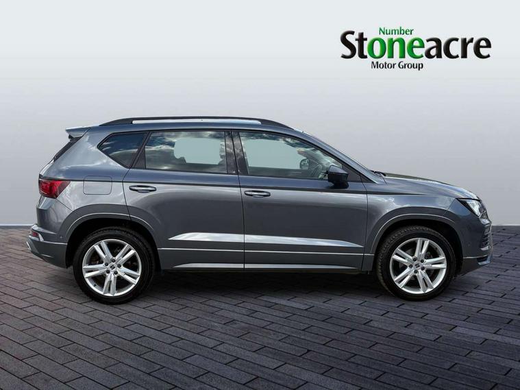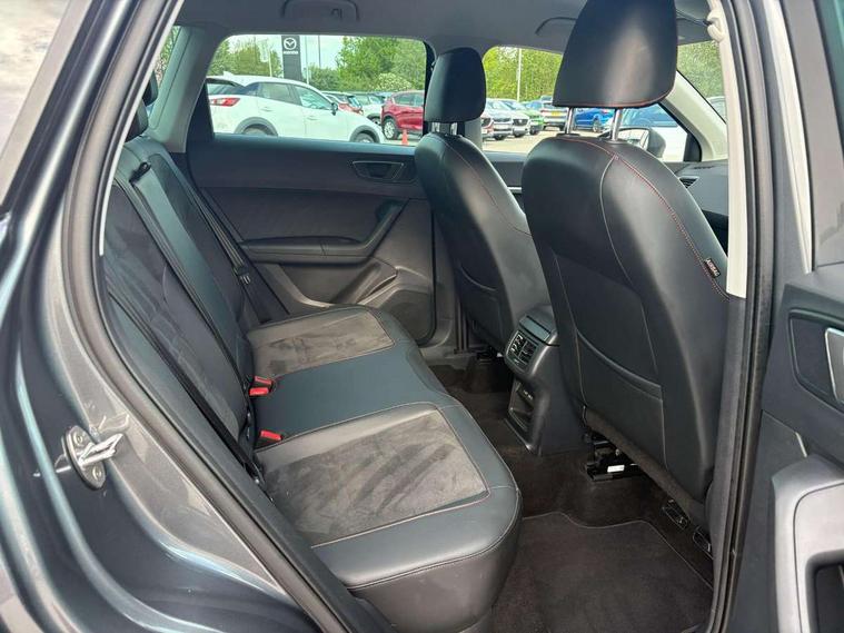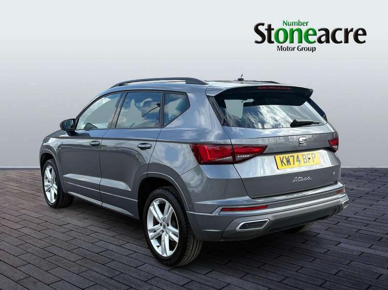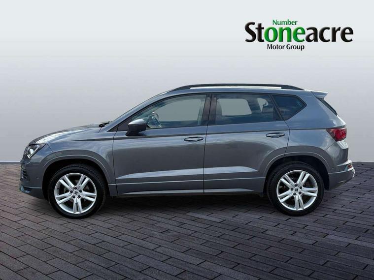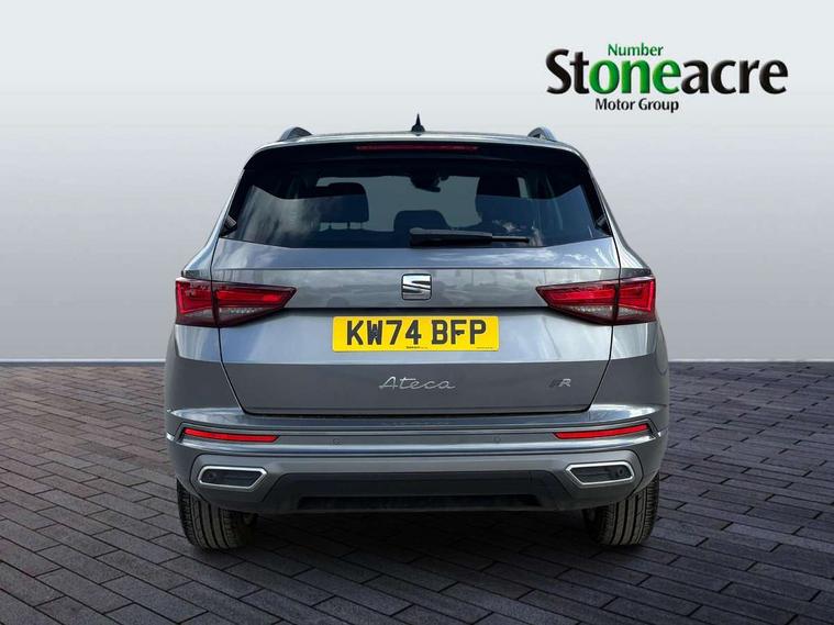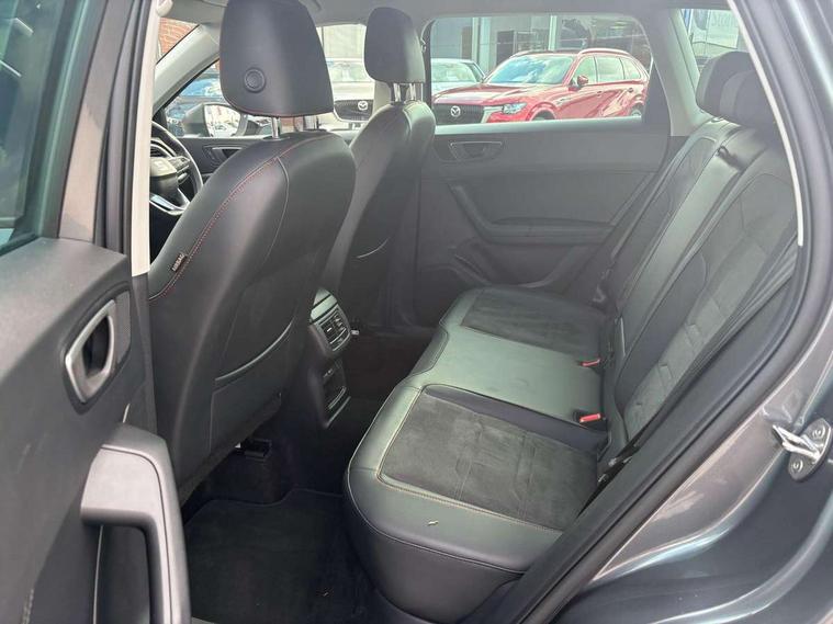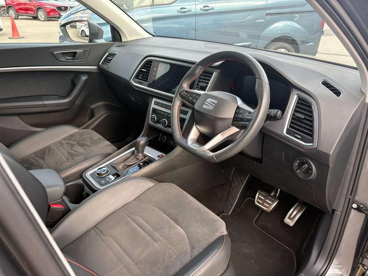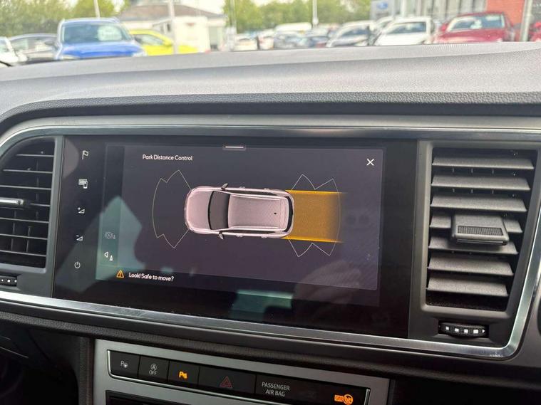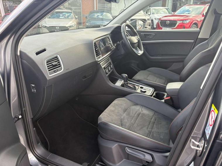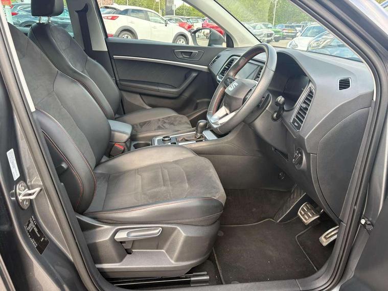 8" Digital cockpit, Colour multi-function on board computer display, Cruise control system with speed limiter, E-call, Outside temperature gauge, Progressive power assisted steering, SEAT drive profile with driving experience button - Normal, Sport, Eco and Individual mode, gearshift, steering and throttle response, Self parking functionality (includes front and rear parking sensors), Start/stop system, Tailgate, Trip computer, wired and wireless full link smartphone integration, Wireless phone charger, Steering wheel mounted audio/phone controls, Black roof rails, Black side window trim, Body colour bumpers, Body coloured wheel arch surrounds, Chrome front grille frame, Dark tinted rear windows, Daytime running lights, Door mirrors with welcome light silhouette, Dynamic headlight range control with self adjusting whilst driving, Electric adjustable/heated/folding door mirrors, Front and rear electric windows, Full LED headlamps with lens and LED front fog lamps with cornering function, Illuminated aluminium front door sill, LED 3rd brake light, LED rear tail lights with dynamic indicators, Rear exhaust tailpipe, Rear fog lights, Rear side wing doors, Rear wash/wipe, Roof spoiler, Variable front intermittent wipers, 12V socket in front, 3 seat bench in 2nd row, 60/40 split folding rear seat, Aluminium pedals, Dinamica upholstery with front comfort seats, Drawer under right front seat, Dual zone climate control, Front and rear head restraints, Front centre armrest, Front seat back storage pockets, Height adjustable driver and passenger seat with lumbar adjustment, ISOFIX points in outer rear seats with top tether anchorage points, Leather sports steering wheel and gear knob, Rear armrest and easy back seat release mechanism from boot, Single front passenger seat, Steering wheel mounted gearshift paddles, Convenience pack - Ateca, Interior lighting pack - Ateca, Navigation system pack with DAB - Ateca, Safety and driving pack with attention and drowsiness assist - Ateca, 3x3 point rear seatbelts, ABS, Traction control system (TCS), Electronic stability control (ESC) and Electronic differential lock system (XDS), Airbags - Driver and front passenger airbag with deactivation, front side, two curtain and driver's knee airbags, Electric parking brake with auto hold function, Front and rear seatbelt reminder, Front assist with autonomous emergency braking, Hill hold control, Manual rear child locks, Single tone horn, Tiredness recognition system, Tyre pressure monitoring system, Alarm, Keyless entry, Locking wheel bolts, Remote central locking, Chrome interior detailing, 18" Brillaint silver alloy wheels,