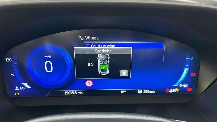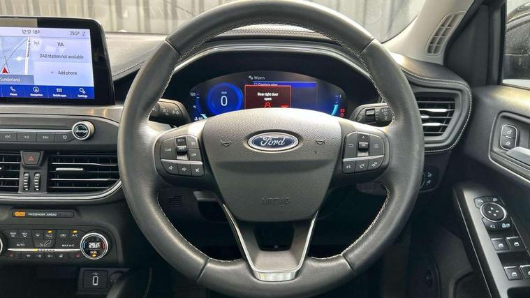 12.3" Digital instrument cluster, Active park assist, Aluminium brushed instrument panel, Bluetooth system, Digital clock, Easy fuel capless refuelling system, Eco mode, Ford SYNC 3 navigation with 8" TFT touchscreen, DAB radio and app link Android auto/Apple carplay, Front and rear parking sensors, Head up Display, Intelligent speed assist, Lane keeping system - lane keeping alert and lane keeping aid, PAS, Rear wide view camera, Selectable drive modes with slippery and trail mode, Trip computer, Wireless charging pad, Raised ride height (30mm higher than standard), 2 USB ports, Aux input, B&O Premium audio system with 360 degree sound, 10 speakers, 675 Watts amplifier power & digital sound processor, Active branded scuff plates, Active front and rear bumper with unique upper and lower grille, Adaptive full LED headlamps with dynamic LED headlights, LED turn indicators, glare-free high beam, LED rear tail lamps and LED front fog lights, Auto dimming rear view mirror, Auto headlamps (on/off), Automatic rain sensing wipers, Black painted roof and mirror caps, Body coloured bumpers, Body coloured door handles, Door edge protectors, Electrically operated and heated door mirrors with side indicators, Electrically operated front and rear windows with one touch opening and closing, Front variable intermittent wipers with electric wash, Heated rear window, LED daytime running lamp, Openable panorama roof, Power folding door mirrors with puddle lights, Quickclear heated windscreen, Rear privacy glass, Tailgate wash/wipe, Twin exhaust pipes, Unique door and instrument panel inserts, Unique skid plates and side rocker mouldings, 3 spoke leather trimmed steering wheel with integrated audio controls, 6 way power adjustable driver seat, Ambient LED multi colour interior lighting, Driver's lumbar support, Dual zone electronic air temperature control, Front and rear floor mats with blue stitching, Front passenger seat manual height adjust, Heated driver and front passenger seats, Heated steering wheel, Height adjustable front headrests, Isofix child seat preparation, Leather gear knob with high gloss black insert, Load through ski hatch, Reach + rake adjustable steering column, Rear centre headrest, Sensico partial premium leather upholstery, Soft console knee pads with blue stitching, Vignale leather steering wheel, 3x3 point rear seatbelts, ABS+Electronic Brake force Distribution, Auto hold function, Driver airbag, Electronic parking brake, Electronic stability control, Front and rear seatbelt reminder, Front inertia reel height adjustable seatbelts with pre-tensioners, Front passenger airbag, Front side airbags, Hill start assist, Passenger airbag deactivate switch, Post collision braking, Power child locks on rear doors, Pre collision assist with autonomous emergency braking and pedestrian/cyclist detection, Side curtain airbags, Three rear inertia reel lap/diagonal seatbelts, Tyre pressure monitoring system, Ford keyfree system with Keyless entry and keyless start/sleep mode key fob, MyKey system, Remote central locking & engine immobiliser, Thatcham category 1 alarm, 18" 5x2 spoke absolute black machined painted alloy wheels, Mini steel spare wheel,