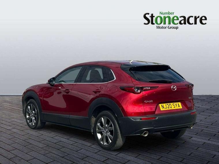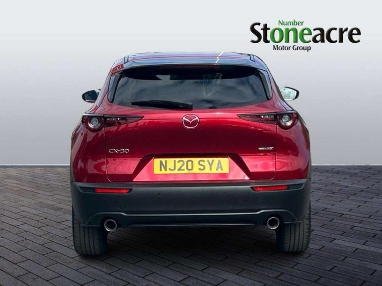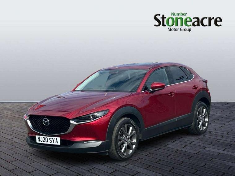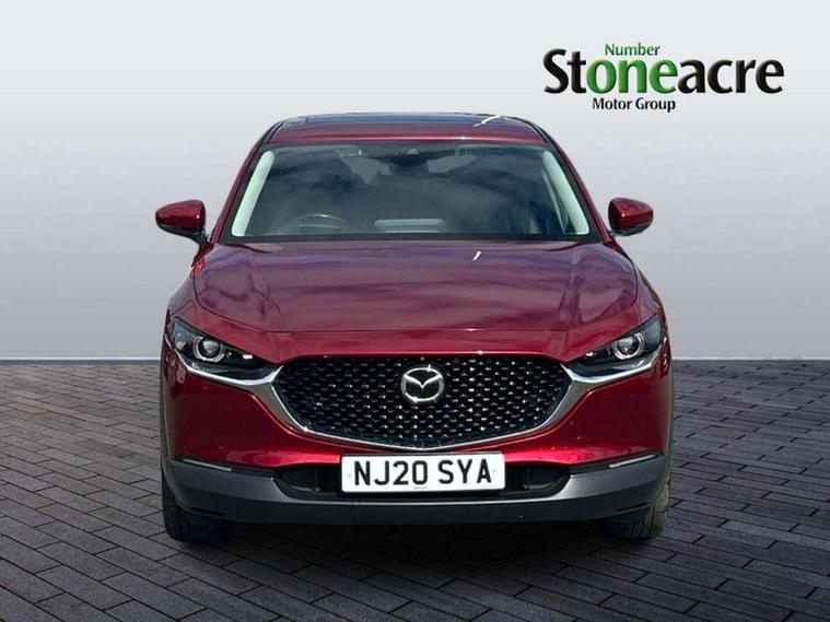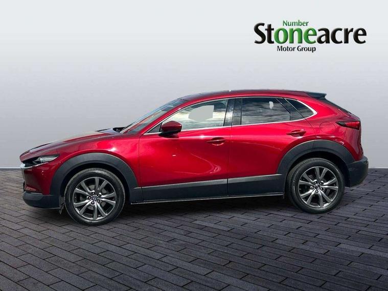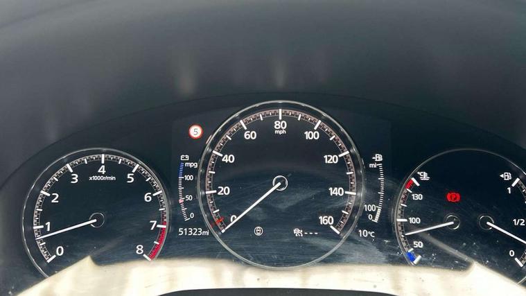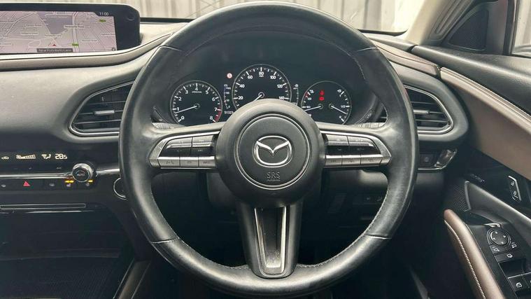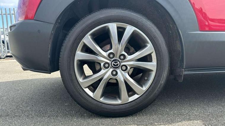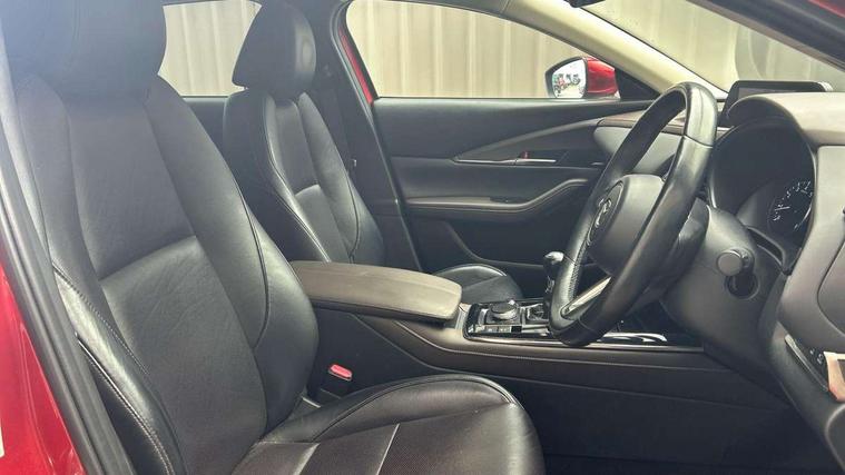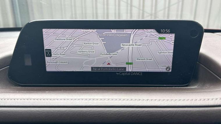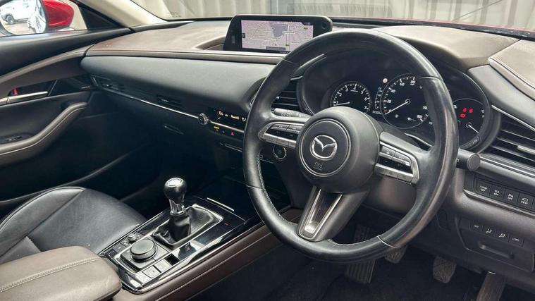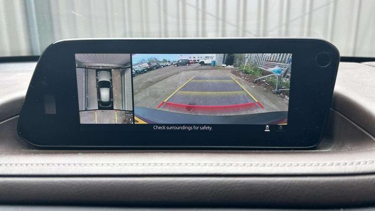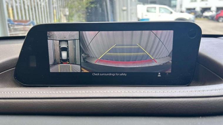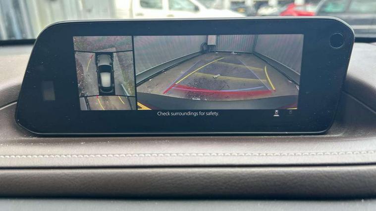 360 View Monitor, 7" TFT Colour driver instrument panel display, 8.8" Colour centre touch screen display with Mazda Connect infotainment, Adaptive cruise control (Mazda radar cruise control) features stop and go, Apple car play/Android Auto, Blind spot monitoring with rear cross traffic alert, Cruising Traffic Support, Driver attention alert system, Driver monitoring system, E-call with GPS, Emergency stop signalling system, Engine start/stop button, Front and rear parking sensors, Front Cross Traffic Alert, Integrated bluetooth, Integrated Mazda navigation system, Intelligent speed assist, Lane keep assist system (LAS) with Lane departure warning system (LDWS), PAS, Power lift gate, Service indicator, Trip computer, Window projected colour active driving display (head up display) with traffic sign recognition, i-stop, 2 USB charging ports, Bose surround sound system with 12 Speaker, Bose center point, Bass match and audio pilot technology, CD player, DAB Digital radio, Multimedia Commander including separate volume dial, Steering wheel mounted audio/bluetooth controls, Adaptive LED Headlights, Auto dimming driver's door mirror, B-pillar and C-pillar garnishes in gloss black finish, Body coloured, electrically adjustable, heated auto power folding door mirrors with integrated indicators, Coming/leaving home lighting function, Door mirrors with tilt-down function when reversing, Dual chrome exhaust, Dusk sensing headlights, Electric front/rear windows with one touch auto up/down, Frameless auto dimming interior rear view mirror, Front kodo turn signal, Gloss black front grille, Gloss black rear roof spoiler, High beam assist, LED headlamps with auto levelling, Power tilt/slide sunroof, Privacy glass (rear side windows and rear screen), Rain sensing front wipers with adjustable speed and intermittent wipe, Rear fog lights, Rear wiper, Signature front LED daytime running lights, Signature LED rear combination lights with LED rear turn lights, 12V power outlet in centre console, 60/40 split fold down rear seats, Chrome horn pad ring, Dashboard, door cards and front centre armrest in rich brown leather, Driver and front passenger visors with covered vanity mirror and driver ticket holder, Driver seat memory function, Driver's seat, power tilt, slide, recline, height and lumbar adjustment, Driver, Front passenger and two rear grab handles with coathooks, Dual zone climate control air conditioning with rear air vents, Folding rear centre armrest with two cup holders, Front and rear (x3) head restraints, Front and rear door pockets, Front and rear LED lighting, Front armrest, Front centre storage with two cupholders, Front passengers seat manual slide, recline and height adjustment, Gear shift indicator, Glovebox illumination, Heated front seats with 3 stage setting, Heated steering wheel, ISOFIX child seat anchorage points attached on outer rear seats, Leather wrapped gear shift knob, Leather wrapped steering wheel with telescopic and tilt adjustment, Luggage compartment light, Rear passenger seat map pockets, Roof mounted sunglasses holder, Vinyl leather door panel inserts, 3 point ELR front seat belts x2 with pretensioners, 3 point ELR rear seat belts, Anti-lock braking system (ABS), Driver/Front Passenger airbags, Drivers knee airbag, DSC - Dynamic Stability Control, Electronic parking brake with auto disengage function and auto hold function, Front and rear curtain airbags, Front and rear smart city brake support, Front passenger airbag cut-off switch, Front side airbags, G-Vectoring control plus, Hill launch assist, Mild Hybrid system with regenerative braking, Rear cross traffic braking, Seatbelt reminder for driver/front passenger and rear seats, Traction control system (TCS), Tyre pressure monitoring system (TPMS), Remote central locking with deadlocking and automatic door lock when driving, Smart keyless entry, Thatcham accredited alarm and immobiliser, 18" Bright silver metallic alloy wheels, Emergency tyre repair kit,