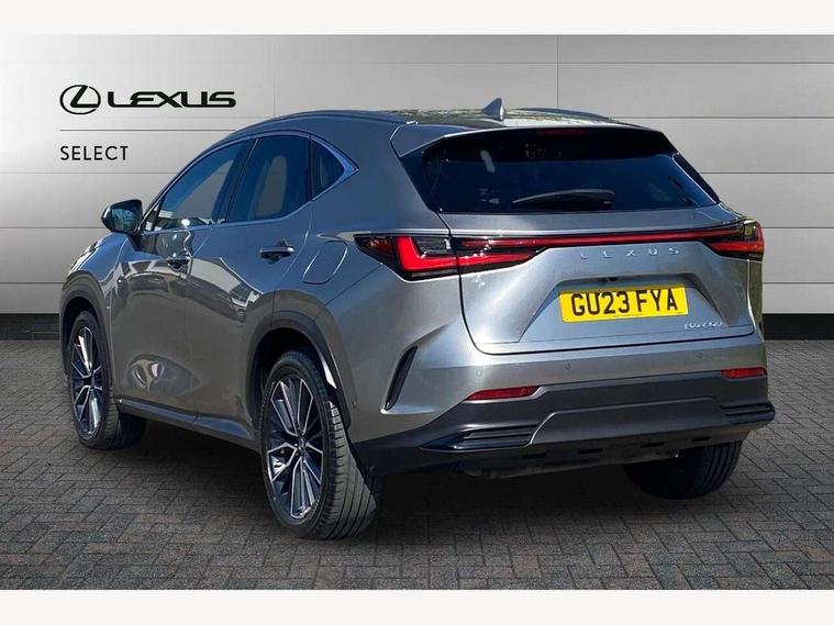 360 degree panoramic view monitor, 4 driving modes EV/Eco/Normal/Sport, 7" display in instrument binnacle, Blind spot monitoring with rear cross traffic alert, Bluetooth telephone connectivity, eCall emergency system, Electric speed sensitive power steering, Extended lexus safety+ system includes front cross traffic alert and lane change assist, Fully automated parking, Head up Display, Intelligent parking sensors - 4 front and 4 rear, Lane change flasher function, Lexus link connect - Cloud based navigation, cloud based voice assistant, always online, 14" HD touchscreen, embedded nav and faster CPU, Push button starter, Reversing camera with back guidelines, Service interval indicator, Tazuna cockpit with 7" improved meters display, 10" HUD and capacitive touch steering wheel switches, Wireless Apple CarPlay and wired Android Auto, Wireless Smartphone charger, 6.6 kW onboard charger, All Wheel Drive (AWD), Hybrid automatic transmission, Vehicle Dynamics Integrated Management (VDIM), Vehicle Stability Control (VSC), 10 speakers, 4 USB ports - 2 front, one USB C, 2 rear USB C, DAB Digital radio, 4 eye LED headlight with adaptive high beam, Automatic headlights, Digital rear view mirror, Double hidden exhaust pipes, Electric sunroof, Front and rear one touch power windows, with anti-jam protection, Headlight cleaners, Heated, auto-folding, auto-dimming outside mirrors with reverse tilt function and turn indicators, Illuminated door handles with puddle light, LED brake lights and rear lights with emergency brake signal, LED cornering lights, LED daytime running lights, LED front fog lights, LED Indicators, Power back door with kick sensor, Privacy glass, rear doors and tailgate, Rain sensor windscreen wipers, Rear side wing doors, Rear wiper, 12V accessory port centre console and luggage compartment, 2 cupholders in front centre console, 2 x fixed shopping bag hooks in boot, 2 x sun visors with vanity mirror and lamp, 3 seat bench in 2nd row, 4 way electrical lumbar adjustment for driver, 4 x tie down hooks in the boot, 60/40 split folding rear seat, 8 way driver/passenger electrically adjustable front seats, Adjustable rear seat backrest, Card holder installed in driver and passengers sun visors, Centre armrest with storage box, Door courtesy lights, Driver seat memory function, Dual zone climate control air conditioning system with humidity sensor, Front and rear head restraints, Front and rear textile carpet mats, Front passenger seat, Heated and ventilated front seats, Heated rear seats, Heated steering wheel, Leather gear lever, LED ambient lighting, LED interior illumination, Power adjustable leather steering wheel with paddle shifts, Rear centre armrest with 2 cupholders, Smooth leather upholstery, Whiplash Injury Lessening (WIL) feature (active headrest) for seats, 2 x Isofix child rear seat restraints, 3 point ELR front seatbelts with pretensioners, 3x3 point rear seat belts, ABS, Adjustable seat belt anchor points, Driver and front passenger 2 stage airbag, Driver/front passenger side airbags, Drivers knee airbag, E-Latch with safe exit assist, EBD + Brake Assist, ECB (Electronically Controlled Brake System), Electronic parking brake, Front and rear curtain shield airbags, Front center airbag, Front passenger seat cushion airbag, Hill assist control, Lexus safety system - dynamic radar cruise control, pre collision system day and night, lane tracing assist, road sign, OTA, Manual rear child locks, Passenger airbag cut-off device, Traction control, Tyre pressure warning, 2 x remote key fobs, Anti-theft system with alarm, intrusion sensor, glass breakage sensor, tilt sensor and engine immobiliser, Locking wheel nuts, Smart card key, Smart keyless entry, Speed sensitive auto door locking, Two motion door lock with double lock, VIN Window etching, Sumi blackwood inlay,