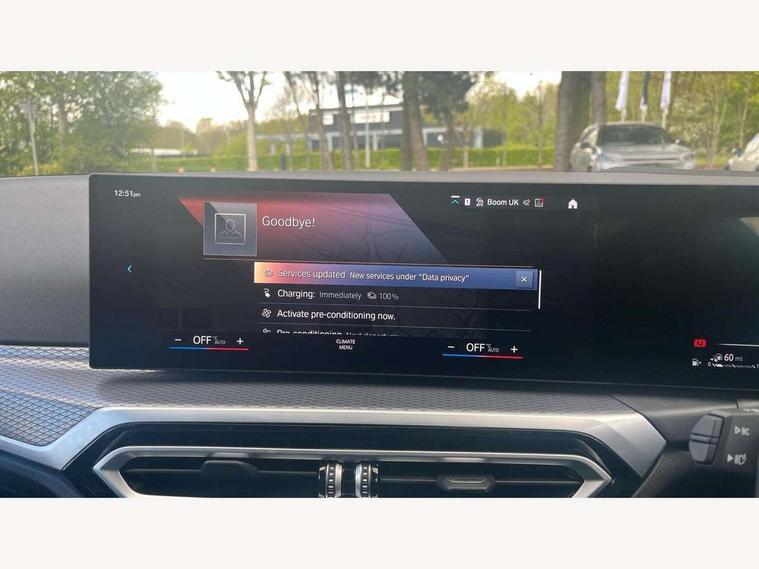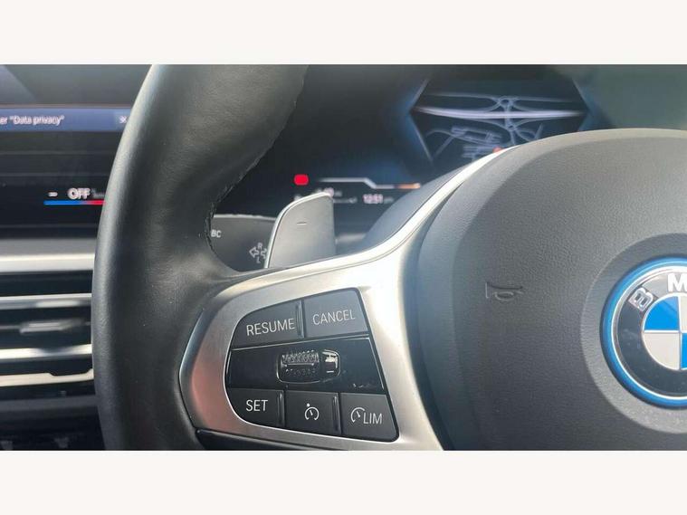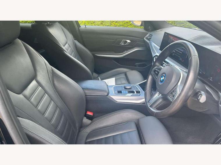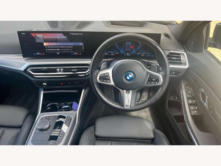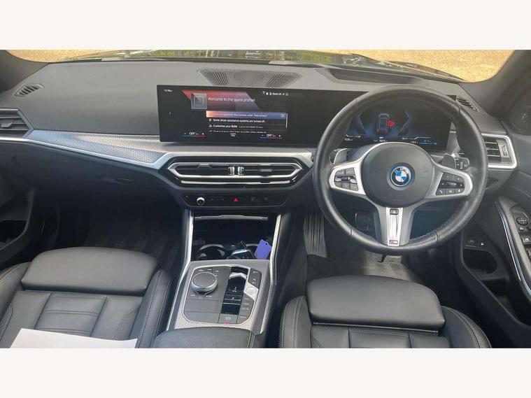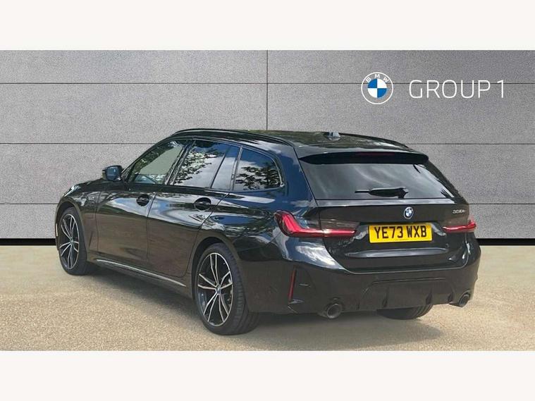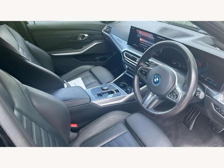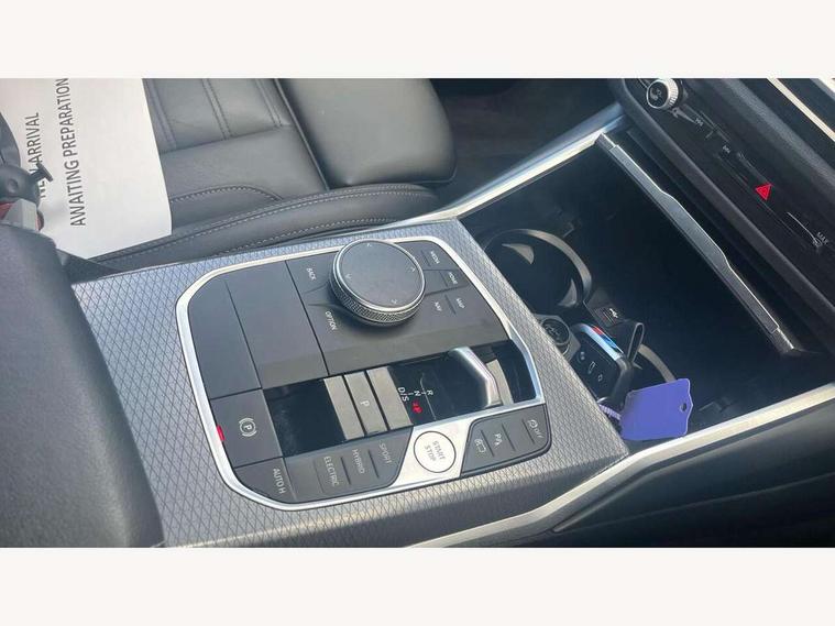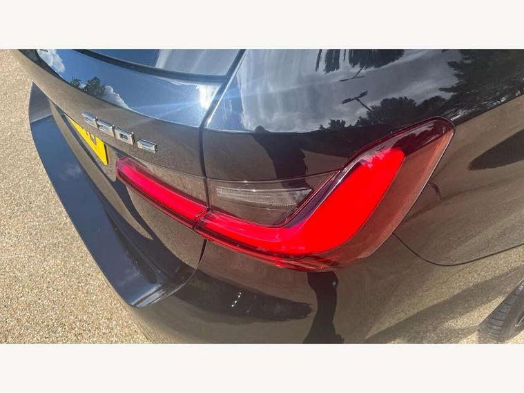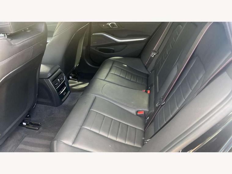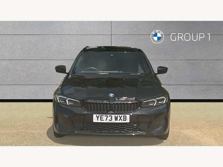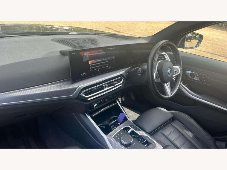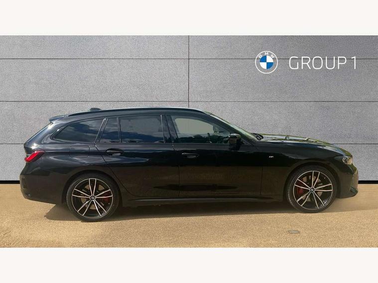 Active guard plus, Attentiveness assist, Automatic Start/stop button, BMW Iconic sounds electric, BMW iDrive, BMW Teleservices, Condition based service, ConnectedDrive Services, Driving experience switch, Live cockpit plus with Navigation + 12.3" instrument display + 14.9" display, Intelligent voice assist, 2 USB, 4G LTE connect, Oil sensor for level and grade, PAS, Preparation for driver assistance, Shifting point display, Variable sport steering, Double joint spring strut front axle, Electronic differential lock control (EDLC), Fast charging cable - Mode 3, Fuel tank breather system, Sport automatic transmission with steering-wheel mounted gearshift paddles and launch control, Standard suspension, DAB tuner, 3rd brake light, Acoustic glazing, Automatic headlight beam throw control with load dependent regulating reaction, dynamic compensation of braking dive and acceleration squat, BMW emblem, engine compartment lid and tailgate, Body colour roof fin, Door sill strips, Electric windows - front and rear, with open/close fingertip control, anti-trap facility and comfort closing, Follow me home headlight function, Front and rear bumper system with replaceable deformation elements, Front apron plastic in body colour, Fuel filler flap - right rear in body colour, Heated washer jets, High gloss shadow line exterior trim, High gloss shadow line roof rails, Illuminated bow type door handles in body colour drivers side with door lock, Interior rear view electrochromatic mirror with automatic anti dazzle function, LED rear lights, Licence plate panel integrated into front bumper and tailgate, Matt black B-pillar finsher, Matt black window recess cover, Model designation on right side of tailgate, One piece front bumper cover including towing eye cover in body colour, Rain sensor with automatic headlight activation, Rear side wing doors, Rear wiper, Reversing lights, Side frame decorative moulding black matt, Visible exhaust tailpipe finisher, Welcome lights in interior and door handle area, 12V power socket in front storage compartment, 2 front cupholder in centre console with clamping elements and matt black inlay, 3 seat bench in 2nd row, 3 zone automatic air conditioning, 40:20:40 split folding rear seat with loading system, Ambient inside door handle light, Ambient light design projected onto the left and right entering and exiting area, Ambient lighting front and rear with 9 selectable colours, Ambient storage compartment lighting in the centre console, Anthracite headlining, Armrest integrated in front and rear door trim + front centre console armrest, Battery in luggage compartment, BMW ID, Contour lighting in instrument panel and door trim panel, Cruise control operation in steering wheel, Driver backrest width adjustment, Folding rear centre armrest with 2 cupholders, Front and rear ambient footwell lighting, Front and rear door exit lighting (left / right), Front and rear headrests, Front and rear reading lights, Front and rear velour floor mats, Front sport seats, Heated front seats, Height adjustable mechanically and infinitely variable steering column, Illuminated armrest storage compartment, Illuminated glove compartment, Illuminated luggage compartment, Lashing eyelets in luggage compartment, M Sport multifunction leather steering wheel, Make-up mirror lights, Single front passenger seat, Standard seat for driver and passenger with manual adjustment, Sunvisors with vanity mirrors and ticket pocket, Toolkit located in luggage compartment, Connected pack professional - 3 Series Saloon/Touring, Interior and exterior mirror pack - 3 Series Touring/Saloon, M Aerodynamics package - 3 Series Saloon/Touring, M sport exterior styling pack - 3 Series Saloon/Touring, Storage compartment pack - 3 Series Saloon/Touring, 3x3 point rear seatbelts, BMW emergency call, Child locks on rear doors, Crash sensor activating of airbags, Unlocking doors, hazard warning lights, interior light, safety battery terminal, Driver and front passenger with seat occupancy detection for driver's and passenger side, Driver and passenger side airbags, body protection at side and airbags deploy from seat backrests, Dynamic brake control, Dynamic stability control + (DSC+) - Anti-lock Braking System (ABS) with brake assist and cornering brake control + Automatic Stability Control (ASC), Dynamic Traction Control - DTC, Electric parking brake including automatic hold function and automatic release of the parking brake when driving off, Head airbags in 1st and 2nd row, head protection at side, curtain airbags open from headliner above 1st and 2nd row, Plastic fuel tank, Side impact protection, Tyre pressure monitoring with three level warning strategy, Ventilated front and rear disc brakes, Warning triangle and first aid kit, Alarm system, Centre lock switch, Closing system with central locking, Electronic vehicle immobiliser,