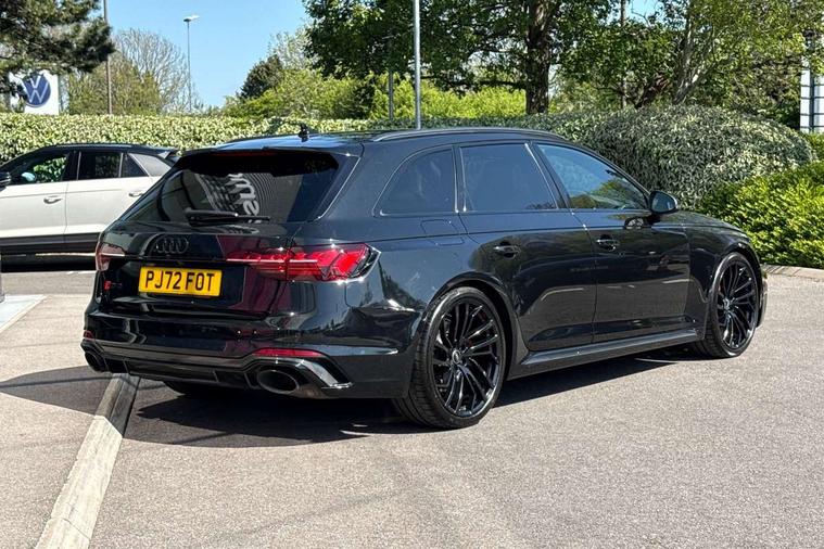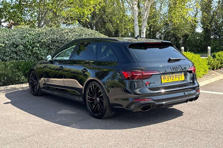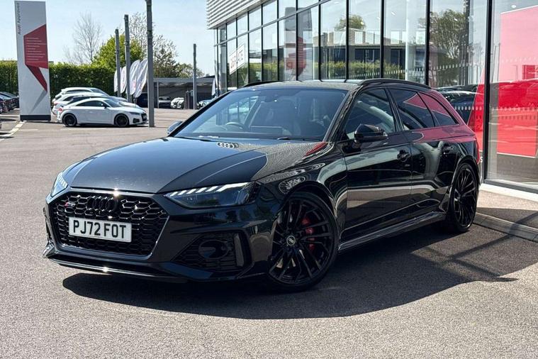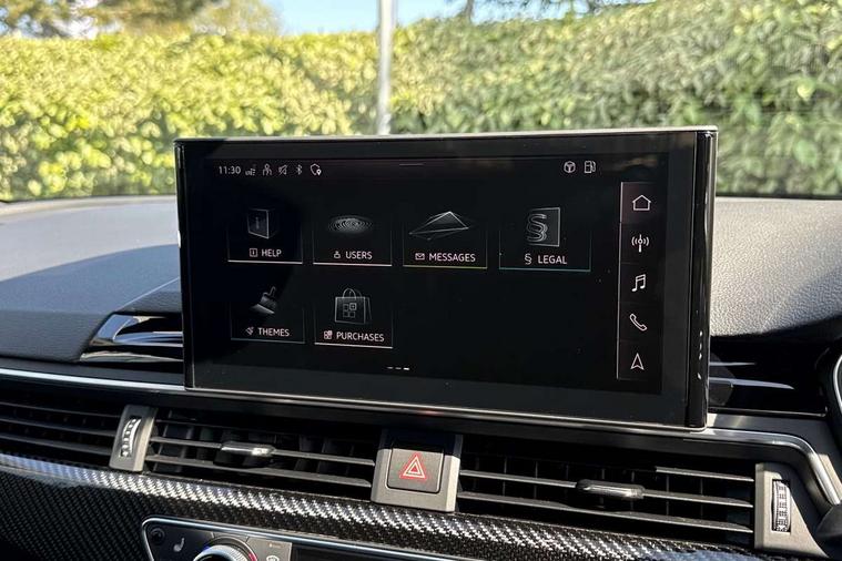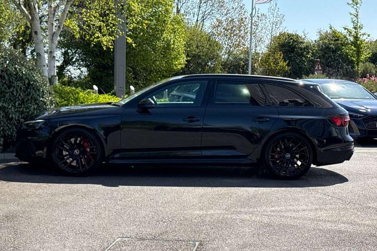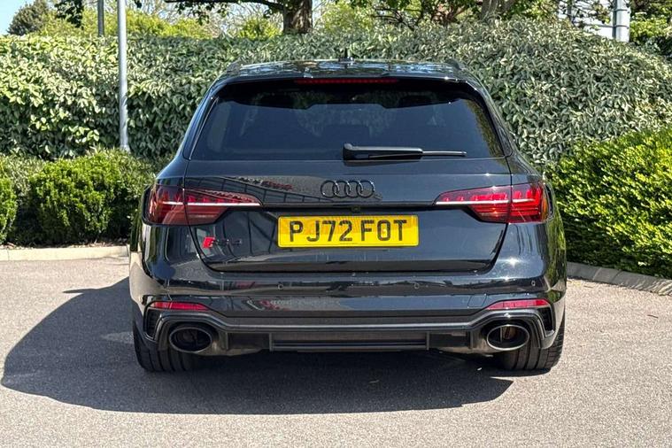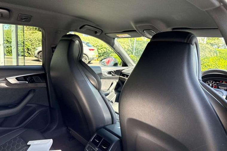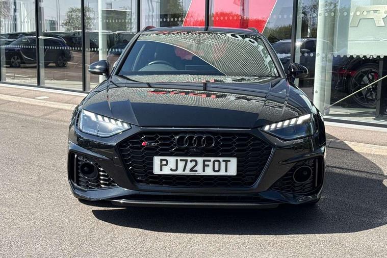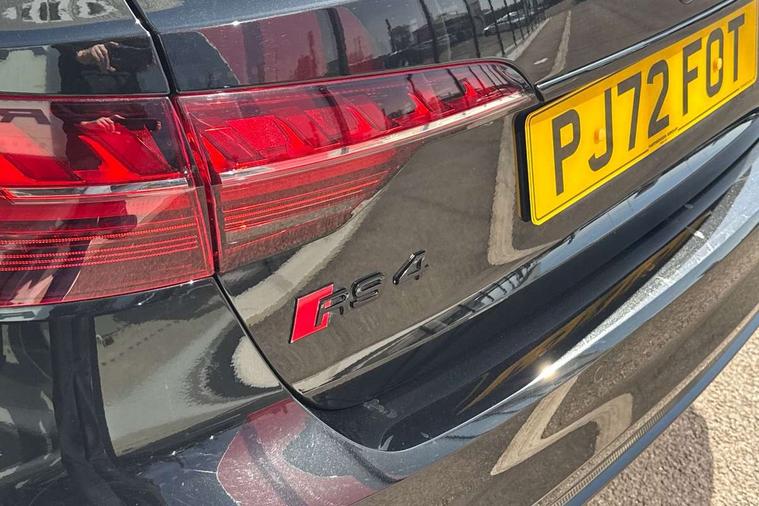 7" Colour driver information system, Amazon alexa Integration, Audi connect safety and service (e-call), Audi drive select, Audi side assist, Audi smartphone interface, Audi virtual cockpit with RS specific display, Automatic start-stop system with coasting functionality and efficiency programme, Bluetooth interface, Electromechanical power steering, Email, calendar and text messages displayed via MMI, MMI Navigation plus with MMI touch includes 10.1" high resolution colour MMI display, 3D map, Power opening/closing tailgate, Service interval indicator, Voice control system, 58 Litre fuel tank, Quattro sports differential, 2 USB charging ports, Audi sound system, DAB digital radio module, 3rd brake light, Acoustic windscreen, Audi Beam uses LEDs to project the RS logo onto ground as you exit your RS4, Audi matrix LED headlights with LED rear lights + dynamic front and rear indicators, Audi rings and lettering glossy black, Auto dimming rear view mirror, Automatic headlights + automatic windscreen wipers, Black roof rails, Blue tinted glass, Body colour door handles, Electric front windows, Electric rear windows, Electrically folding auto dimming/adjustable/heated door mirrors with memory function, LED side indicators and kerb view function for passenger side, Flared front and rear wheel arches, Front bumper with enlarged air inlets, Headlight range control, High beam assistant, High gloss black door mirror housing, High gloss black triangular aperture at rear door, Honeycomb design grille with quattro logo, Lateral air inlets next to front headlights, LED daytime running lights, LED indicators in door mirrors, Privacy glass with rear acoustic glazing, Rain and light sensors, Rear side wing doors, Rear wiper, Roof spoiler, RS 4 badges on grille and rear, RS4 dual branch chrome tailpipes with left and right oval pipes, 3 seat bench in 2nd row, 3 spoke multifunction plus leather steering wheel with heating and RS badging, 40/20/40 split folding rear seats with rear centre armrest, Black cloth headlining, Deluxe 3 zone electronic climate control, Electric load area cover, Electrically adjustable front seats, Fine nappa leather with contrast honey comb stitching + super sports seats with pneumatic massage function, Front centre armrest, Front headrests, Front/rear floor mats, Heated front seats, Height and reach adjustable steering wheel with full size airbag, Illuminated door sill trims with RS4 logo, ISOFIX child seat mounting and top tether, Leather door armrests and knee pad, Luggage compartment carpet, Perforated leather gear lever knob with contrast stitching, Rear headrests, Retractable load area cover, Single front passenger seat, Stainless steel pedals, Sunvisors with vanity mirrors, Carbon black styling pack - RS4, LED Interior light pack - RS4, Non Smokers pack, 3 point seatbelts on all rear seats, Adaptive driver and front passenger airbags, Electromechanical parking brake, Electronic stabilisation control including ABS, ASR and EDL, Enhanced braking system, Front head airbags, Front seatbelt pretensioners + load limiters, Front side airbags, Hill hold assist, Manual child lock in rear doors, Multi-Collision braking, Pop-up bonnet for pedestrian protection, Pre sense city, Rear side airbags, Seatbelt monitoring, Traction control, Tyre pressure warning, Variable restraint system, Warning triangle and first aid kit, Anti theft alarm, Anti-theft wheel bolts, Immobiliser, Keyless Go, Remote central locking, Remote control key with RS emblem, Carbon twill inlays, 20" 5 segment spoke evo design glossy black sport alloy wheels, Tool kit, Tyre repair kit,