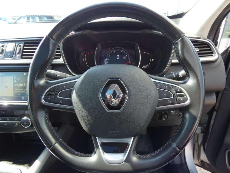 Apple car play/Android Auto, Bluetooth system, Cruise control + speed limiter, Door/boot open warning light, Eco mode, Exterior temperature gauge, Front and rear parking sensors, Low fuel level warning light, Multi function trip computer, Oil level gauge, PAS, R-Link Multimedia system with 7" touch screen, satellite navigation and western European map, Rev counter, Traffic sign recognition, Visio system - lane departure and high beam assist, Auxiliary input socket, Bose Premium Audio system with 7 premium speakers + subwoofer, DAB Digital radio, Fingertip controls for audio system, USB connection, Automatic headlights and windscreen wipers, Body colour door handles, Body coloured bumpers, Body coloured door mirrors, Bodyside mouldings with chrome inserts, Chrome exterior trim, Chrome window surround, Cornering front fog lights, Door sill kick plates, Electric adjustable/heated/folding door mirrors, Electrochrome rear view mirror, Extra tinted glass in rear windows and tailgate, Fixed panoramic glass sunroof, Front and rear electric windows, Front and rear towing rings, Front skid plate, Front wipers with variable intermittent facility, Heated rear windscreen, Integrated fuel filler cap, LED daytime running lights, LED Headlights, Rear skid plate, Rear wiper, Roof rails, 12v power outlet - front, 3 height adjustable rear headrests, 3 seat rear bench, 60/40 split folding rear seat, Adjustable dashboard illumination, Air recirculation system, Centre rear armrest with cup holder, Driver's seat with lumbar adjustment, Driver/passenger reading lights, Dual zone automatic climate control, Front centre armrest, Front courtesy lights, Front footwell illumination, Glovebox with light, Height adjustable front headrests, Height adjustable passenger seat, Height/reach adjust steering wheel, Illuminated boot, Illuminated sun visor mirrors, Isofix system on outer rear seats, Nappa leather steering wheel, One touch easy folding rear seating system, Pollen filter, Rear courtesy lights, Rear passenger heating ducts, Variable boot floor, ABS/EBD, Brake assist function, Driver/passenger 2 stage auto adaptive airbags, Electronic parking brake, ESP with ASR and UCL (understeer control logical), Front and rear curtain airbags, Front lateral airbags, Front seat belts warning, Height adjustable front seatbelts + pretensioners, Hill start assist, Manual passenger airbag deactivation function, Rear seatbelt warning indicator, Side impact protection, Three 3 point rear seatbelts, Traction control, Tyre pressure monitor, Anti-drill door locks/ignition barrel, Deadlocks, Hands free Renault card, Insurance approved Cat 1 alarm system, Insurance Approved Immobiliser, RAID (Renault Anti-Intruder Device) with automatic door locking, Remote central locking, 19'' Zeus diamond cut alloy wheels, Tyre inflation kit,