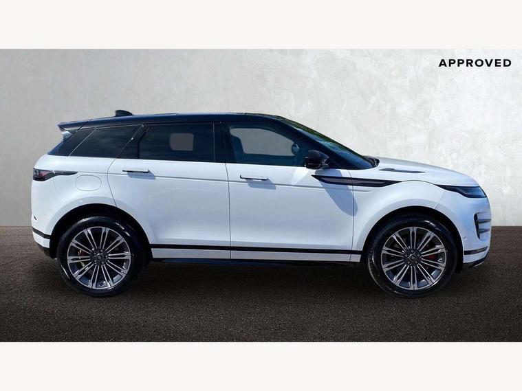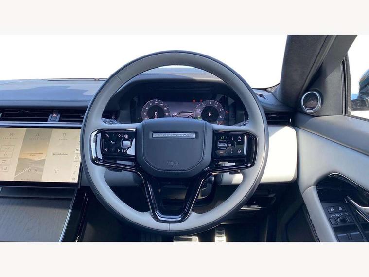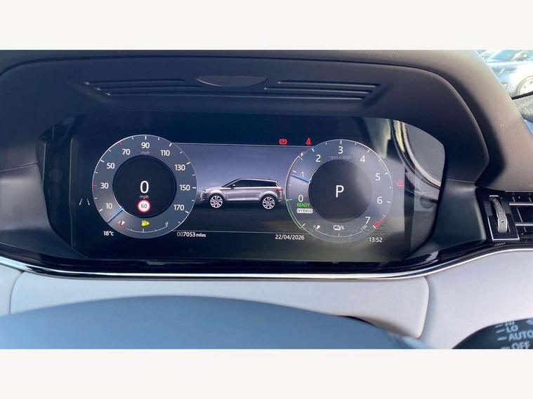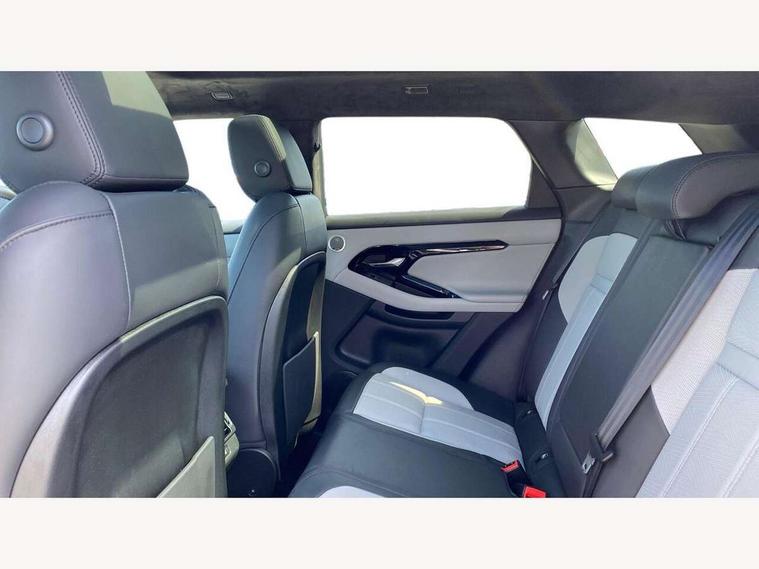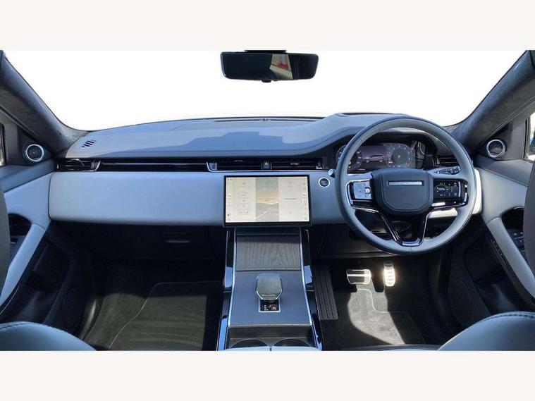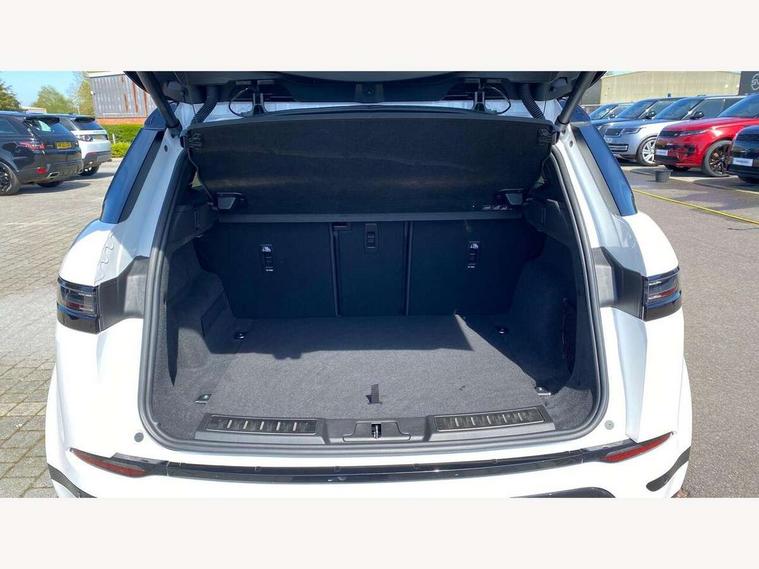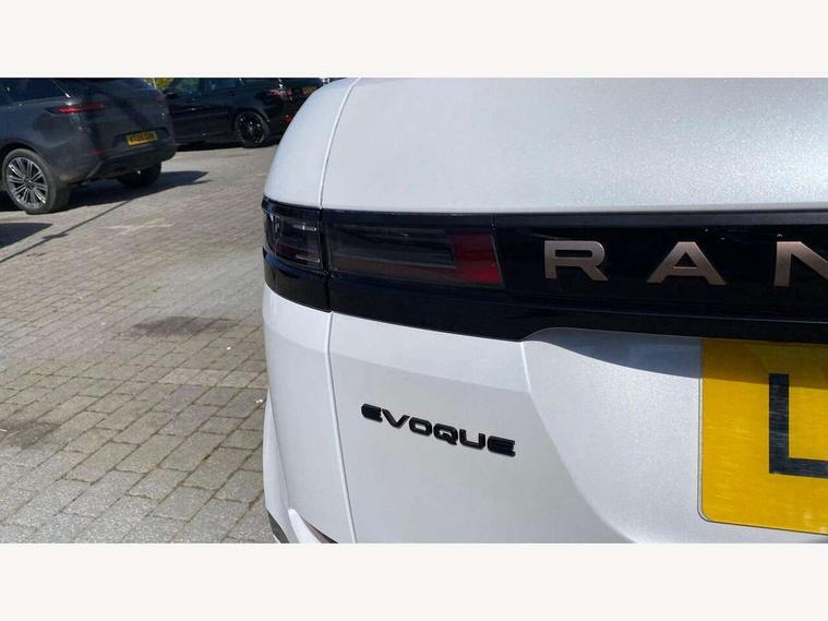 11.4" touch screen, 3D 360 degree surround camera with wade sensing, Adaptive cruise control, Android Auto, Apple car play, Blind spot assist, Bluetooth connectivity, Brake pad wear indicator warning light, Driver condition monitor, eCall emergency system, Eco mode, Electronic power assisted steering (EPAS), Front and rear parking aid, Head up Display, InControl remote, Interactive driver display, Land Rover InControl apps, Lane keep assist, Pivi pro connected includes diamond pivi variant, smart settings, connected navigation pro, nuance speech licence, Powered tailgate/boot lid, Rear collision monitor, Rear traffic monitor, Traffic sign recognition with adaptive speed limiter, Voice control system, Wireless device charging, All terrain progress control, Configurable dynamics, Electric rear axle drive, Home charging cable, Large fuel tank, Passive suspension, Public charging cable, Terrain Response 2, Digital Audio Broadcast radio-DAB, Steering wheel mounted controls, Acoustic laminated windscreen, Auto headlights, Automatic headlight levelling, ClearSight interior rear view mirror, Electric windows with one touch open/close and anti trap, Flush deployable exterior door handles, Front and rear recovery eyes, Front fog lights, Heated rear window with timer, Heated washer jets, Heated windscreen, Pixel LED headlights with signature DRL and LED tail Lights, Power fold, auto-dimming, heated door mirrors with approach lights and auto dimming driver side, Rain sensing windscreen wipers, Range rover branding illuminated metal tread plates in loadspace and row 1 with brand name script and metal in row 2, Rear animated directional indicators, Rear fog lights, Rear side wing doors, Rear wiper, Side repeater indicators in mirror, Sliding panoramic roof with powered sunblind, Tailgate spoiler, Third brake light, Winter wiper park position, 14 way driver memory electric front seats with 2 way manual headrests + 4 way lumbar support, bolsters, 40:20:40 split folding rear seats with centre headrest and armrest, Ambient interior lighting, Bright metal pedals, Cabin Air Purification plus, Configurable cabin lighting, Customer configurable single point entry, Electrically adjustable steering column with memory function and easy entry/exit, Front and rear cupholders, Heated and cooled front seats, Heated rear seats, Heated steering wheel, Isofix system on outer rear seats, Overhead lighting console, Overhead stowage for sunglasses, Passive front head restraints, Premium carpet mats, Rear air vents, Rear head restraints, Satin chrome gearshift paddles, Single passenger seat, Sunvisors with illuminated vanity mirrors, Twin sliding front centre armrest, Online pack with data plan - Evoque, Power socket pack 2 - Evoque, 3 rear 3 point seatbelts, Anti-lock braking system (ABS), Brake hold function, Customer configurable autolock, DSC - Dynamic Stability Control, Electronic brake force distribution, Electronic parking brake, Electronic traction control, Emergency braking, Front and rear seatbelt reminder, Hill descent control, Hill launch assist, Low traction launch, Occupant protection assist, Passenger seat occupant detector, Power operated child locks, Roll stability control, Six airbags - Driver and passenger airbags/driver knee airbag/front side airbag and curtain airbags, Torque vectoring brake, Tyre pressure monitoring system, Alarm, Immobiliser, Intrusion sensor, Keyless entry, Locking wheel nuts, All season tyres,