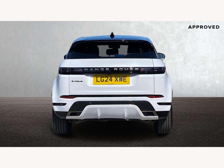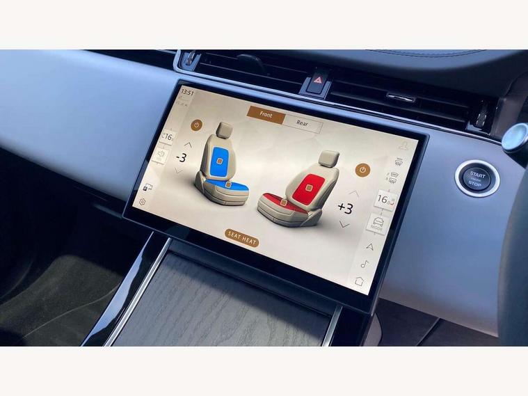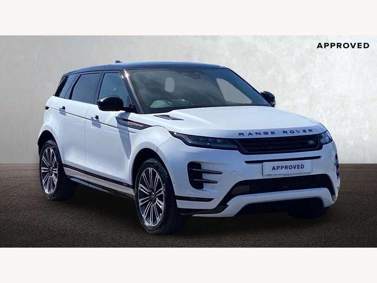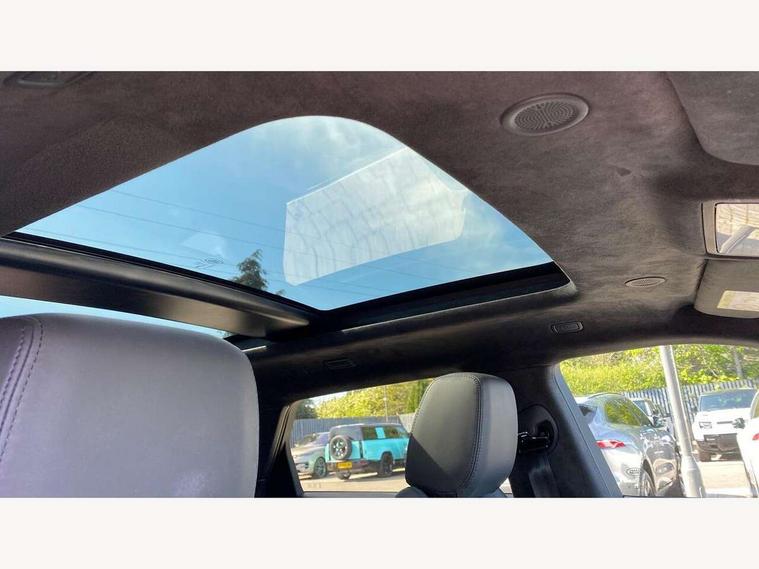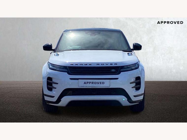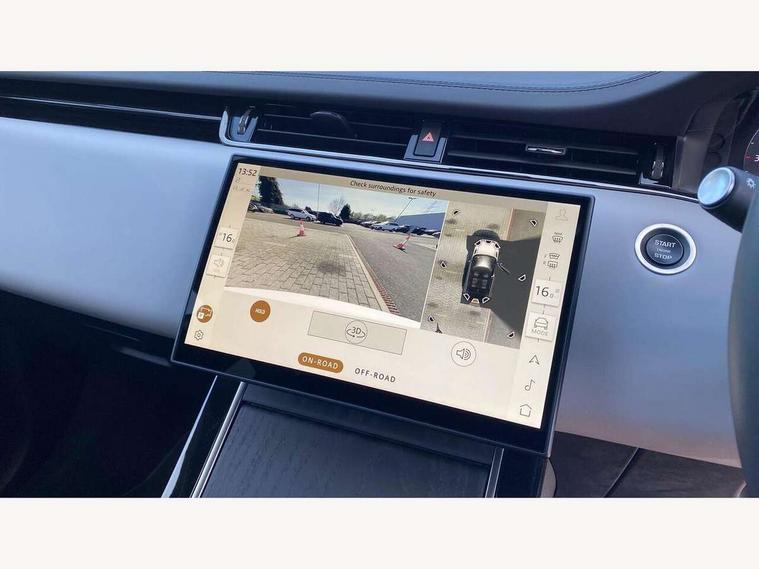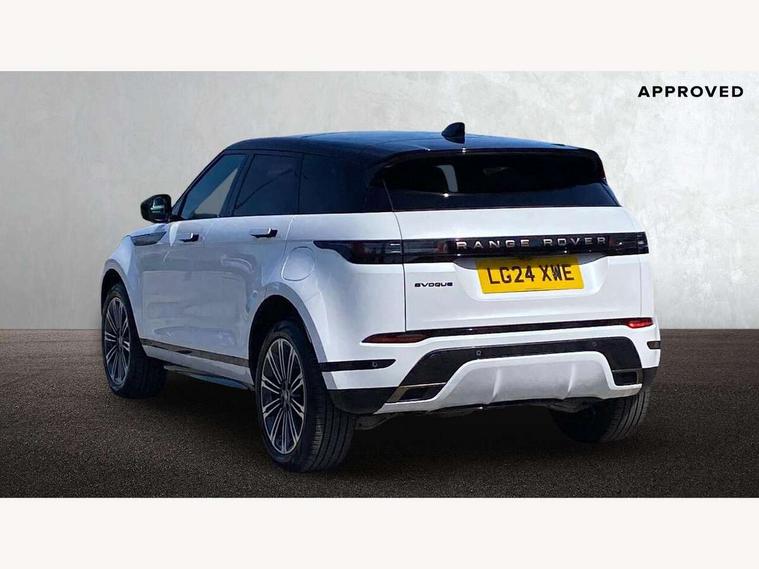 11.4" touch screen, 3D 360 degree surround camera with wade sensing, Adaptive cruise control, Android Auto, Apple car play, Blind spot assist, Bluetooth connectivity, Brake pad wear indicator warning light, Driver condition monitor, eCall emergency system, Eco mode, Electronic power assisted steering (EPAS), Front and rear parking aid, Head up Display, InControl remote, Interactive driver display, Land Rover InControl apps, Lane keep assist, Pivi pro connected includes diamond pivi variant, smart settings, connected navigation pro, nuance speech licence, Powered tailgate/boot lid, Rear collision monitor, Rear traffic monitor, Traffic sign recognition with adaptive speed limiter, Voice control system, Wireless device charging, All terrain progress control, Configurable dynamics, Electric rear axle drive, Home charging cable, Large fuel tank, Passive suspension, Public charging cable, Terrain Response 2, Digital Audio Broadcast radio-DAB, Steering wheel mounted controls, Acoustic laminated windscreen, Auto headlights, Automatic headlight levelling, ClearSight interior rear view mirror, Electric windows with one touch open/close and anti trap, Flush deployable exterior door handles, Front and rear recovery eyes, Front fog lights, Heated rear window with timer, Heated washer jets, Heated windscreen, Pixel LED headlights with signature DRL and LED tail Lights, Power fold, auto-dimming, heated door mirrors with approach lights and auto dimming driver side, Rain sensing windscreen wipers, Range rover branding illuminated metal tread plates in loadspace and row 1 with brand name script and metal in row 2, Rear animated directional indicators, Rear fog lights, Rear side wing doors, Rear wiper, Side repeater indicators in mirror, Sliding panoramic roof with powered sunblind, Tailgate spoiler, Third brake light, Winter wiper park position, 14 way driver memory electric front seats with 2 way manual headrests + 4 way lumbar support, bolsters, 40:20:40 split folding rear seats with centre headrest and armrest, Ambient interior lighting, Bright metal pedals, Cabin Air Purification plus, Configurable cabin lighting, Customer configurable single point entry, Electrically adjustable steering column with memory function and easy entry/exit, Front and rear cupholders, Heated and cooled front seats, Heated rear seats, Heated steering wheel, Isofix system on outer rear seats, Overhead lighting console, Overhead stowage for sunglasses, Passive front head restraints, Premium carpet mats, Rear air vents, Rear head restraints, Satin chrome gearshift paddles, Single passenger seat, Sunvisors with illuminated vanity mirrors, Twin sliding front centre armrest, Online pack with data plan - Evoque, Power socket pack 2 - Evoque, 3 rear 3 point seatbelts, Anti-lock braking system (ABS), Brake hold function, Customer configurable autolock, DSC - Dynamic Stability Control, Electronic brake force distribution, Electronic parking brake, Electronic traction control, Emergency braking, Front and rear seatbelt reminder, Hill descent control, Hill launch assist, Low traction launch, Occupant protection assist, Passenger seat occupant detector, Power operated child locks, Roll stability control, Six airbags - Driver and passenger airbags/driver knee airbag/front side airbag and curtain airbags, Torque vectoring brake, Tyre pressure monitoring system, Alarm, Immobiliser, Intrusion sensor, Keyless entry, Locking wheel nuts, All season tyres,