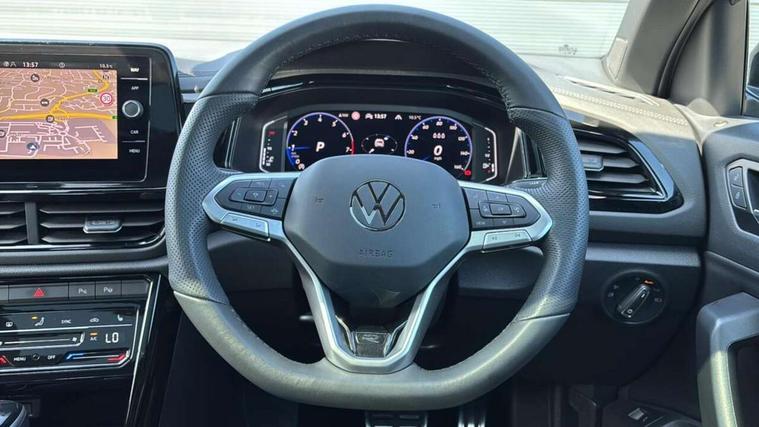 10.25" Digital cockpit pro, Advanced driver attention and drowsiness monitor, Emergency call service, Lane keeping system Lane Assist, Mobile phone interface, Modified key software - reduce switch off time for key status change to Long no motion, Online services, Park assist including front and rear parking sensors, Power assisted speed sensitive steering, Rear view camera, Service interval indicator, Tailgate/trunk lid release from outside, Think blue trainer driver tips and journey analysis, Warning sound and light for front seatbelts unfastened, Wireless app connect, Battery regeneration during braking, Rear shock absorption chassis with increased ride height, Start/stop function with battery regeneration, DAB Digital radio, Diversity antenna for FM reception, Music playback - MP3, WMA and AAC files, SD card slot, Simultaneous pairing of 2 compatible mobile devices, Title and cover art display, We Connect and We Connect Plus functionality, Advanced dynamic light assist for LED matrix headlights, Auto dimming interior rear view mirror, Automatic hazard lights activation under emergency braking, Black roof rails, Dynamic cornering light, Dynamic headlight range control with self adjusting whilst driving, Electrically adjustable and heated door mirrors, Extended roof spoiler, Exterior ambient lighting, Exterior mirrors aspherical on driver side, convex on front passenger side, External USB type C socket and charging sockets, Front windscreen wiper with intermittent wipe and 4 position delay, Heated rear window, Illuminated front grille, IQ LED matrix headlights, LED 3rd brake light, LED rear number plate lights, LED rear tail lights with dynamic turn signal, LED separate daytime running light, Light mode for poor weather, rain, fog or snow, Power windows with comfort operation and circuit breaker, Privacy glass for rear side windows and rear window, R-Line design body coloured bumpers, Rain sensor, Rear exhaust tailpipe, Rear fog light on one side and reversing lights on both sides, Rear side wing doors, Rear wash/wipe with intermittent wipe setting, Remote electrically foldable door mirrors, puddle lights and reverse activated passenger's door mirror, Tilting and sliding panoramic sunroof with rear panoramic sunroof, 12V power socket in centre console, 3 rear head restraints, 3 seat bench in 2nd row, 4 load lashing points in luggage compartment, Air care climatronic air conditoning system with active combination filter and 2-zone temperature control, Chrome plated radiator grille inserts, air vent surrounds and light switch surrounds, Door and side trim panel with leatherette insert, Drawer under drivers seat, Front + rear carpet mats, Front centre armrest, Front comfort sports seats, Front cupholders x 2, Front footwell illumination, Front reading light, Front scuff plates with R Line logo, Front seat back storage pockets, Glove compartment door with light, Instrument lighting, white adjustable panel illumination, Interior ambient lighting and surround lighting, Interior light delay, Isofix child seat preparation, Leather gearshift handle, Load-through provision with cup holder when folded down ('Unsplit rear seat bench, split folding backrest, with centre armrest), Luggage compartment lighting, Non-folding front passenger seat backrest, Single front passenger seat, Stainless steel pedals, Storage compartment in left and right luggage area, Storage compartment in rear doors, Storage compartments in driver and front passenger doors, Sunvisors with illuminated vanity mirrors, Variable boot floor, height adjustable and removable, Black design pack - T-Roc black edition plus, Easy open package with safelock - T-Roc, Sport pack with sports suspension - T-Roc, 3 point height adj front seatbelts + pretensioners, 3 point seatbelts in outer rear with ECE label, ABS, Child locks on rear doors, City emergency braking and pedestrian monitoring, Driver and front passenger airbag with front passenger airbag deactivation, Driver and front passenger safety-optimised head restraints, Drivers seatbelt reminder, Electronic parking brake, Electronic Stability Control (ESC) inc EDL (Electronic Differential Lock) and ASR (Traction Control), Front and rear passengers curtain airbag system including front side airbags, Front disc brakes, Hill start assist, Predictive pedestrian protection, Rear disc brakes, Two tone horn, Tyre pressure loss indicator, Volkswagen roadside assistance, Keyless locking and starting system keyless access with safelock, Gloss deep iron dash trim, 19" Misano black diamond turned alloy wheels with low rolling resistance and anti theft wheel bolts, Tool kit, Trims for alloy wheels, Tyre mobility kit including compressor and sealing foam,
