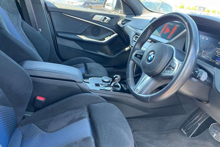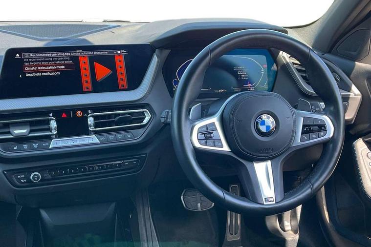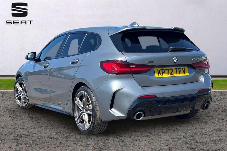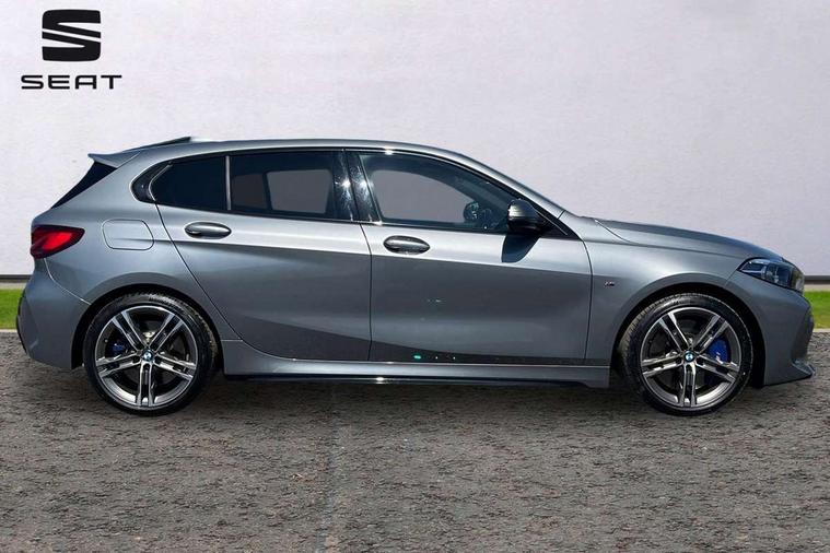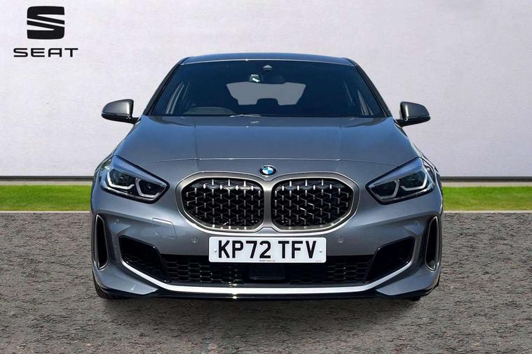 Active guard plus, Attentiveness assist, BMW ConnectedDrive online services, BMW Teleservices, Check Control warning system for monitoring of lights and door/luggage compartment open warning, Cruise control with speed limiter, Eco pro mode, Electric power steering, Electro hydraulically controlled multi-plate clutch transfers drive to rear axle and with power take-off device located on the front differential., Energy efficient operating strategy, Front axle single joint with specific axle kinematics to minimise drive influences on steering + provide increased rigidity agile driving behaviour, Gearshift time display in manual mode, Integrated owners handbook, Lane departure warning system, M Sports steering with M135i xDrive specific settings, Oil sensor for level and grade, On board computer, Optimum shift indicator, Personal Profile, Pull away assistant, Rigidly mounted rear subframe - Multi link construction with separate spring / damper configuration and excellent driving characteristics, Speed limit Info including no-overtaking indicator, Sporty fast gear shifting in sport mode, Aluminium lightweight construction, Anti roll bar front and rear, Balancer shaft, Double VANOS, Drive Performance Control, Eight speed sport automatic transmission with gearshift paddle switches, Electronic differential lock, Electronic selector lever, Engine cover with M performance designation, High precision injection, Larger fuel tank capacity (50 litres), Launch control, M135i specific heavily de-throttled engine intake air guide, M135i specific high-performance cooling package, M135i specific larger turbocharger with integrated divert-air valve, Petrol Particulate Filter, Twin tube gas filled shock absorbers with degressive characteristic curve, VALVETRONIC engine management, Variable, stepless and infinitely adjustable distribution of drive torque between the front and rear axles, xDrive intelligent all wheel drive with M135i specific reinforced components, DAB Digital radio, Auto dimming rear view mirror, Automatic headlight beam throw control, Automatic windscreen wipers and automatic headlight, Body colour door handles, Body colour roof trims, Cerium grey exterior mirror caps, Direction indicator side lights in exterior mirrors, Electrically adjustable exterior mirror with mirror adjustment switch on drivers armrest and aspheric on driver side, convex on passenger side, Exhaust tailpipe, Cerium Grey with bevelled finish - twin, round 100mm, left and right split, Fading support, Folding side mirrors with auto dimming/folding wing mirrors with auto dimming, Follow me home headlights, Front and rear bumper system with replaceable deformation elements, Front and rear electric windows with open and close fingertip control, anti trap facility and comfort closing, Front door sill finishers with M135i designation, Green tinted heat protection glazing, High gloss shadowline window frame, Recess cover mirror frames and B/C pillar embelisher trim, High level third brake light, Integrated front windscreen with washer jets, Kidney grille frame in Cerium Grey with Mesh design, LED daytime running lights, LED eyebrow turn indicators, LED front fog lights, Lightweight engineering, M logo designation side in cerium grey, M Performance exhaust system with valve control and minimised exhaust back pressure, M Performance specific setup, M Sport spoiler, Matt black air guide grilles, Matt black wheel arch trim, Model designation on electric bootlid includes xDrive designation for M135i xDrive, Nearside reverse light in rear light cluster, Preparation for high beam assistant, Rear fog lights, Rear side wing doors, Rear window wiper, Reinforced crank drive, new pistons and adapted con rods, Shark fin antenna, Trailer stabilisation logic, Visible VIN plate, Welcome lighting, 12V power socket in front centre console with blanking plug, 3 rear seat head restraints, 3 seat bench in 2nd row, 3 spoke sports leather steering wheel with black leather and stitching, pearl chrome decorative finish, specific M Badge, Anthracite headlining, Black boot net with lashing eyes, Cargo function on 2nd seat row, Child seat ISOFIX attachment for two outer rear seats and front passenger seat with anchorage points, Conditioned based service, Driver and front passenger backrest net on rear, Driver and front passenger seat heating, Driver side folding compartment in instrument panel, Folding rear clothes hook, Four grab handles integrated in roof lining, Front and rear door pockets with bottle holders, Front and rear side armrest integrated into door trim, Front armrest, Front M sports seats, Glove compartment, Height adjustable front head restraints, Luggage compartment for bag hooks on left and right, foldable luggage compartment liner and four lashing eyelets, Manual adjust steering wheel, Multi-function controls for steering wheel, Single front passenger seat, Storage compartment in centre console, Storage compartment in luggage compartment, Stowage of the parcel shelf in luggage compartment trim, Sun visors with vanity mirrors and insert tab, Two front centre console cupholders, Two zone automatic air conditioning, Type C two USB ports in rear centre console, Velour floor mats, Additional interior lighting pack - 1 Series M135i, BMW live cockpit professional pack- 1 Series, Connected pack professional - 1 Series, Interior lights pack - 1 Series, M Sport exterior styling aerodynamics pack - 1 Series 135i, 2 tone horn, 3 point seatbelts on all seats, front pyrotechnic belt tensioners, stopper and belt force limiters, rear coded belt buckles, Airbags - Front driver/passenger, front and rear curtain head protection, front side, manual deactivation of front passenger airbag, Anti lock braking system (ABS) with brake assist, BMW emergency call, Brake drying, Braking readiness, Child proof locking system in rear door, City braking function, Comfort modes, Cornering brake control, Crash sensor activating of airbags, Unlocking doors, hazard warning 