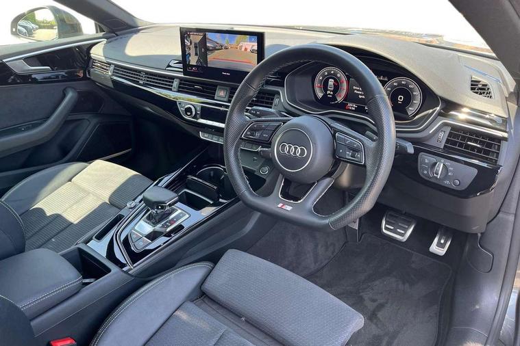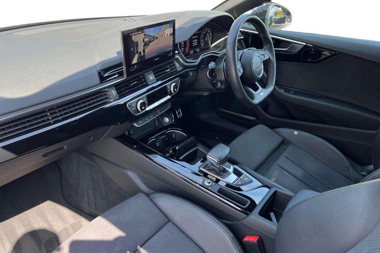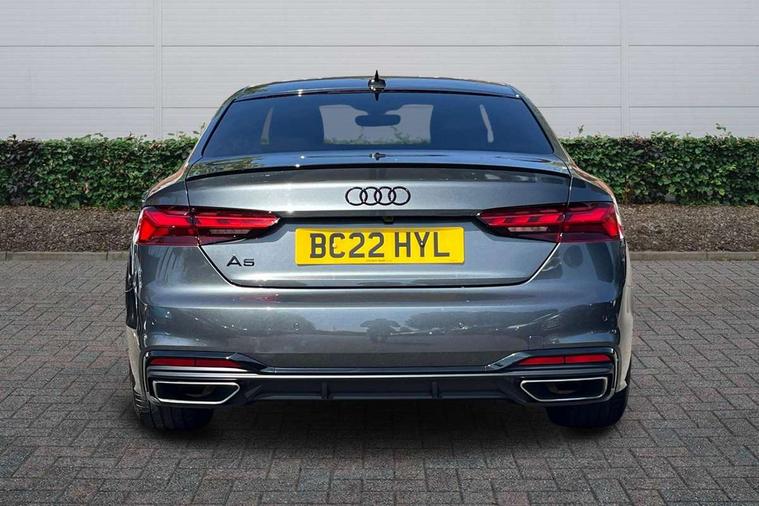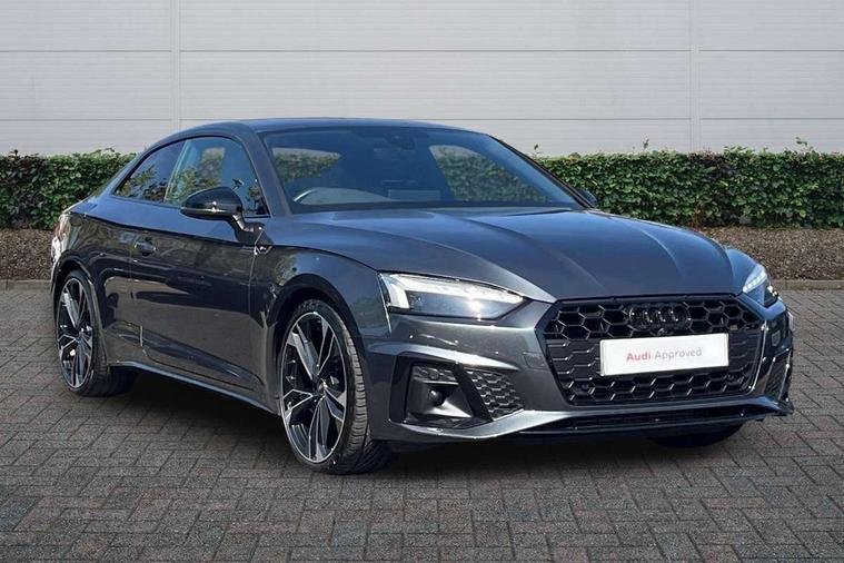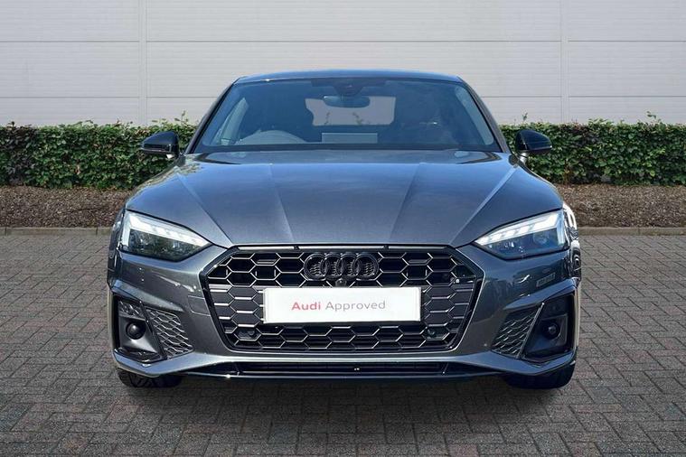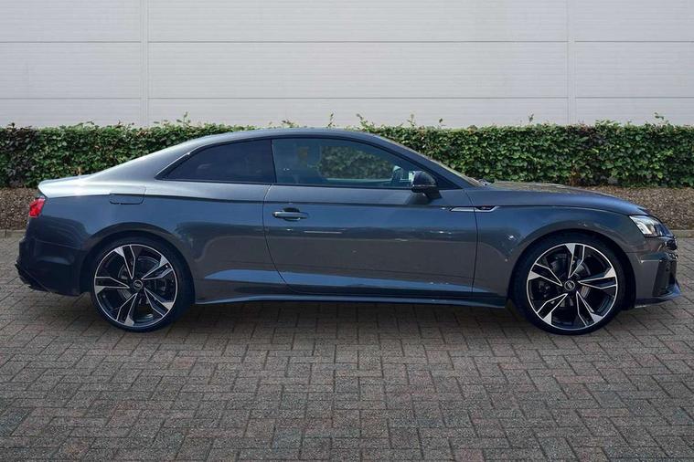 Audi connect safety and service (e-call), Audi connect with Amazon Alexa Integration, Audi drive select (Auto, Comfort, Dynamic and Individual), Audi parking system plus with front and rear sensors, Audi smartphone interface, Audi virtual cockpit - 12.3" full colour digital instrument cluster, vehicle/engine speed, Radio/media information+Driver assistance systems, Automatic start-stop system with coasting functionality and efficiency programme, Bluetooth interface, Electric boot lid release, Electro-mechanical power steering, Email, calendar and text messages displayed via MMI, MMI nav+ with MMI touch - 10.1" high resolution MMI display, touch sensitive, 3D map, route/country info, dynamic route guide, personal route assist, Rear view camera, Service interval indicator, Voice control system, Sports suspension lowered by 23mm, 8 passive loudspeakers, CD player, DAB digital radio reception, Two additional USB ports for rear passenger in rear centre console, Two SDXC card slots, Audi matrix LED headlights with LED rear lights + dynamic front and rear indicators, Auto dimming rear view mirror, Black audi rings decal above rear sills, Black door mirror housings, Body colour door handles, Body colour front spoiler lip, Body colour side sill trim, Electric adjustable heated door mirrors, Electric folding door mirrors, Electric front windows, Front fog lights, Honeycomb structure radiator grille in grained matt black, LED daytime running lights, LED third brake light, Matt aluminium silver tailpipe trim, Privacy glass, Rain and light sensors, Rear diffuser in matt titanium black with trim strip in matt aluminium silver, Rear side wing doors, S line front and rear bumpers with side skirts, S model rear spoiler in black, Side air inlets in grained matt black with matt aluminium silver inlay, Variable front intermittent wipers, Windscreen with acoustic glazing, 4 way electric lumbar support for driver and front passenger, 40/20/40 split folding 2 seater rear seat bench with rear centre armrest, Adjustable steering column, Black cloth headlining, Black perforated leather gearknob, Contrast stitching on seats, steering wheel and gear lever gaiter, Deluxe 3 zone electronic climate control, Front centre armrest, Front head restraints, Front/rear floor mats, Heated front seats, Illuminated door sill trim with S logo, ISOFIX child seat mounting and top tether, Luggage compartment mat, Manual seat adjustment, Rear headrests, Single front passenger seat, Stainless steel pedals, Sunvisors with vanity mirrors, Black styling pack - A5 Coupe/Sportback, LED interior light pack - A5/RS5, 2 x 3-point rear seatbelts, 6 airbags - Driver, front passenger, curtain and side airbags, Electromechanical parking brake, Electronic Stabilisation Control (ESC) including ABS, ASR and EDL, Front passenger airbag deactivation, Height adjustable front seatbelts, Hill hold assist, Multi collision brake assist, Pop-up bonnet for pedestrian protection, Pre sense city, Seatbelt monitoring, Tyre pressure warning, Variable restraint system, Warning triangle and first aid kit, Anti theft alarm system, Anti theft wheel bolts, Immobiliser, Keyless Go, Remote central locking, Piano black finish inlay, 20" 5 twin spoke polygon design alloy wheels in gloss anthracite black and gloss turned finish, Tool kit, Tyre repair kit,