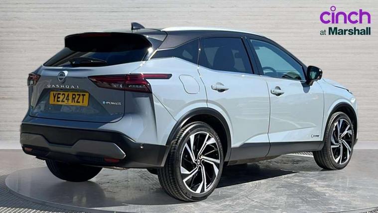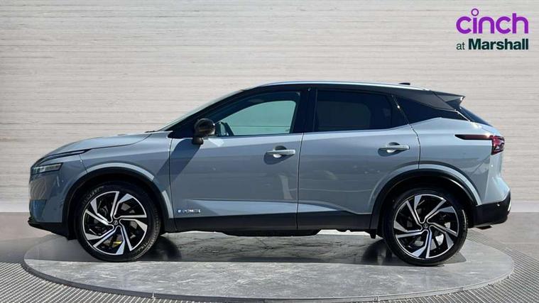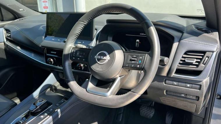Advanced windscreen head up display, Blind spot warning, Drive modes (sport, normal, eco), e-Pedal step, Electric speed sensitive power steering, Emergency and breakdown call, Front and rear parking sensors, Full Digital 12.3" TFT Digital Combimeter, Google maps services - search, weather, 3D maps and Google street view, Hands free power tailgate, Idle stop/start system, Intelligent around view monitor, Intelligent Cruise control (ICC), Intelligent driver alert system, Intelligent forward collision warning, Intelligent lane intervention, Lane departure prevention, Lane departure warning system, Lane keep assist, Moving object detection, Nissan connect 12.3 inch touchscreen infotainment system, Nissan connect navigation, Pro pilot park assist, Push button starter, Rear cross traffic alert, Rear view camera, Remote control services - door locks, lights, horn and car locator, Telematics - notifications and connectivity services, TomTom live traffic services, Traffic sign recognition with legal speed adjustment, Trip computer, Virtual personal assistant and firmware over the air capability, Wireless Apple CarPlay and wired Android Auto, Wireless charging pad, 10 Bose speakers - 2 tweeters, 6 high and medium frequency door speakers and 2 in subwoofer, AM/FM audio system with DAB, Bluetooth audio streaming, Bose acoustimass bass box, Digital amplifier, Front USB connections (Type-A and Type-C), Rear USB charging only ports (Type-A and Type-C), Auto dimming rear view mirror, Auto rear wiper when reversing, Automatic hazard signal with emergency stop signal, Body colour mirror caps, Body coloured door handles, Bodyside mouldings, Chrome side window finisher, Door handle with button, Door mirror memory, e-POWER badging, Electric auto folding door mirrors, Electrically adjustable and heated door mirrors with LED turn indicator, Follow me home headlights, Front and rear LED turning signals, Headlights auto levelling system, Intelligent auto headlights, LED 3rd brake light, LED daytime running lights, LED front fog lights, LED headlights with adaptive driving beam, LED rear lights, One touch front and rear electric windows with remote opening and closing, Privacy glass, Rear bumper with graphite insert, Rear reversing light (bulb lighting), Rear roof spoiler, Rear side wing doors, Rear styling plate, Reverse tilting door mirrors, Shark fin antenna, Splash free rain sensing wipers, Super UV and infrared cut glass, Thermaclear heated windscreen, Three blink turn signal, 12v power socket in dashboard and luggage, 2x Rear coat hooks, 3 bench rear seats in 2nd row, 3 rear headrests, 4 folding assist grip, 6 Luggage hooks - 4 on floor, 2 on side, 60/40 split folding rear seat bench, Ambient lighting around centre console, Ambient lighting in front doors, Centre console storage tray, Chrome interior door handles, Dark black/blueish PVC wrapping, Dark headlining, Driver and front passenger sunvisors with illuminated vanity mirrors, Driver seat back pocket, Dual zone automatic climate control with pollen filter, e-POWER shifter, Electric 4-way lumbar support for drivers seat, Electric adjustable 4 way lumbar support for passenger seat, Electrically adjustable driver seat with massage and memory functions, Front and rear door storage, Front centre console and armrest, Front cupholders x 2, Front door with bottle holders, Glovebox with light, Hard trunk cover, Heated front seats, Heated steering wheel, Height adjustable driver's seat, Height adjustable front headrests, Height adjustable passenger seat, Leather steering wheel, Luggage board system, Luggage space lighting, Manually adjustable passenger (slide recline + lifter), Multifunction steering wheel, Passenger seat back pocket, Quilted premium leather upholstery, Rear armrest with 2 cupholders, Rear door bottle holders, Single front passenger seat, Soft PVC kneepad, Steering wheel switches, Tilt/telescopic adjustable steering wheel, Two rear isofix child seat anchorage points with top tether, Welcome light and doors with console tray ambient lighting, Glass roof pack with roof rails - Qashqai, 3x3 point rear seatbelt pretensioners + load limiters, ABS with EBD and brake assist, Active brake limited slip, Auto hold function, Child locks on rear doors, Curtain and front side, far side airbags, Driver and passenger airbags, Driver, passenger and 2nd row rear seat belt reminder, Electronic parking brake, Front seatbelt pretensioners + load limiters, Height adjustable front seatbelts, Hill start assist, Intelligent blind spot intervention, Intelligent front emergency braking with pedestrian, cyclist recognition and junction assist, Intelligent rear automatic braking, Tyre pressure monitoring system, Vehicle dynamic control, Advance intelligent key with driver memory storage (seats, mirrors, audio), Capless fuel filler, Engine immobiliser, Remote central door locking with deadlocking, Thatcham Cat.1 alarm, Interior instrumental panel C finisher, 20" Diamond cut alloy wheels, Tyre puncture repair kit,