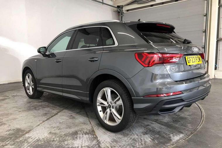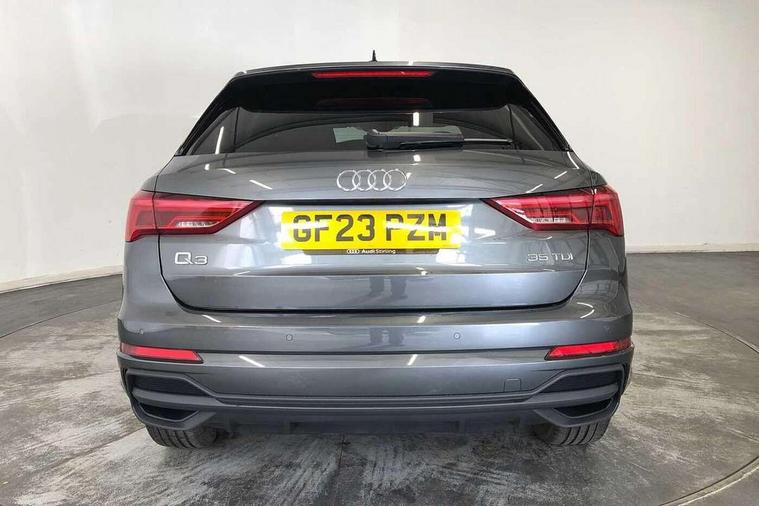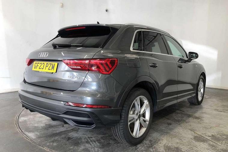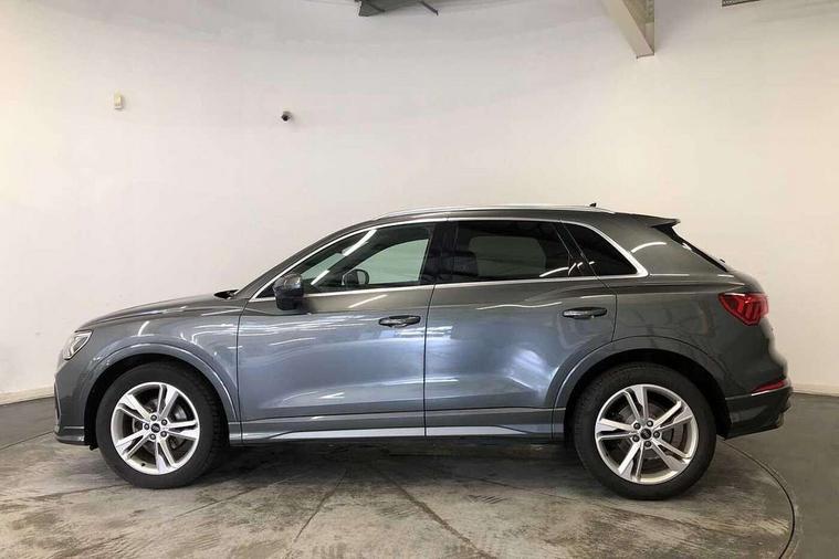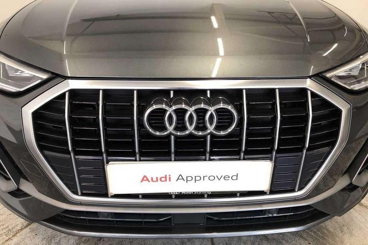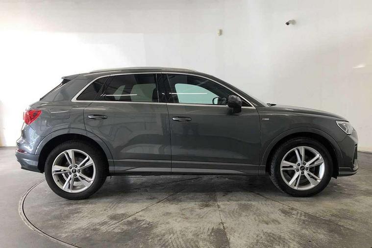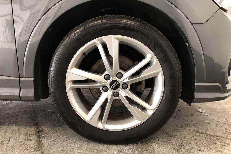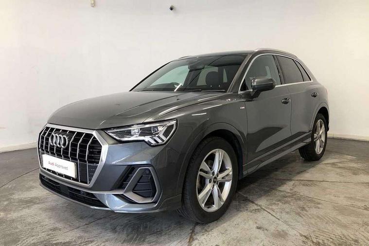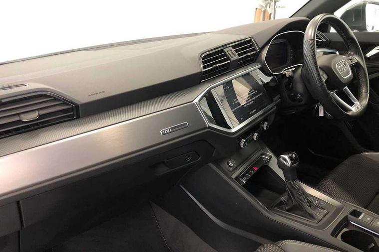 Amazon alexa Integration, Audi drive select, Audi lane departure warning, Audi smartphone interface includes wireless Apple carplay/Android Auto, Audi Virtual Cockpit - 10.25" display, Bluetooth interface, Camera based traffic sign recognition, Legal emergency call, MMI Navigation Plus with high resolution 10.1 inch touchscreen colour display, Power operated tailgate, Progressive steering, Service interval indicator, Start stop system with recuperation, Voice control system with natural language interaction, Diesel particulate filter, Sports suspension, 2 USB-C ports with charge and data functions, 6 passive loudspeakers, DAB digital radio module, Acoustic windscreen, Aluminium roof rails, Aluminium window trim, Anthracite black radiator grille, Auto dimming frameless rear view mirror, Body colour front spoiler blade, Body coloured bumpers, Electrically folding, adjustable and heated door mirrors with integrated LED side indicators and kerb view function for passenger side, Front and rear electric windows, Front fog lights, Front side air inlets in matt platinum grey, Grille vertical bars in aluminium silver/Matt, High gloss black finish B and C pillars, LED Dynamic rear indicators, LED headlights with LED daytime running lights, LED rear lights, LED third brake light, Privacy glass dark tinted rear and rear-side windows (from B-pillar backwards), Rain and light sensors, Rear diffuser grille in grained matt black, Rear diffuser strip in matt anthracite black, Rear side wing doors, Rear wiper, S line badges on front wings, S Line front and rear bumpers, Side skirt insert in matt Platinium grey, Variable front intermittent wipers, 12V socket in rear centre console, 3 seat bench in 2nd row, 3 spoke leather multifunction steering wheel features S badging and grips in perforated leather with contrast stitching, 40:20:40 folding with manual adjustment for 60:40 forwards/backwards position and backrest angle, Adjustable rear seat bench/backrest with centre armrest and cupholder, Black cloth headlining, Dual zone electronic climate control, Front and rear black floor mats with contrast stitching in rock grey, Front and rear headrests, Front and rear roof module including reading lights, Front centre armrest, Glove compartment lighting, Height and reach adjustable steering wheel, Illuminated door sill trims with S logo, ISOFIX child seat mounting for front passenger with airbag deactivation and outer rear seat including top tether attachment point for outer rear seats, Luggage compartment light, Manual front seats with height adjustment, Perforated leather gearknob, Single front passenger seat, Stainless steel luggage compartment sill finisher, Stainless steel pedals, Ambient lighting pack - Q3, Non smoking pack - Q3, 3x3 point rear seatbelts, 6 airbags - Driver, front passenger, curtain and side windows, Audi pre-sense front with pedestrain and cyclist recognition, Electrically operated child locks on rear doors, Electromechanical parking brake, Electronic stabilisation control including ABS, ASR and EDL, Front seatbelt reminder, Hill descent control, Hill hold assist, Pre sense basic, Seatbelt monitoring, Tyre pressure warning, Warning triangle and first aid kit, Anti theft alarm, Anti theft wheel bolts, Immobiliser, Remote central locking, Aluminium look interior elements, Dark matt brushed aluminium inlay, Detail dashboard around MMI touch colour display in glass look, black with surround in aluminium look, Leatherette door armrest,