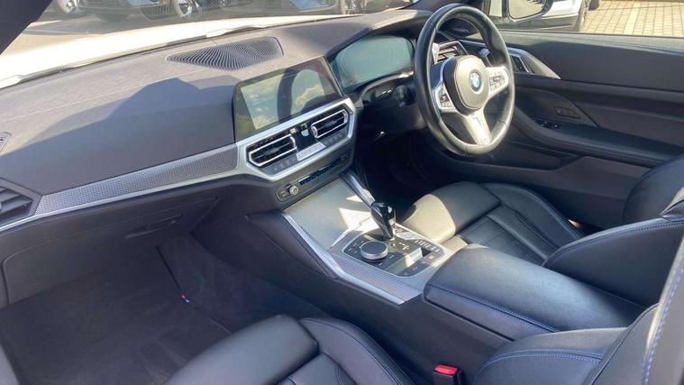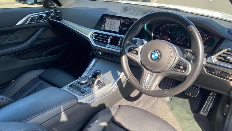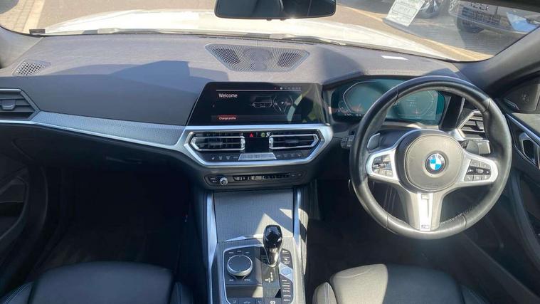Active guard plus, Attentiveness assist, Auto start-stop, BMW ConnectedDrive online services, BMW Live Cockpit Professional Nav with 12.3" instrument display + 10.25" display, Intelligent Voice Assist, BMW OS 7, HDD, 2USB, 4G LTE connect, BMW service history, BMW Teleservices, Brake pad wear indicator in front and rear, Check Control warning system for monitoring of lights and door/luggage compartment open warning, Condition based service, Cruise control with brake assist, Electric power steering with Servotronic steering optimised at all speed ranges, Gearshift time display in manual mode, iDrive controller on centre console, Instrument cluster with speedometer with mph readout, tachometer, fuel gauge and oil temperature gauge, Integrated owners handbook, Oil sensor for level and grade, warning by check control system, On board computer - average speed, fuel consumption, outside temp display with acoustic warning, clock/date, service interval, odometer/trip meter, Optimum shift indicator, Variable sport steering, 8 speed automatic steptronic transmission with gearshift paddles, Balanced 50/50 weight distribution, Double VANOS, Drive performance control - ECO PRO, comfort and sport modes, High precision injection, Low centre of gravity, M sport suspension, Petrol Particulate Filter, Stroke dependent dampers, VALVETRONIC engine management, DAB tuner, Electronic service booklet, Acoustic glazing, Automatic headlight beam throw control with load dependent regulating reaction, dynamic compensation of braking dive and acceleration squat, Automatic windscreen wipers and automatic headlight, Automatically dimming electrochromatic rear view mirror, BMW emblem on engine compartment lid and tailgate, BMW kidney grille with mesh grille front side of the nuggets in matt aluminium and frame in chrome high gloss, Body colour fuel filler flap, Body colour roof fin, Brushed aluminium inserts in the front door sill finishers with BMW designation, Dynamic brake lights, Electric windows - front and rear, with open/close fingertip control, anti trap facility and comfort closing function all round, Exhaust tailpipe - split left and right, Exterior mirrors - electrically folding with anti-dazzle, Fading support, Front and rear bumper system, Front apron plastic in body colour, Green tinted heat protection glazing, High gloss shadow line exterior trim, Illuminated bow type door handles in body colour drivers side with door lock, Interior rear view electrochromatic mirror with automatic anti dazzle function, LED daytime running lights, LED front fog lights, Licence plate panel integrated into front bumper and tailgate, Lightweight engineering, M designation on front side panels, left and right, Model designation on right side of tailgate, One piece front bumper cover including towing eye cover in body colour, Preparation for high beam assistant, Rear boot, Side frame decorative moulding black matt, Third brake light, Two part LED tailights in L-shape with components in smoked glass, brake light, LED turn indicator and rear fog light, Visible VIN plate, Welcome lights in interior and door handle area, Widened track and increased camber values for max transverse dynamics, agility and steering precision, Window recess cover black high gloss, Windscreen wipers with integrated heated washing jets, 12V power socket in front centre console, 2 2nd row folding seats, 2 front cupholder in centre console with clamping elements and matt black inlay, 2 Rear seat headrests, 2nd row centre armrest with built-in cupholders, 3 spoke M sport leather multifunction steering wheel, 3 zone automatic air conditioning, 4 pieces lashing eyelets in luggage compartment, Ambient lighting with welcome carpet light, Armrest integrated in front and rear door trim + front centre console armrest, Electric seat adjustment with memory, Four grab handles integrated in roof lining, Front and rear door exit lighting (left / right), Front and rear door pockets, Front and rear footwell lights, Front and rear reading lights, Front headrests, Front seat backrest width adjustment, Front sport seats, Heated driver and front passenger seats, Height adjustable mechanically and infinitely variable steering column, Illuminated armrest storage compartment, Illuminated glove compartment with separate small compartment, Luggage compartment light, Make-up mirror lights, Single front passenger seat, Storage compartment in rear centre console, Sunvisors with vanity mirrors and ticket pocket, Toolkit located in luggage compartment, USB type - C cable charging function in the rear centre console, Velour front floor mats, Vernasca leather upholstery, Connected professional package - 4 Series, M sport exterior styling pack - 4 Series, Park assist pack - 4 Series, 2 x 3-point rear seat belts, Battery safety cut-off, BMW emergency call, Brake energy regeneration, Braking pre-tensioning, CBC - (Cornering brake control), Child proof rear door locking, Coasting in idle in ECO PRO mode, Crash sensor activating of airbags, Unlocking doors, hazard warning lights, fuel cut off, interior lighting+activation of safety battery terminal clamp, Driver and front passenger side airbags, integrated in the door side seat backrest bolsters for all seat variants, Driver/Front Passenger airbags, Dry braking, Dynamic brake control, Dynamic stability control + (DSC+) - Anti-lock Braking System (ABS) with brake assist and cornering brake control + Automatic Stability Control (ASC), Dynamic Traction Control - DTC, Electromechanical parking brake including automatic hold function and automatic release of the parking brake when pulling away, Electronic differential lock control (EDLC), Front and rear ventilated brake disc, Front passenger manual airbag deactivation, Head airbags for all 4 outer seats, Hill start assistant, Seat belt security check for driver and front passenger, Seat belt with belt stopper, pyrotechnic belt tensioners and belt force limiters, Side impact protection, Tyre pressu