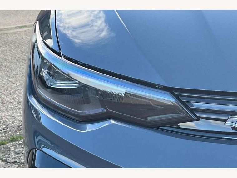 Activated carbon canister, Adaptive cruise control (ACC), Advanced driver attention and drowsiness monitor, Dynamic road sign display, Dynamic steering, E-Sim card for online connectivity, eCall emergency call system, Multi-color Digital cockpit pro, selection of different info profile possible, Multifunction front facing camera for distance control, Navigation system, Oncoming vehicle braking when turning including swerve support, Speed limiter, Speedo, rev counter, electronic odometer, trip, service interval display, exterior temperature and fuel gauge, Traffic jam assist, Voice enhancer and voice control, Warning signal and warning light for front and rear seatbelts not fastened, We connect plus preparation, We connect preparation, Wireless app connect, Hybrid propulsion system, Petrol Particulate Filter, Start-stop system with battery regeneration (recuperation - energy recovery during braking), XDS electronic differential lock for improved traction and handling, 2 USB C ports in front, 2 USB charging sockets on the centre console in the rear charging capacity upto 45W, Digital radio reception (DAB), Diversity antenna for FM reception, Gaming platform via car app, Infotainment system with 12.9" display, Mobile phone interface with inductive charging feature, 3rd brake light, Auto dimming rear view mirror, Automatic headlamp activation with Coming home and Leaving home feature, Body colored bumpers in R-Line style, Body colour door handles, Exterior ambient lighting, Exterior mirrors convex on the left and aspherical on the right, Front and rear electric windows, Heat insulating windshield made of laminated glass, LED separate daytime running light, Rain sensor, Rear exhaust tailpipe, Rear fog light on one side and reversing lights on both sides, Rear side wing doors, Rear windscreen washer and wiper with interval delay, Remote electrically foldable door mirrors, puddle lights and reverse activated passenger's door mirror, Volkswagen logo in front, illuminated lighting animation with wake up/goodbye scenario and illuminated door handles, Welcome light with surround lighting, 12V socket in front centre console, 12V socket in luggage compartment, 3 rear head restraints, 3 seat bench in 2nd row, Ambient lighting with 30 colour including LED light unit in front footwell with selectable light colour, Black roof lining, Brushed stainless steel pedals, Chrome plated radiator grille inserts, air vent surrounds and light switch surrounds, Door insert, side trim panel and arm support in leatherette, Front + rear black carpet mats, Front centre armrest, Front seat lumbar support adjuster, Integrated front head restraints, ISOFIX anchors for child seats on outer rear bench seats and on front passanger seat compatible for i-Size, Luggage compartment lighting, Manual height adjustable front passenger seat, Manually height adjustable driver seat, Plastic gear knob, Premium sports seats in front, Rear cupholder and loadthough, Sardegna cloth upholstery with front and outer rear seats Art Velour inner sides of bolsters, Single front passenger seat, Split folding backrest with centre armrest and unsplit rear seat bench, Sun visors with illuminated vanity mirrors, Titanium black instrument panel, Black exterior Styling package with Matrix LED headlights - Golf, Winter package - Golf DSG Estate/Hatchback, 3 point height adj front seatbelts + pretensioners, 3 rear three point seatbelts, ABS, Autonomous emergency braking front assist with pedestrian and cyclist monitoring, Child locks on rear doors, Driver and front passenger airbag with front passenger airbag deactivation, Electronic parking brake with auto hold, ESC (Electronic Stability Control), Extended pedestrian protection measures, Hill start assist, Rear disc brakes, Two tone horn, Tyre pressure loss indicator, Volkswagen roadside assistance, Anti theft wheel bolts, Preparation for alcohol interlock, Decorative inserts carbon grey for dashboard and front door trim panels, 18" Leeds alloy wheels,