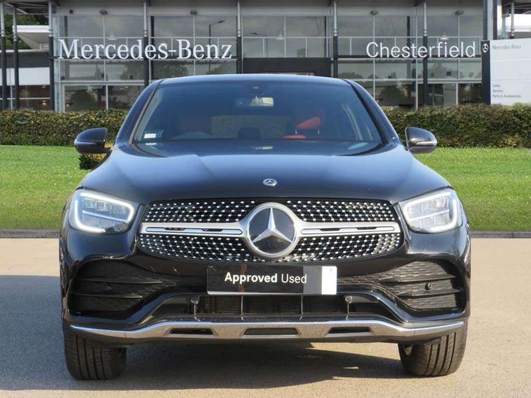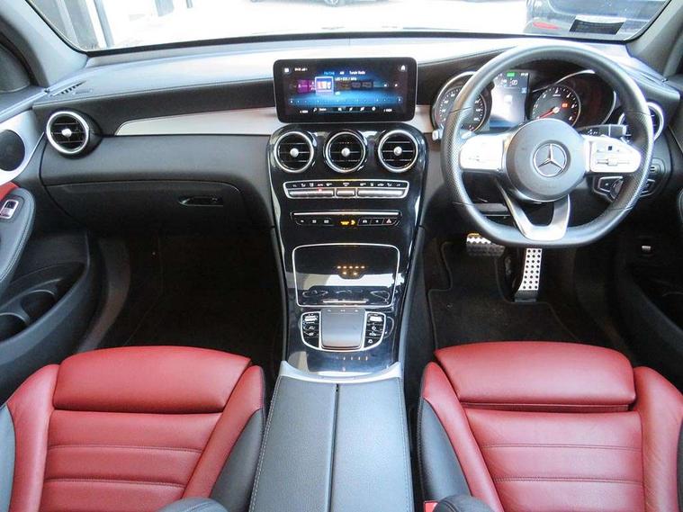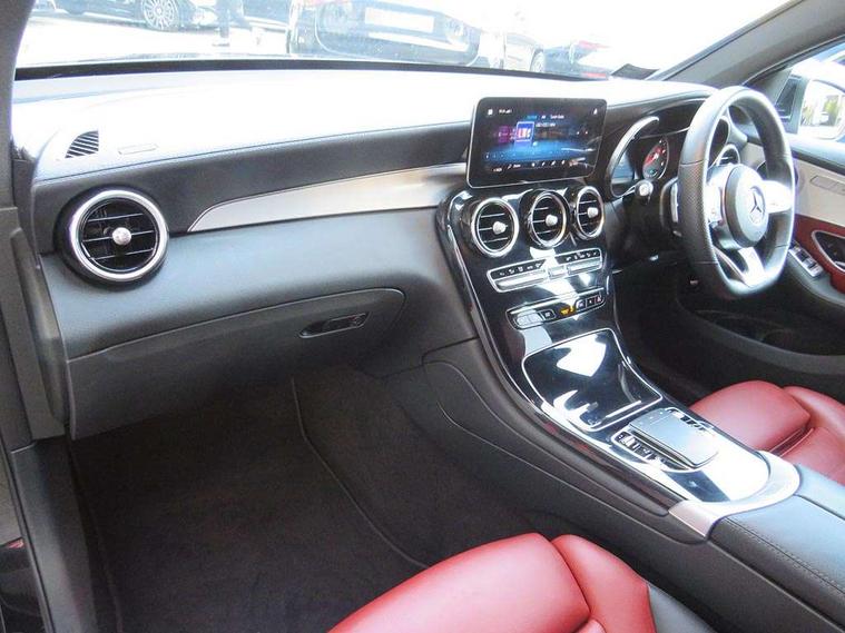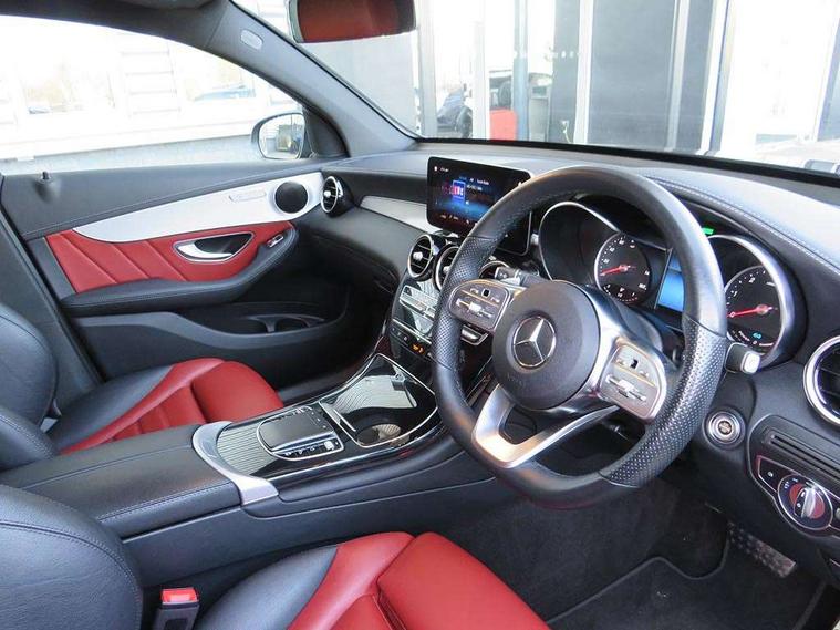 Active parking assist with parktronic system, Attention assist, Bluetooth interface for hands free telephone, Collision prevention assist plus, Cruise control with speedtronic variable speed limiter, Direct steer speed sensitive steering, DYNAMIC SELECT with a choice of driving modes (ECO, Comfort, Sport, Sport+ and Individual), Easy pack automatic powered tailgate, eCall emergency call system, ECO start/stop function, Hard disk navigation, Hey Mercedes Voice activation, Instrument cluster with 5.5-inch TFT multi-function display, MBUX Interior assistant, Mercedes connect me with remote online services, Multi function trip computer, Outside temperature display, rear seatbelt status indicator, Remote and charging services plus, Remote boot release, Reversing camera, Service indicator (ASSYST), 1 x 3 pin domestic 8m straight charging cable, 1 x type 2 and 3 phase 4m straight wallbox cable, 4MATIC permanent four wheel drive, 50 litre fuel tank, 7.4 kW onboard charger, 9G TRONIC plus automatic transmission with steering column gear selector, DIRECT SELECT steering wheel gearshift paddles, Diesel particulate filter, Sports suspension tuned for improved handling and driving dynamics, 5 speakers, Frontbass loudspeakers, MBUX multimedia system with DAB digital radio and touchpad, Media display 10.25-inch touchscreen display, Pre installation for Mercedes Benz Link, USB ports x 2 in centre console, Adaptive brake lights, AMG bodystyling - AMG front apron with sporty air intakes and chrome trim element, AMG diffuser-look rear apron with insert in black, Body colour door mirrors, Body coloured bumpers, Electric windows one touch open/close, Electrically adjustable and heated door mirrors, Front, side and rear exterior chrome trim, Headlamp assist automatic headlamp activation, High level LED brake light, LED high performance headlamps with integrated LED daytime running lights, LED tail lamp, Privacy glass with dark glass from B pillar backwards, Radiator diamond grille, Rain sensor windscreen wipers, Range adjustable headlights, Rear side wing doors, Rear wiper, Roof spoiler, Tinted glass all round with single layer safety glass, Tinted rear windows, Two chrome plated tailpipe trim elements, Variable front intermittent wipers, 2 way rear head restraints, 3-spoke multifunction sport AMG steering wheel in black nappa leather with flattened bottom section, chrome insert and perforated leather in grip area, 40:20:40 split folding rear seats, AMG floor mats with edging and embroidered AMG lettering, AMG sports seats, Artico man-made leather upper dashboard with contrast topstitching, Automatic child seat recognition sensor, Black roof lining, Dividing net - rear, Double cup holder in centre console, Easy-pack removable load compartment cover, Front armrest with storage box, Front door sills with Mercedes Benz lettering, Front head restraints, Front passenger seat, Front seats with electric adjust (backrest, height and seat cushion inclination) with 4 way electric lumbar support and manual cushion depth adjust, Heated front seats, Height/reach adjustable steering column, Illuminated and lockable glove compartment, Leather upholstery, Pre-entry climate control, Rear top tether child seat ISOFIX attachment, Sports pedals with stainless steel surfaces and rubber studs, Steering wheel with touch control buttons, THERMOTRONIC 3 zone automatic climate control, Interior lighting pack - GLC, Mirror pack - GLC, Storage pack - GLC, 3 rear 3 point seatbelts, Active bonnet, Adaptive brake system with HOLD function and brake drying in the wet, ASR, Black seat belts, Brake calipers with Mercedes-Benz lettering + perforated brake discs, Child proof door locks, Dual-stage airbags - driver and front passenger, driver knee bag and window bags for driver, front passenger and rear passengers, Electronic parking brake, Electronic stability programme (ESP) with curve dynamic assist and cross wind assist, Front and rear seatbelt reminder, Front passenger seat occupancy sensor, Hill hold function, Radar-based recuperation, Tyre pressure monitoring system, Warning triangle and first aid kit, Alarm system/interior protection/immobiliser, Automatic door locking, KEYLESS-GO starting function, Remote central locking, High gloss black with grained aluminium trim, 19" AMG 5 twin spoke alloy wheels painted tremolite grey with high sheen finish, Summer tyres, Tirefit tyre sealant kit,