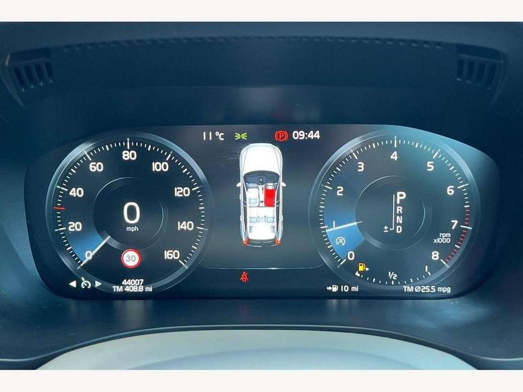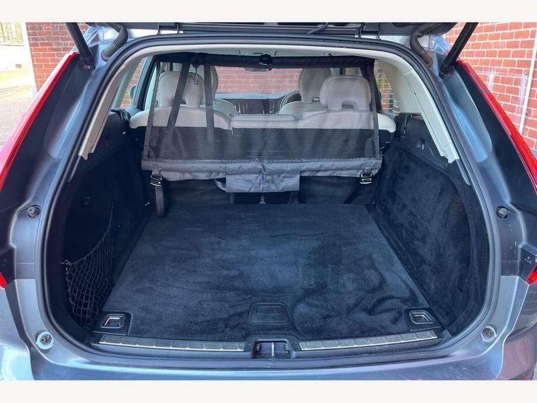 12.3" Active TFT crystal driver's instrument display, 9" Touch screen, Adjustable steering wheel force, Bluetooth hands free telephone kit, Drive mode selector, Front collision warning with full auto brake, Intelligent driver information system (IDIS), Lane keep assist with driver alert control, Oncoming Lane Mitigation, Power tailgate, Remote fuel flap release, Road Edge Detection, Service interval indicator, Speed limiter, Speed sensitive steering, Trip computer, Voice control system, Volvo on call, DAB Digital radio, Steering wheel mounted remote controls, Adaptive brake lights with high level LED brake lights, Aluminium tread plates, Auto dimming interior + exterior mirrors, Body colour bumpers, Body colour door mirrors, Electric folding door mirrors, Electric front+rear windows, Electrically adjustable and heated door mirrors, Headlamp levelling, Home safe and approach lighting, Illuminated side steps, LED Headlights + Active high beam incorporating daytime running lights, Piano black front grille with chrome surround, Rain sensor with automatic windscreen wiper activation, Rear wiper, Roof antenna, Roof spoiler, Silver roof rails, Tinted windscreen, Twin exhaust tailpipes with chrome finishers, Visible VIN plate, 12V power point in luggage area, 3 spoke leather steering wheel with chrome trim, 60/40 split folding rear seat, A-pillar parking ticket holder, B Pillar ventilation, Bright metal luggage threshold, Centre armrest storage illumination, Centre console cupholders and storage, Floor mats, Front footwell illumination, Front reading lights, Glovebox illumination, Head restraints for all seats, Heated front seats, Height/reach adjustable steering column, Illuminated driver/passenger vanity mirrors, Illuminated luggage compartment, Leather upholstery, Load cover, Lockable glovebox, Pollen filter, Rear armrest / integral cup holders / storage tray, Rear seat concealed storage, Theatre dimming interior lights, Underfloor stowage compartment, Vanity mirror with ticket holder, WHIPS - Whiplash Protection System, 5 three point seatbelts, ABS/EBD, City safety with steering support with Pedestrian + cyclist + large animal detection + front collision warning with full auto brake, Curtain airbags, Drivers knee airbag, DSTC-Dynamic Stability and Traction Control, Dual stage driver/passenger airbags, EBA, Electronic parking brake with auto hold, Fasten seatbelt reminder, First aid kit, HBA (Hydraulic Brake Assist), Hill descent control, Hill start assist, Passenger airbag deactivate switch, Road sign information display, Run off Road Protection, Seatbelt pre-tensioners, SIPS airbags, Tyre pressure monitor, Warning triangle, Anti-theft alarm including immobiliser/volume sensor + level sensor, Key integrated remote control central locking + fuel flap with deadlocking system and auto open/close power windows, Locking wheel nuts, Private locking for tailgate, Iron ore inlays,