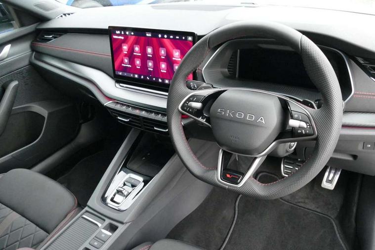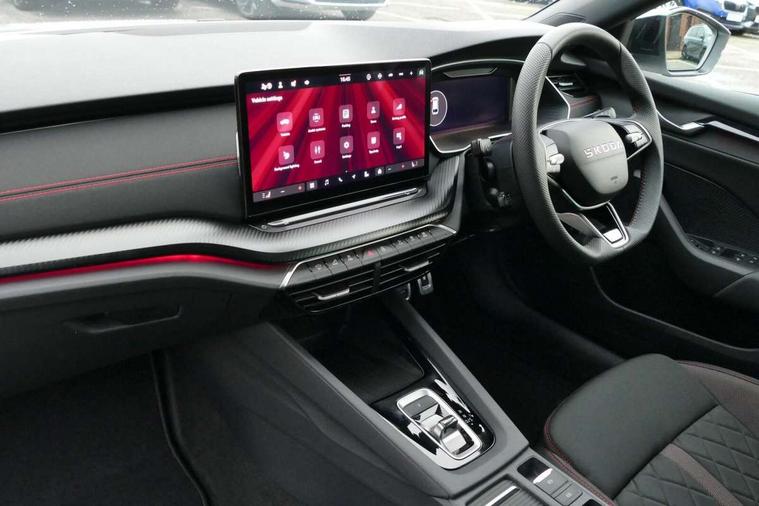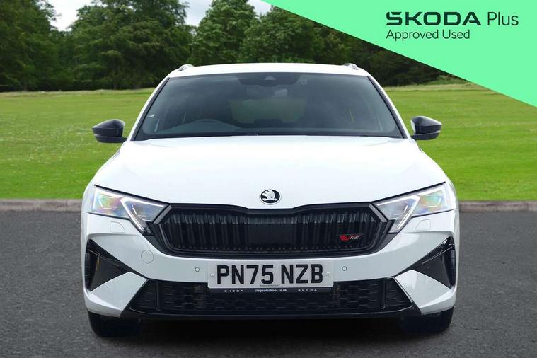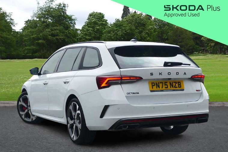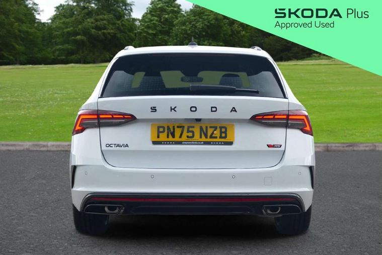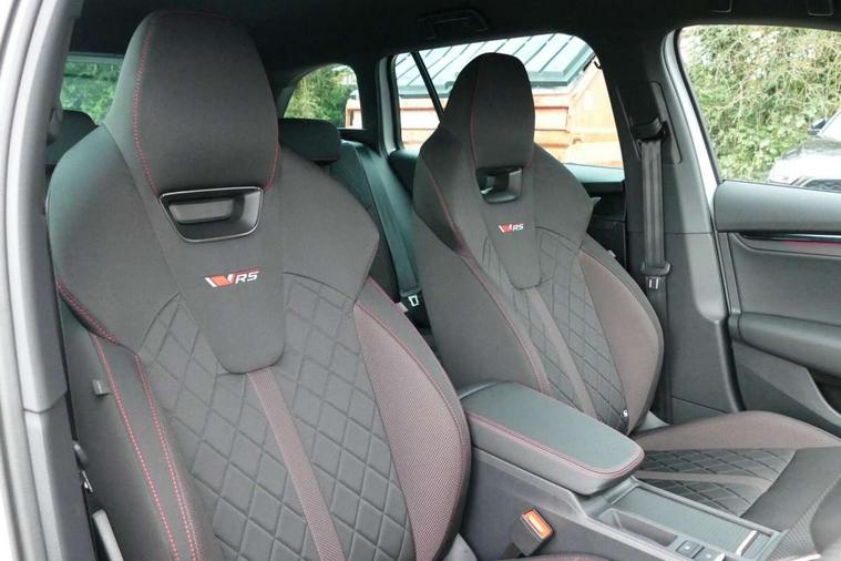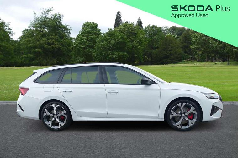 1x USB Typc C port in rear view mirror, 4x USB Type C ports - 2x in front centre console and 2x in rear (45W), Drive mode selection, Driver fatigue sensor, eCall emergency system, Electronic engine sound, Front assist system, Progressive dynamic steering, Traffic sign recognition, Turn Assist, Virtual Cockpit - 10.25" digital display, Voice control system, Wireless charging (15W) with cooling function, Wireless SmartLink for Apple CarPlay and Android Auto, Electronically controlled limited slip differential, vRS suspension, 13" touchscreen display with navigation, DAB Digital radio, Aero front windscreen wipers with intermittent function, Auto dimming rear view mirror, Black sport exhaust pipes, Body colour bumpers, Body colour door handles, Bumpers with rear red reflector strip, Electric front and rear windows, Exterior gloss black sports styling including front grille, window surrounds, door mirrors and badging, Gloss black diffuser, Gloss black roof rails, Gloss black spoiler, Heated rear windscreen, High beam control, High level third brake light, Ice scraper in fuel cap, LED daytime running lights, Logo projection in front doors, Rain and light sensors, Rear fog light on one side and reversing lights on both sides, Rear privacy glass, Rear side wing doors, Rear window wiper, Unique vRS bumpers and exterior styling, 12 volt socket in boot, 2x umbrella in door, 3 rear headrests, 3 seat bench in 2nd row, 4 foldable roof handles, Aluminium pedals, Front head restraints, Front sport seats, Heated front seats, Illuminated glovebox, Interior door handles in dark chrome, Jumbo Box storage, Luggage compartment lighting x2 lights, Mechanical rear seat release from boot, Single front passenger seat, Steering wheel in black leather with black stitching, Storage compartments in left and right of boot, Sun visors with mirrors, Sunglasses storage, Three spoke leather sports multifunction steering wheel with paddles, Ticket holder, Unsplit rear bench seat, split folding backrest with centre armrest with cupholder, Waste bin in door panel, Comfort package - Octavia Estate, Family package - Octavia, Light and view package plus - Octavia, vRS Design Selection pack - Octavia, 3x3 point rear seat belts, Alarm with interior monitoring, tilt sensor and back up horn, Curtain airbags and front side airbags, Driver and front passenger airbags, Drivers knee airbag, Electronic parking brake, ESC including ABS, EBV, MSR, ASR, EDS, HBA, DSR, Front central airbag, Hill hold assist, ISOFIX on front passenger seat and outer rear seats, Passenger airbag deactivate switch, Red brake calipers, Three point seat belts in front and rear, Two tone horn, Tyre pressure monitor, Visual and acoustic seat belt reminder, Warning reflectors in front door, Anti-theft wheel bolts, Keyless entry and start/stop, Remote central locking, Gloss black air vent surrounds, 19" Elias anthracite alloy wheels,