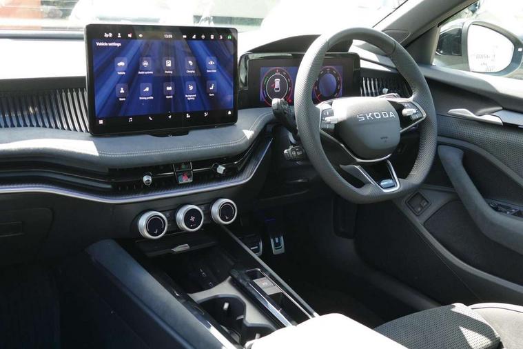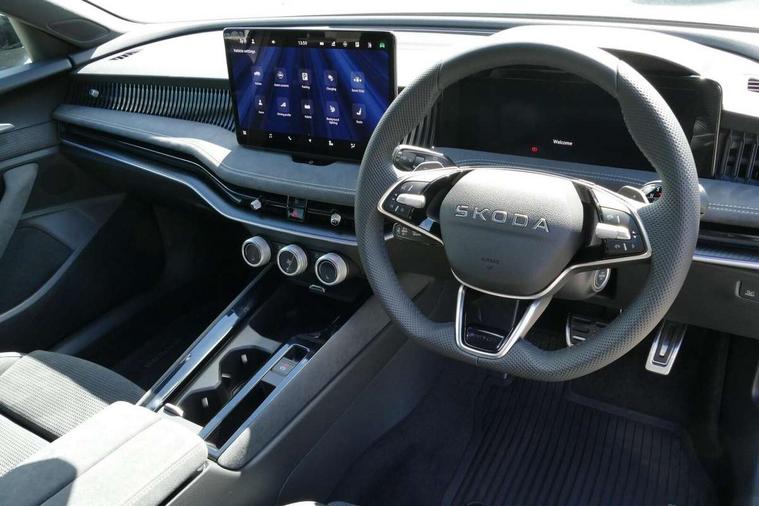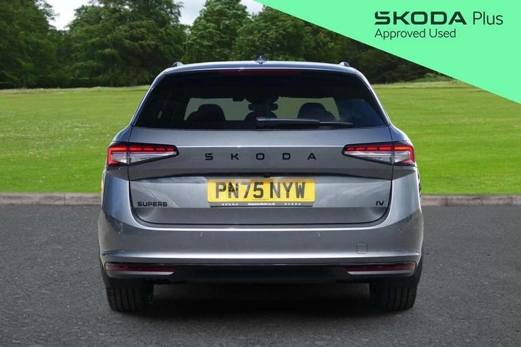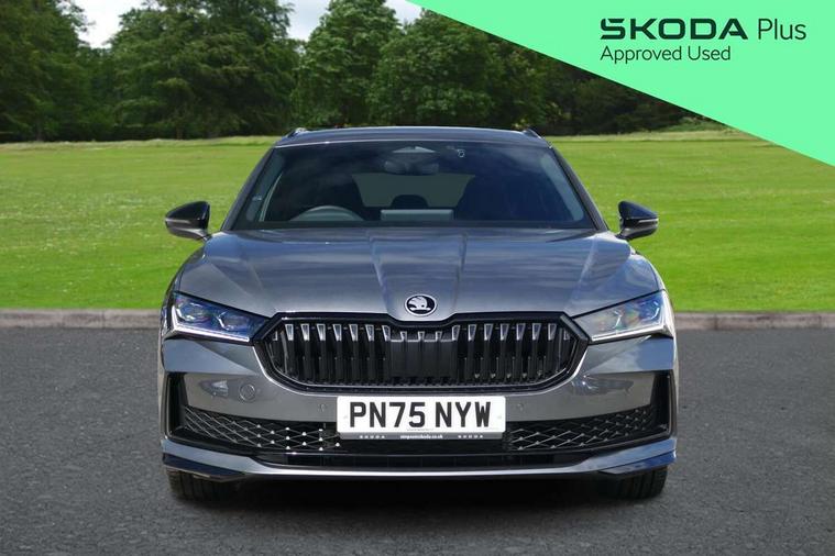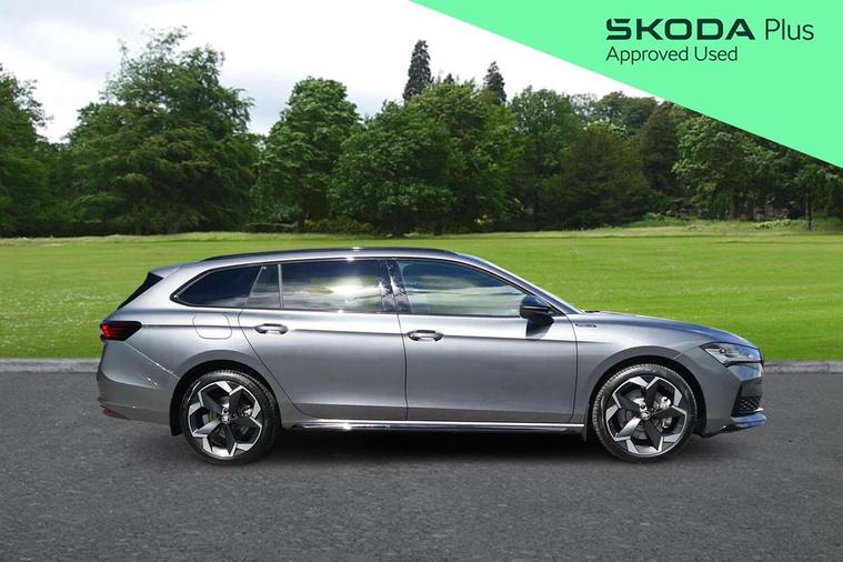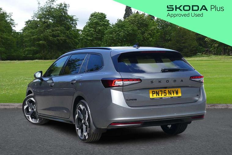 13" touchscreen display with satellite navigation, 4x USB-C ports (2x in front centre console and 2x in rear) (45W), Adaptive cruise control with speed assist, lane assist plus and traffic tram assist, Blind spot detection with door exit warning, Bluetooth system, CareConnect and Emergency Call, ChatGPT functionality, Drive mode selection, Driver fatigue sensor, Front assist with extended predictive pedestrian protection, Front cross traffic assist, PAS, Quick start all heating software functionality, Stop/start engine system, Traffic sign recognition, Turn assist with evasive assistance, Virtual Cockpit - 10.25" digital display, Voice control system, Washer for rear camera, Wireless charging for one smartphone (15W) with cooling function, Wireless smartlink apple carplay, SmartLink+ android auto, Dynamic chassis control plus with progressive dynamic steering, Mode 3 charging cable, DAB Digital radio, Display cleaner, FM radio connection, Web radio connection, Acoustic side windows and interior noise suppression, Backdrop lighting, Black exterior styling window and grille surrounds, Black roof rails, Body colour door handles, Dynamic range control with poor weather light and integrated fog light, Electrically adjustable, heated, folding and driver side auto-dimming door mirrors with memory function, integrated indicators and logo projection, Frameless auto-dimming rear view mirror with USB-C, Gloss black door mirrors, Ice scraper in fuel tank cap, LED 3rd brake light, Light assist with High beam control, Light assistant (coming/leaving home/tunnel light), Privacy glass, Rear fog lights (x2), Rear roof spoiler, Rear side wing doors, Rear windscreen wiper, Skoda lettering in black, Sportline badging, Sports bumpers, Windscreen wipers with rain sensor, 12V socket 1x centre console 1x boot, 14-way electrically adjustable, memory, front seats with 4-way pneumatic lumbar support, and extendable thigh support with smart comfort entry aid, 2x cargo elements in boot, 2x light in boot, 3 seat bench in 2nd row, 4x foldable bag hooks in boot, 60:40 Split folding rear seats, Aluminium pedals, Bottle holders in the front doors 1.5 litre bottle and rear 1.5 litre bottle, Cup holder in front with easy open mat, Front armrest with storage box, Front sports seats, Heated and ventilated front seats, Height adjustable front and rear head restraints, Illuminated glovebox, Interior lights with control switches, Isofix child seat fittings in outer rear and front passenger seats, LED front and rear reading lights, Single front passenger seat, Skoda lettering on steering wheel, Storage compartment with cover, Storage pockets on back of front seats, Sun visors with illuminated vanity mirrors, Ticket holder on A Pillar, Tri zone climate control, Umbrella in driver's door, Light and view package - Superb, Transport package - Superb Estate, 3 rear seatbelts, 8 Airbags - Front driver and passenger, front side driver and passenger, centre, curtain front and rear, drivers knee, Crew protect assist, Driver and passenger seatbelts with warning light, Electronic parking brake, ESC including ABS, EBV, MSR, ASR, EDS, HBA, DSR, RBS, CBC, multi-collision brake (MKB) and Auto hold, Hill hold assist, Power operated child lock in rear doors, Alarm with interior monitoring tilt sensor and back up horn, Backrest remote release from trunk, Electronic engine immobiliser, Keyless start/stop, Remote central locking with SAFE system, Third key, Walk away locking, Decorative front door sills, 19" Torcular polished black alloy wheels with anti theft wheel bolts, Tyre repair kit,