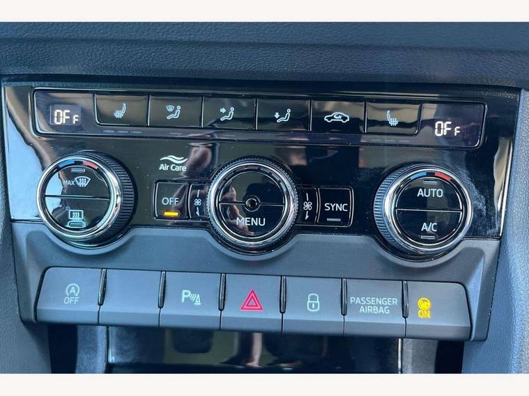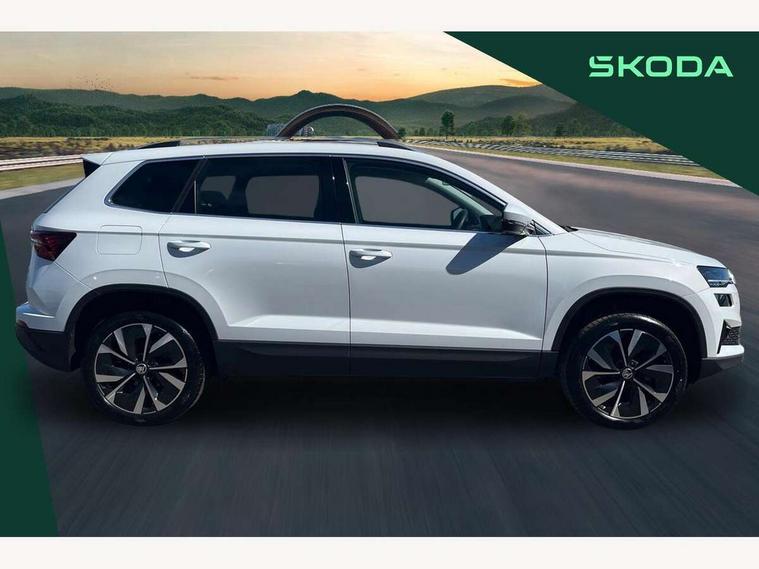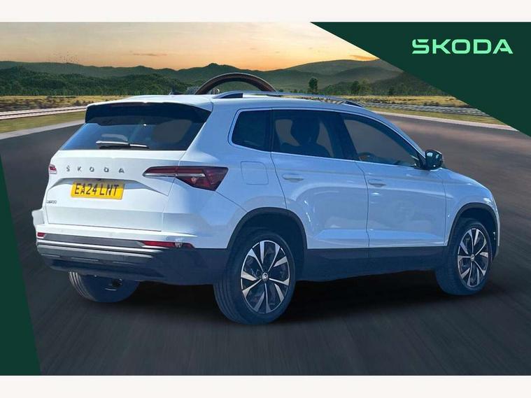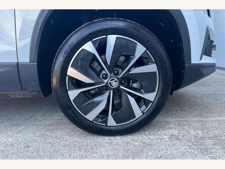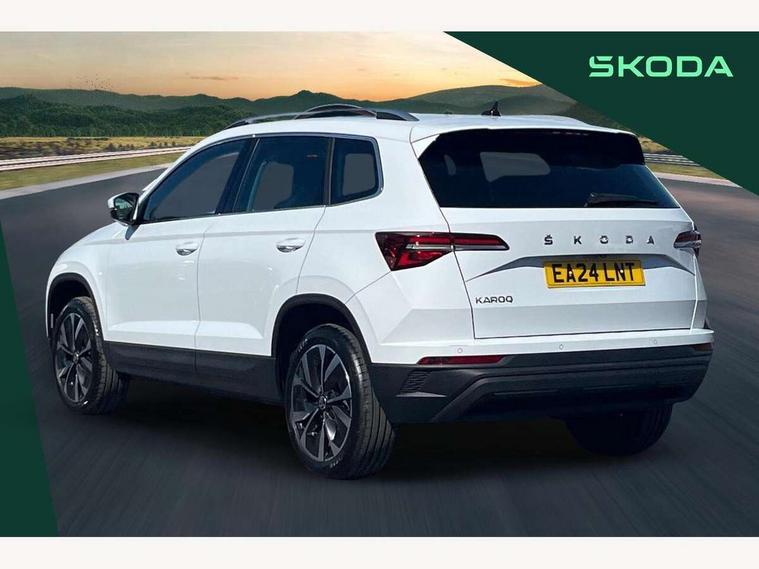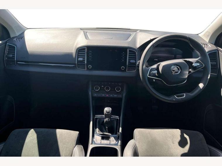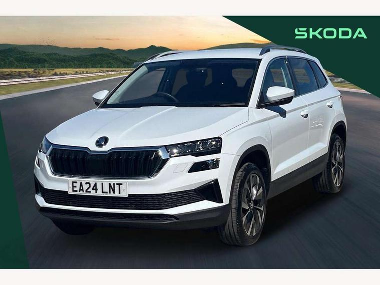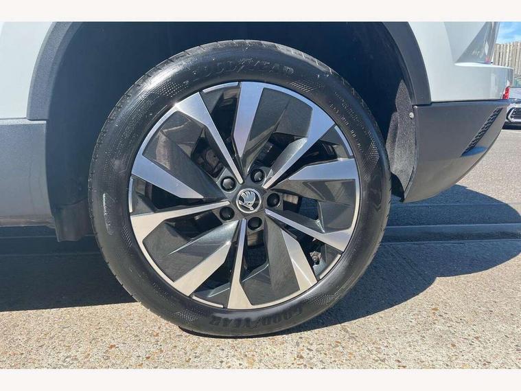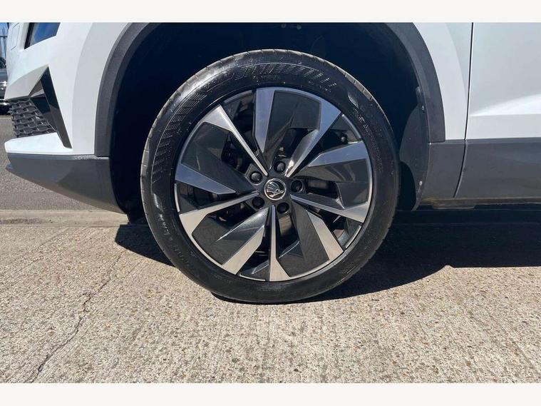 8" Digital display, Advanced driver attention and drowsiness monitor, Emergency services call system, Outside temperature gauge, Sensor for driver assistance systems, Service interval indicator, SmartLink wireless for Apple and wired for Android, Start/stop system with regenerative braking, USB C Port x 2 in front centre console, Virtual Cockpit - 10.25" digital display, Wireless smartphone charging, DAB radio with Bluetooth, USB connection, Acoustic glass, Aero front windscreen wipers with intermittent function, Auto dimming rear view mirror with light and rain sensors, Black electric window control buttons, Body colour door mirrors and handles, Electric front and rear windows with child proof lock, Heated rear windscreen, LED 3rd brake light, LED daytime running lights, LED rear lights with high functionality welcome effect and dynamic indicators, Light assistant (coming/leaving home/tunnel light), Plastic scuff plates in door apertures, Privacy glass, Rear side wing doors, Rear spoiler, Rear window wiper with washer system and intermittent control, Safety reflectors on front doors, 1.5 litre bottle holders in driver and front passenger door panels, 12V socket in boot, 12v socket in front centre armrest with storage compartment and rear air vents, 2 spoke leather heated multifunction steering wheel, 2 x Tablet holder, 3 rear height adjustable headrests, 3 seat bench in 2nd row, 4 foldable roof handles with rear coat hooks, Black floor carpet, Chrome inner door handles, Double sided boot floor, Foldable hooks in the boot, Front head restraints, Height adjustable front three point seats belts with tensioners, Height/reach adjust steering wheel, Ice scraper, Illuminated glovebox, Illuminated luggage compartment, Interior noise suppression, Isofix child seat preparation for front passenger seat, Isofix child seat preparation outer rear, Manual lumbar support for front seats, Pearl grey interior ceiling, Pen holder, Pollen filter, Rear boot cover, Rear reading lights, Rubbish bin door, Safety vest holder, Single front passenger seat, Storage box in upper central dashboard closed, Sunvisors with illuminated vanity mirrors, Textile floor mats, Ticket holder, Design Pack - Karoq, Non Smokers pack, Parking pack - Karoq, Automatic door unlocking in case of crash, Automatic fuel cut off in case of crash, Driver airbag, Electronic parking brake with auto hold function, Emergency rear braking signal, ESC including ABS, MSR, ASR, EDS, HBA, DSR, RBS, MKB and traction control, Front side airbags, Head airbags, Hill hold control, Knee airbags, Passenger airbag with switch-off function, Pedestrian monitor, Seatbelt reminder signalisation and pretensioner for all seats, Three point seatbelts rear, Two tone horn, Tyre pressure monitor, Alarm with interior monitoring, back up horn and tilt sensor with safe function, Electronic engine immobiliser, Keyless entry and start/stop, Remote central locking with 2 remote folding keys, Black centre console, Chrome framed air vents, Satin black dashboard, 18" Procyon silver alloy wheels with anthracite aero inserts, Anti-theft wheel bolts protection, Breakdown and tool kit,
