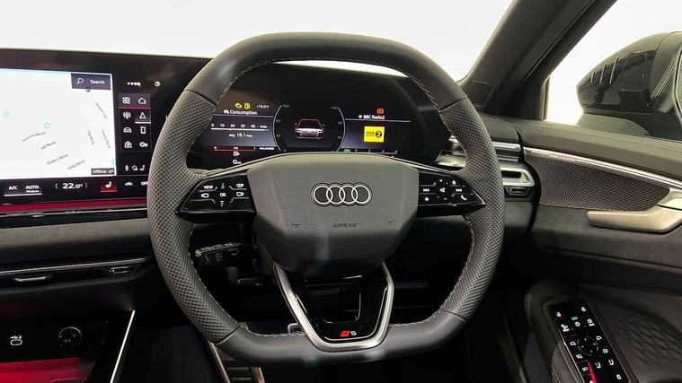 Audi application store, Audi assistant, Audi connect emergency call and service, Audi connect with Amazon Alexa Integration, Audi digital key, Audi drive select, Audi phone box with wireless charging, Audi virtual cockpit, Automatic start/stop system with coasting functionality, Bluetooth interface, Lane departure warning with emergency assist, Luggage compartment lid with Electric opening / closing, MMI 10.9" front passenger touch display, MMI navigation plus with high resolution 14.5" OLED touchscreen colour display, Power assisted steering, Service interval indicator, Side assist and exit warning with rear cross-traffic assist and rear turn assist, Smartphone interface includes wireless Apple carplay/Android Auto, Voice control system, Quattro with ultra technology, Audi sound system impressive sound with 10 loudspeakers including centre speaker and subwoofer, 6-channel amplifier with a total output of 180 watts, DAB Digital radio, USB ports with charging function, Audi Matrix LED technology, Auto dimming rear view mirror, Automatic-dynamic headlight range control, Black door handle inserts, Body coloured door handles, Dipped beam, main beam, position light, dynamic indicator and cornering light, Door mirrors - electrically adjustable, heated, folding and auto dimming on both sides, Dynamic light scenarios of the coming home/leaving home function when stationary, Electric front/rear windows, Exhaust-pipe in dark chrome, Frameless auto dimming interior rear view mirror, Front illuminated aluminium inlay door sill trims with S logo, Headlight cleaning system, LED headlights Plus incl. digital daytime running lights, turning light, all-weather light, motorway light, manouevring light and intersection light, LED rear lights pro incl. brake lights, tail lights, rear number plate lights, reversing lights, continuous light strip, LED third brake light, Privacy glass, Rain and light sensors, Rear and side windows with heat insulating glass, Rear boot, Rear side wing doors, S line exterior styling, Sport exterior inc Radiator grille, air inlets and diffuser in scandium grey as well as inlay in diffuser in selenite silver, White rhombus logo projection light in exterior mirrors, Windscreen with heat insulating and acoustic glazing, 3 seat bench in 2nd row, 3-spoke Sport leather steering wheel flat top and bottom with multifunction and shift paddles, 4 way electric lumbar support for driver and front passenger, 4 zone deluxe automatic climate control, 40:20:40 split folding rear seat bench with centre armrest and cup holders, Centre armrest, front- adjustable angle with four settings, Dinamica microfibre/Artificial leather upholstery, Electrically adjustable front seats, Front and rear floor mats, Front head restraints, Heated front seats, i-Size child seat mounting on the front passenger side and outer rear seats, i-Size and top tether on the outer rear seats, Manual steering wheel adjustment, Rear headrests, Single front passenger seat, Sport front seats, Stainless steel pedals and footrest, Steering wheel trim in chrome look, S emblem, steering wheel grips in perforated leather and contrasting stitching, Ambient lighting package plus - A6, Black exterior package - A6, Drive and Park assistance package - A6 Edition 1, Protective warning assistance package - A6, 3x3 point rear seat belts, Acoustic vehicle alerting system, Black seat belts, Convenience key with safelock, Driver and front passenger airbags, EBD - Electronic brakeforce distribution, Electric rear child safety lock, Electromechanical parking brake, Electronic Stability Control (ESC) including ABS, ASR and EDL, First aid kit with warning triangle and vests, Front passenger airbag deactivation, Proactive occupant protection, front, side and rear, Red brake calipers, Seatbelt monitoring, Side airbags in front and rear with head airbag system and front interaction airbag, Standard 18"steel disc brakes front and 17" rear, Tyre pressure monitoring system, Anti theft alarm, Anti-theft wheel bolts, Immobiliser, Keyless Go, Remote central locking, Accents in the interior in aluminium look, Carbon square structure inlays, Upper and lower interior elements in dinamica microfibre, Wraparound interior elements in artificial leather, Tyre repair kit,