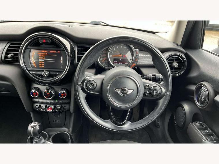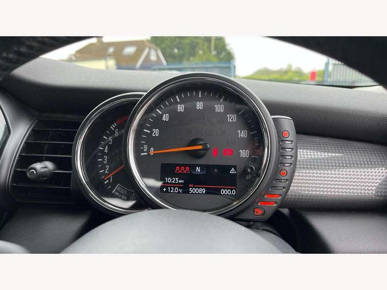 Acoustic seat-belt warning, Brake fluid level warning light, Brake pad wear indicator warning light, DTC - Dynamic traction control, Exterior temperature gauge, Intelligent emergency call, MINI TeleServices, Oil level indicator, On board computer, Push button starter, Service interval indicator, Servotronic PAS, Electronic differential lock, Auxiliary input socket, DAB digital radio module, 2 speed wipers+intermittent wipe, Aluminium tailgate, Anti dazzle mirror, Anti trapping/one touch open close front windows, Body coloured bumpers, Chrome bezels around rear lights and headlights, Chrome door handles, Chrome exhaust tailpipe, Chrome plated radiator grille, Chrome plated trim on bottom edge of window, Chrome strip on lower grille, Electric front windows, Electrically adjustable door mirrors, Flared wheel arches, Follow me home headlights, Green tinted heat insulating glass, Heated door mirrors/heated windscreen washers, Heated rear window with auto timer, Metal look door sill finishers, Rear wiper, Roof spoiler in roof colour, 2 rear head restraints, 4 boot load lashing points, 4 way manually adjustable passenger seat with height, reach, tilt, backrest and headrest, 6-way manually adjustable driver's seat, Active carbon filter, Air recirculation system, Auxiliary socket in centre console storage compartment, Centre console storage, Driver's seat height adjuster, Driver/passenger sunvisors, Front and rear cupholders, Front head restraints, Front interior light, Front passenger grab handle, Gear/selector and handbrake in artificial leather, Internal chrome door handles, Isofix child seat preparation, Luggage compartment lighting, Reach + rake adjustable steering column, Rear grab handles, Rear storage trays, Split folding rear seats, Storage compartments in doors, Toolkit in luggage compartment, Vanity mirrors, 3 point seatbelts, ABS/EBD, ASC+T, Cornering brake control (CBC), Crash Sensor - activates hazard/interior lighting + unlocks doors, Driver and passenger airbags, Driver/front passenger side airbags, DSC - Dynamic Stability Control, Fuel cut off safety device, Head airbags, Hill start assist, Manual passenger airbag deactivation function, Seatbelt pretensioners, Tyre pressure warning, Ventilated front disc brakes, Drive away door locking, Locking wheel bolts, Remote central locking/doors+fuel cap+tailgate, Second remote key, Thatcham category 1 alarm + immobiliser,