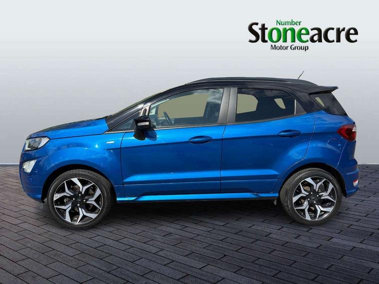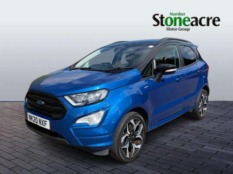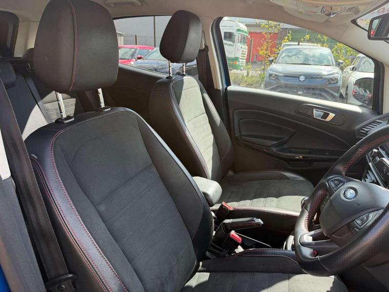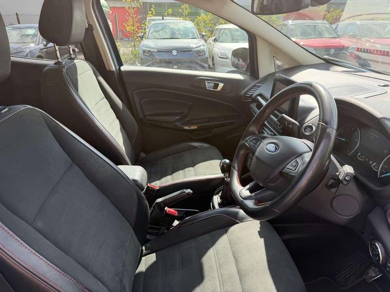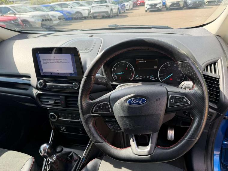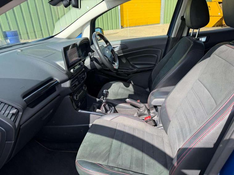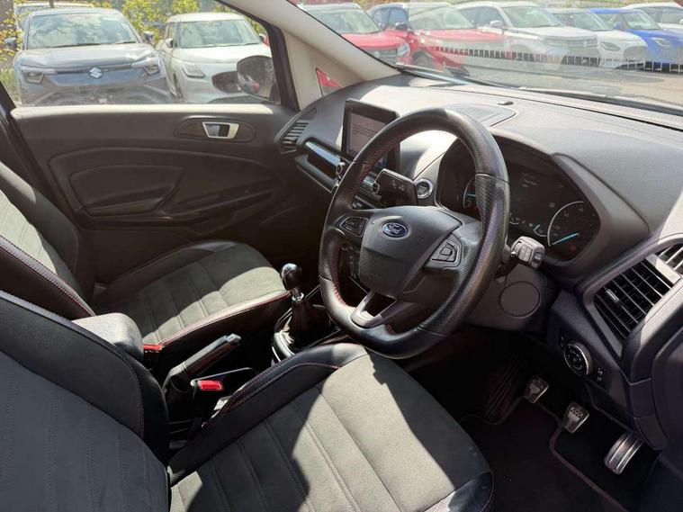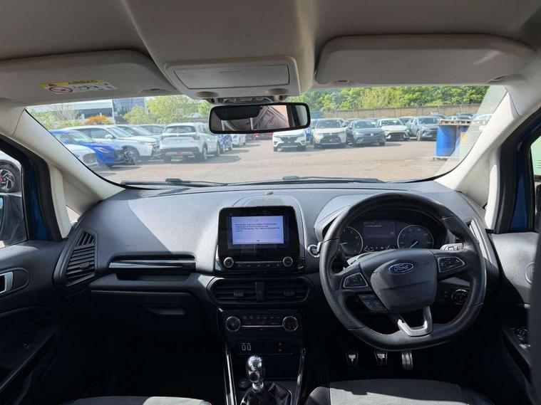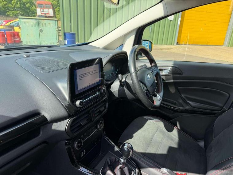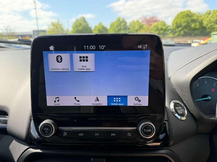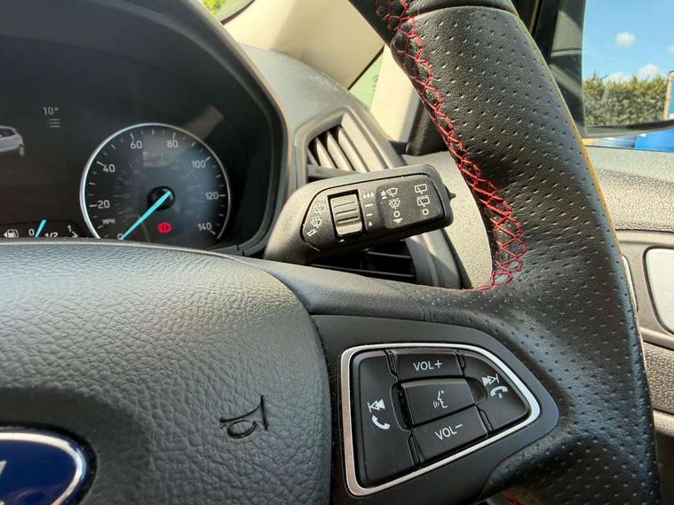 Cruise control with Intelligent speed assist, Easy fuel capless refuelling system, Ford pass connect embedded modem, PAS, Rear parking sensors and rear view camera, SYNC 3 nav system with DAB radio, 8" screen, voice control, emergency assistance, Apple car play/Android auto, 2x USB, Ford pass connect, Traffic sign recognition, Trip computer, Sports suspension, 7 speakers, Steering wheel mounted audio controls, 'Quickclear' heated windscreen/heated washer jets, Auto dimming rear view mirror, Automatic headlights, Black roof rails, Body colour door handles, Body coloured bumpers, Electrically adjustable and heated door mirrors, Front door threshold plates with ST-Line logo, Front fog lights, Headlight levelling control, Large rear spoiler, Power front and rear windows with global opening/closing, Rain sensing front wipers, Rear wiper, ST-Line body styling kit, ST-Line front grille, 12V socket in front and rear, 60/40 split rear seats, 7 shade adjustable ambient lighting, Centre console with sliding front armrest, Cooled glovebox, Courtesy lights with map reading light, Driver seat height/lumbar adjust, Driver's side glovebox, Driver/passenger sunvisors and lidded vanity mirrors, EATC - Electronic Auto Temperature control, Folding grab handles, Front head restraints, Front seat back map pockets, Front/rear floor mats, Illuminated glovebox, Illuminated luggage compartment, Isofix system on outer rear seats, Luggage compartment carpet, Overhead console with sunglasses holder, Partial leather upholstery, Rake adjustable rear seats, Reach + rake adjustable steering column, Rear headrests, Sensico trimmed steering wheel, handbrake and gearshift gaiter with red stitching, Stainless steel sports pedals, Storage drawers under front seats, Tie down hooks, Variable boot floor, 3x3 point rear seatbelts, ABS, Autonomous emergency braking, Child locks on rear doors, Curtain airbags, Driver airbag, Drivers knee airbag, Electronic Stability Programme with hill launch assist, Front passenger airbag deactivation, Front side airbags, Passenger airbag, Pre collision assist system, Seatbelt reminder for driver and front passenger, Traction control, Tyre pressure monitoring system, Immobiliser, MyKey system, Remote central locking, Thatcham 1 volume sensing alarm, Low rolling resistance tyres, Tyre inflation kit,